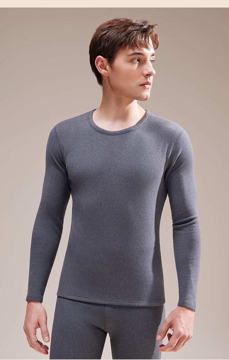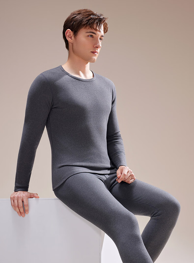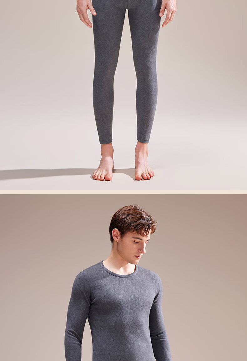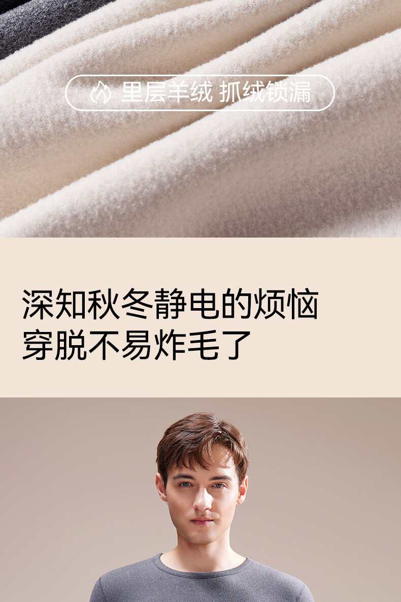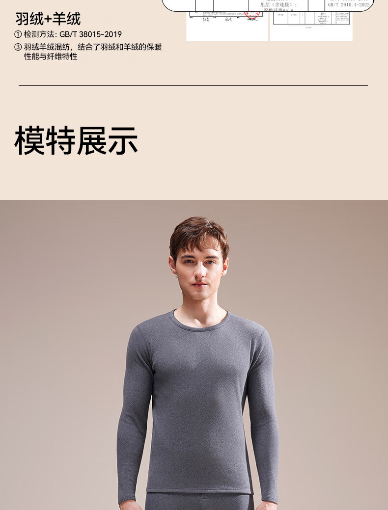 鸭鸭(YAYA)【鹅绒天丝】保暖内衣男德绒发热羊绒加绒加厚秋衣秋裤打底套装冬