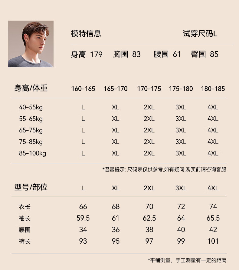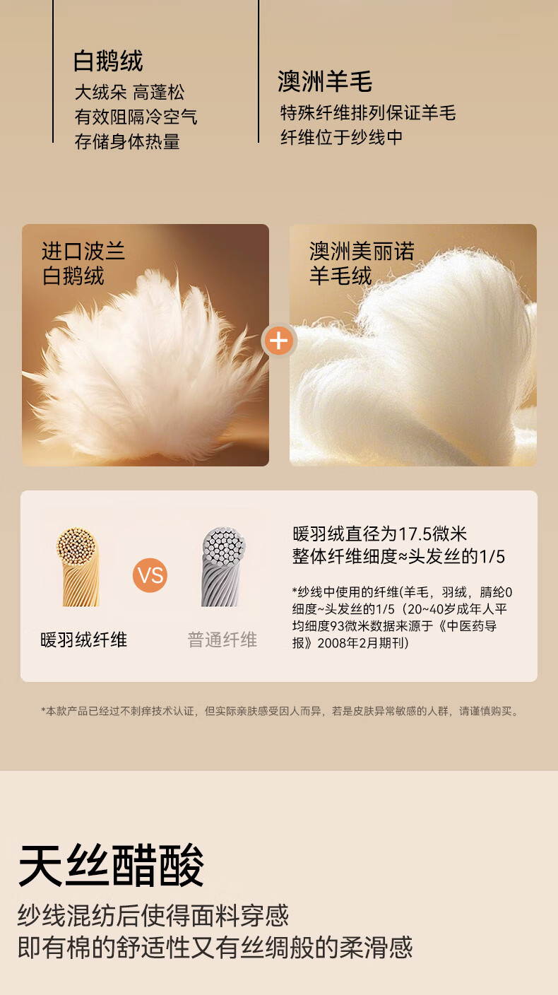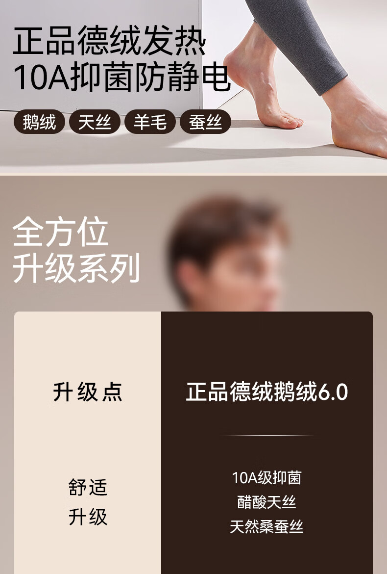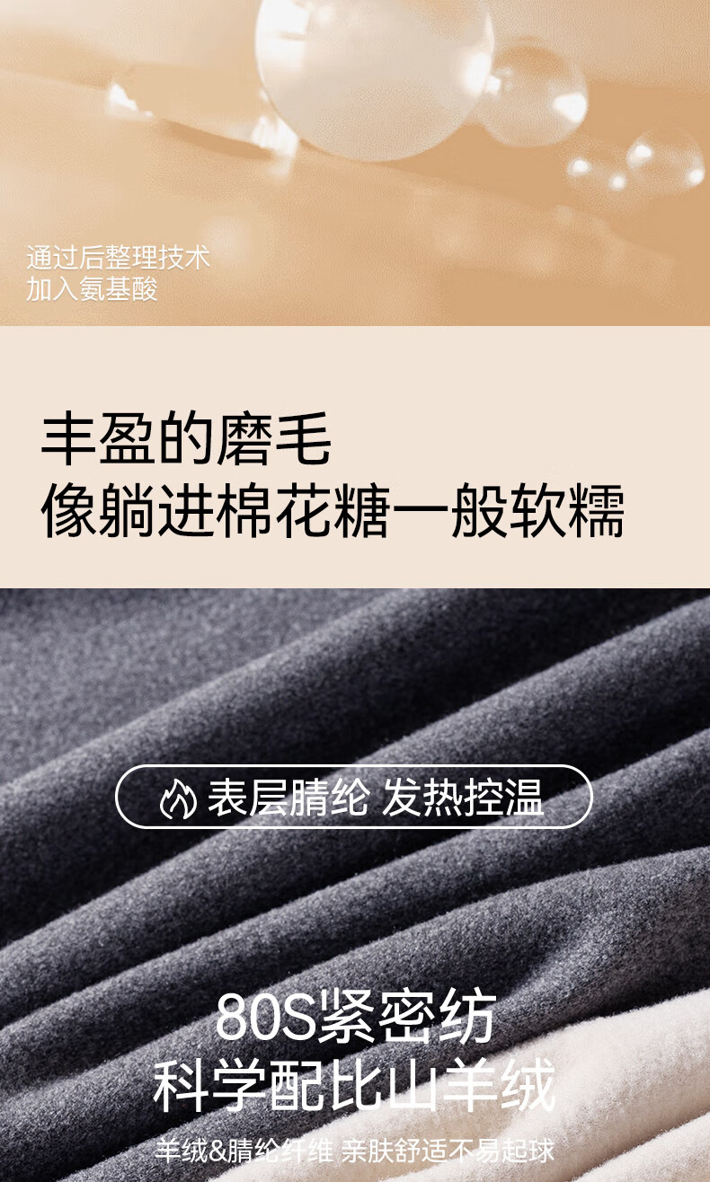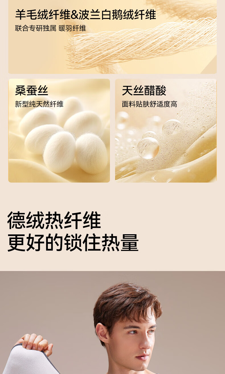 鸭鸭(YAYA)【鹅绒天丝】保暖内衣男德绒发热羊绒加绒加厚秋衣秋裤打底套装冬