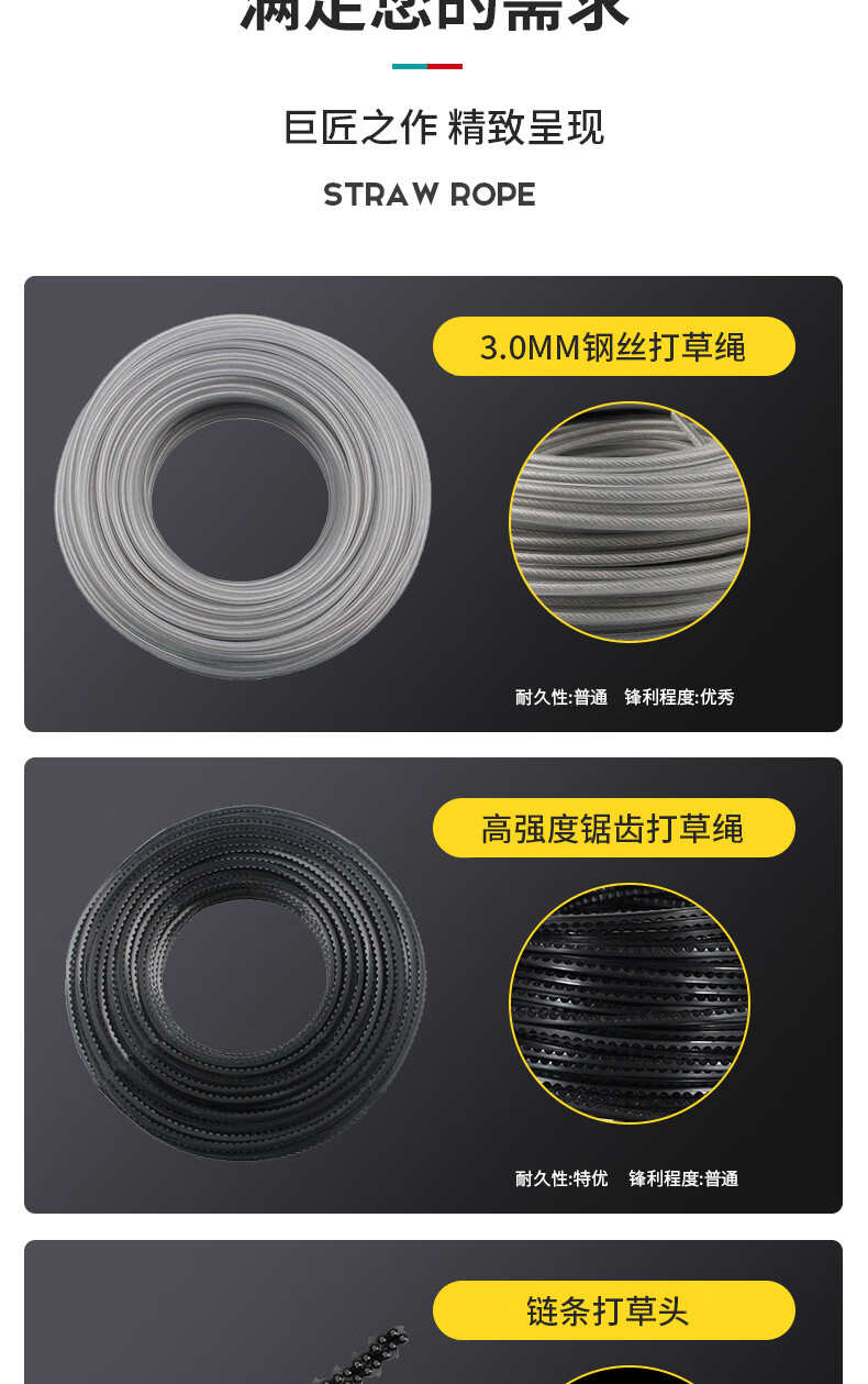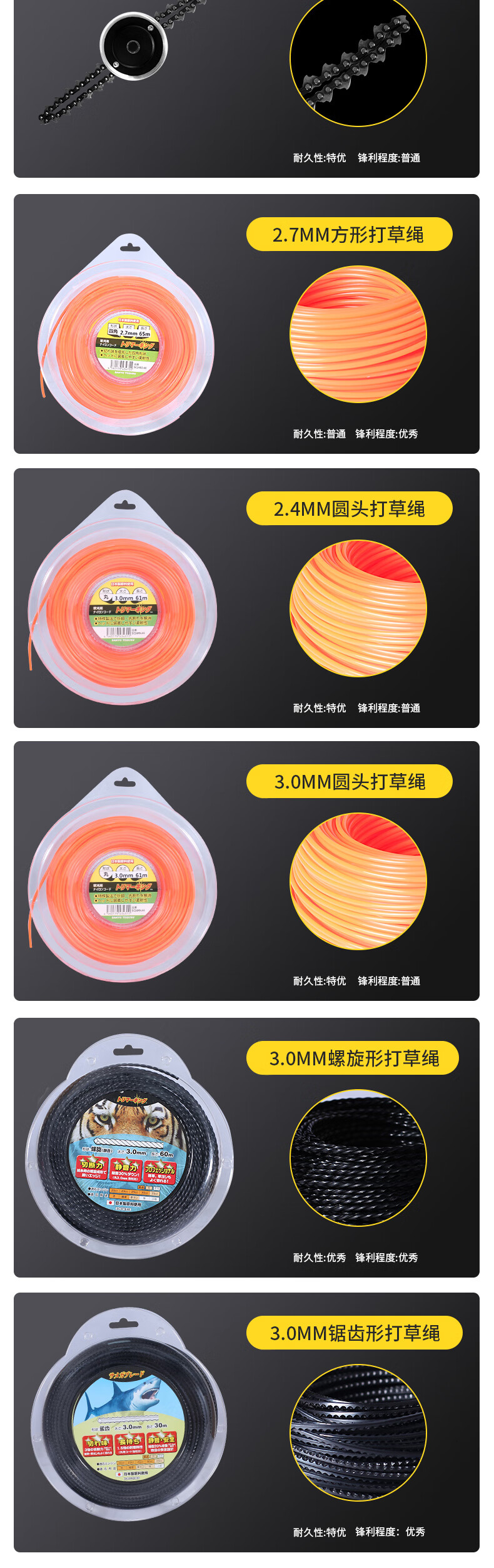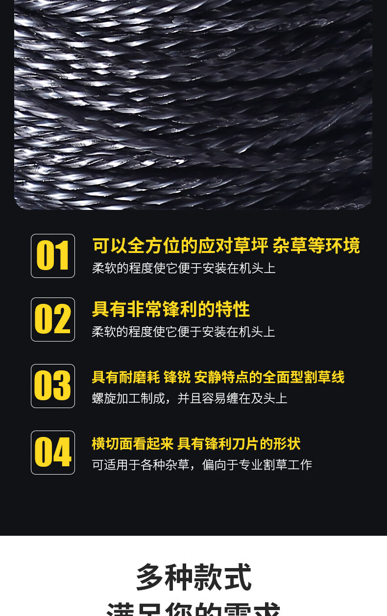 Real wear-resistant steel wire lawn mower rope nylon rope lawn mower rope tendon rope lawn mower rope lawn mower rope 3.0