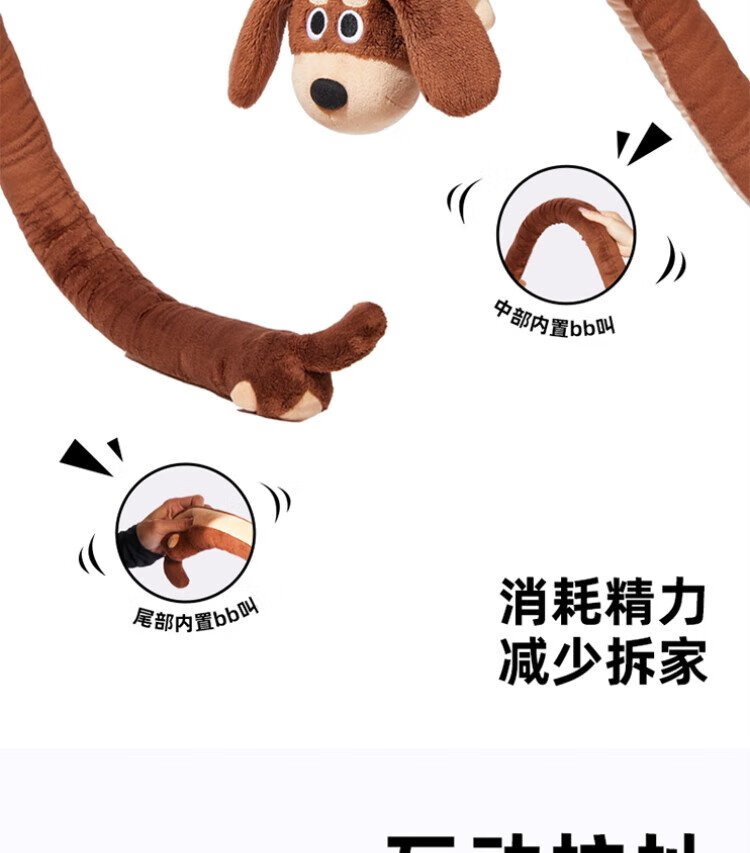 EETOYS fast 1 meter plush dachshund dog toy, bite-resistant, sound-producing, interactive companion and boredom-relieving dog toy