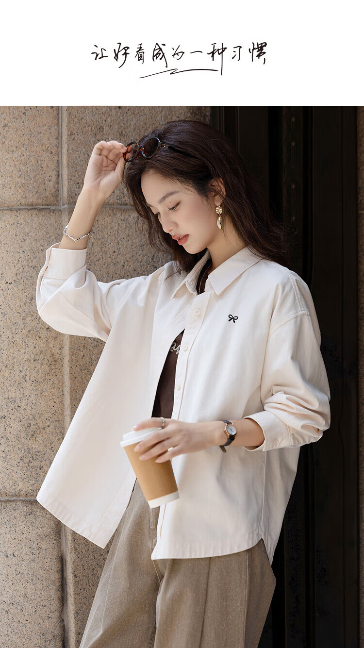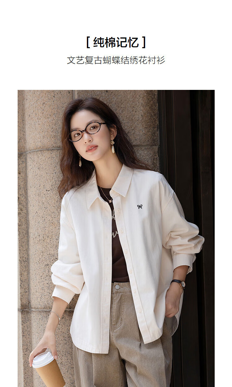 Demana pure cotton memory autumn literary retro bow embroidered shirt loose petite shirt women's top