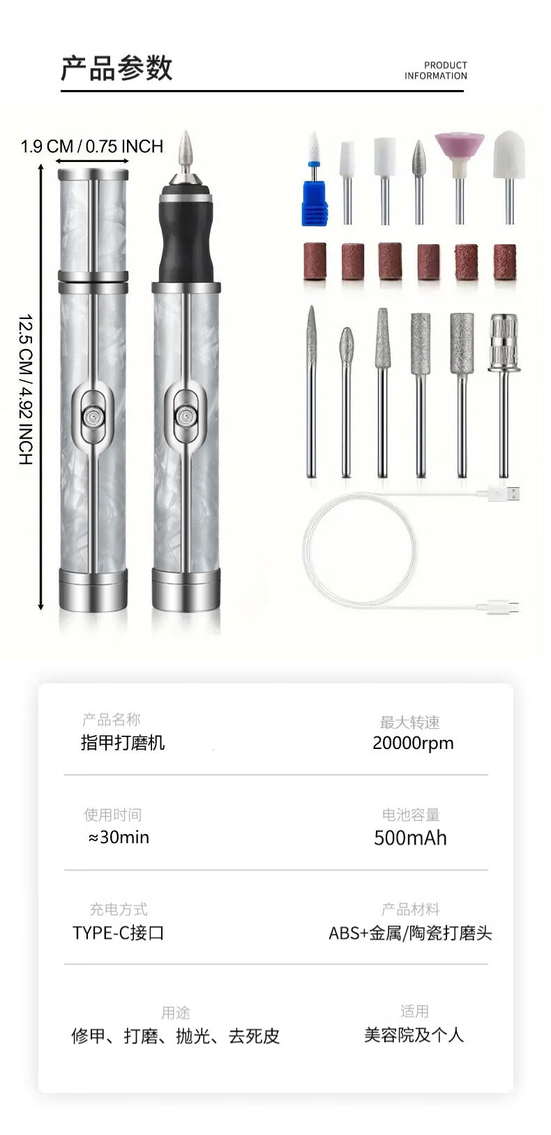 Makeup Deer Gray Nail Grinder Electric Nail Grinder Remover Trimmer Remove Dead Skin Nail File Gray Thick Nail Tool