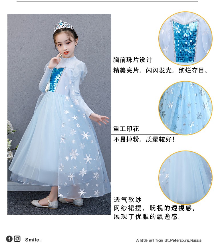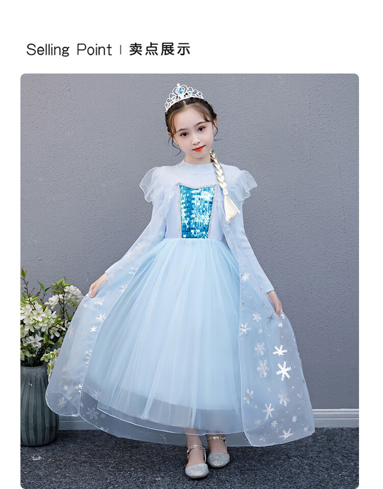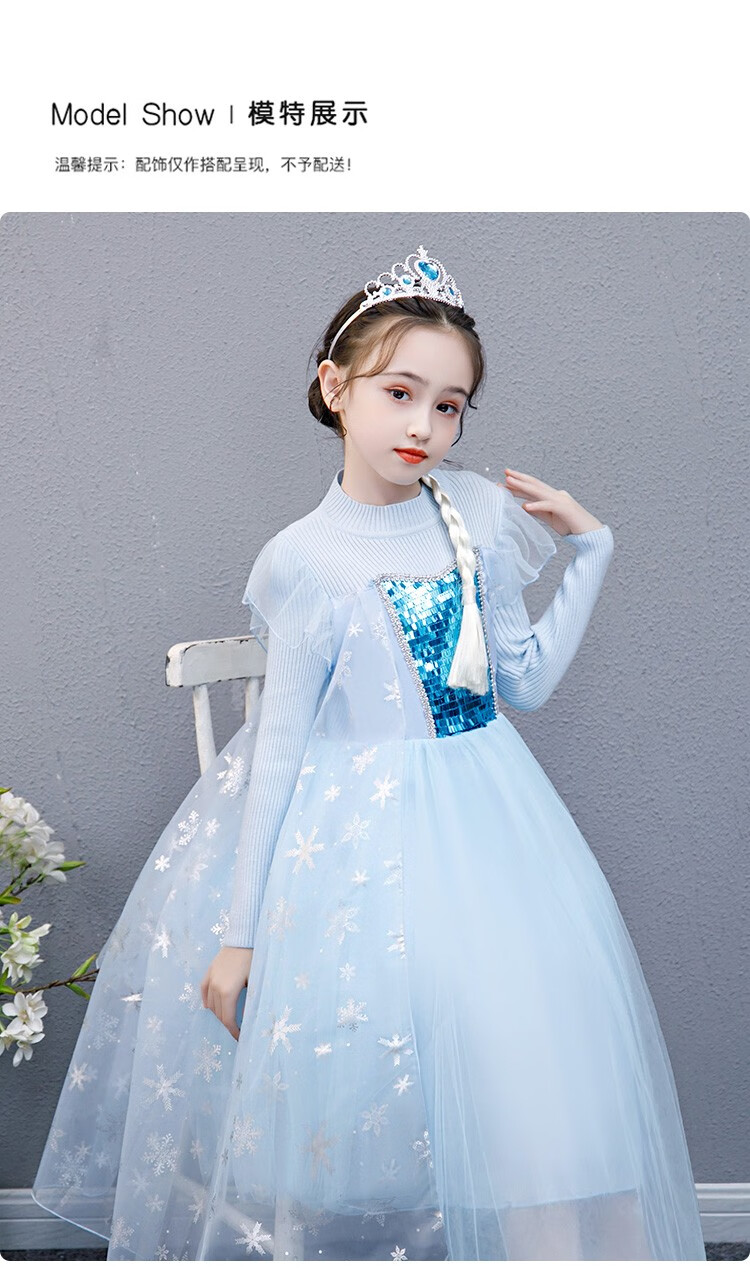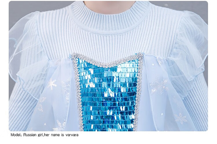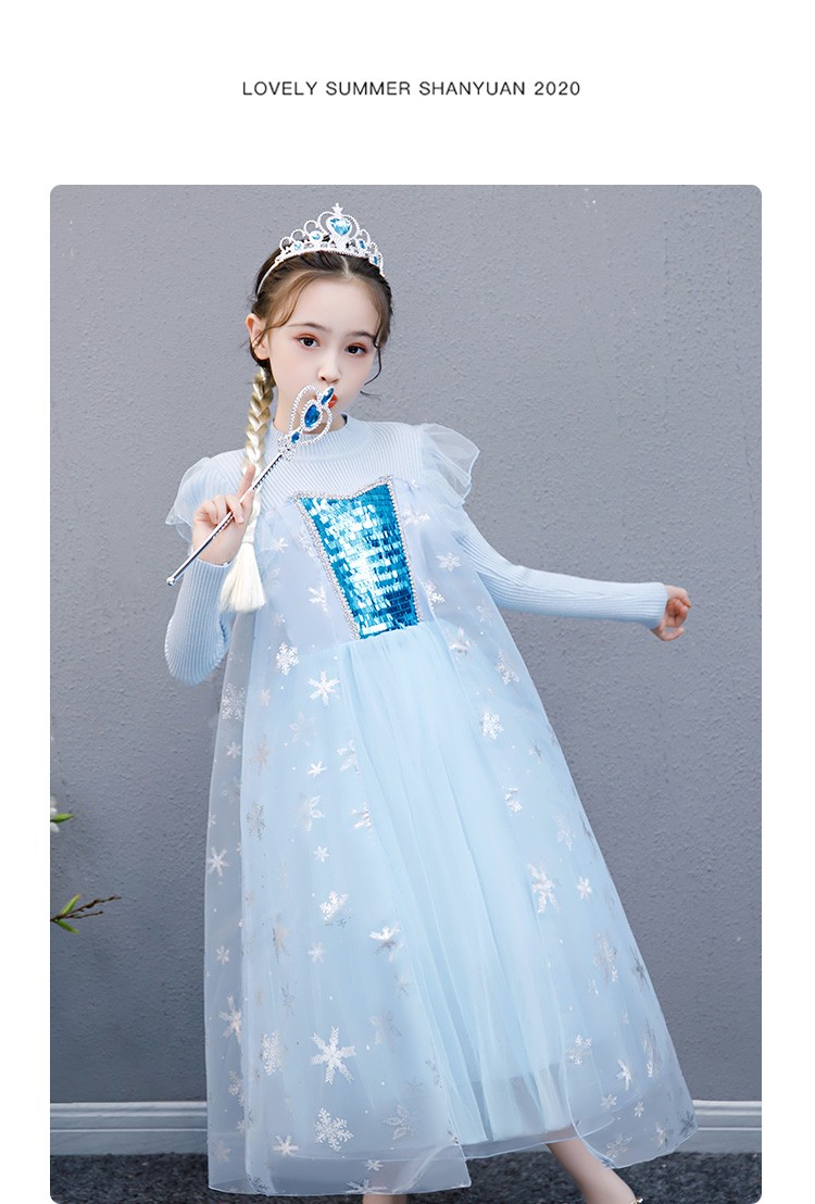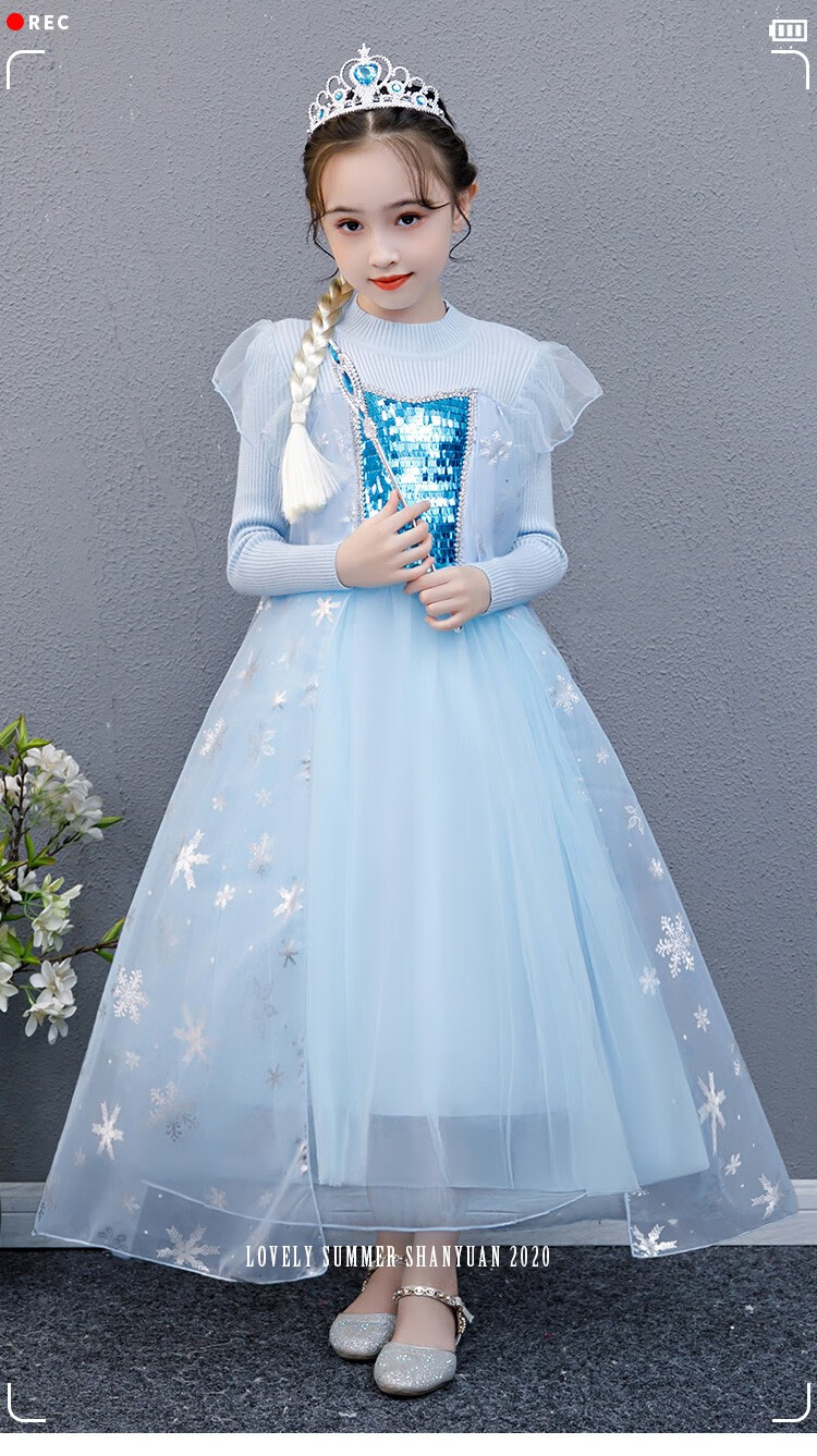 Remember Elsa Princess Dress Autumn and Winter New Frozen Elsa Girls Dress Children's Skirt New Year Dress Elsa Sweater Blue 120 (recommended height 110-120cm)