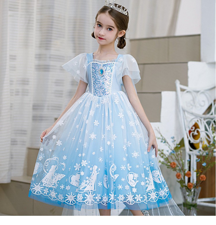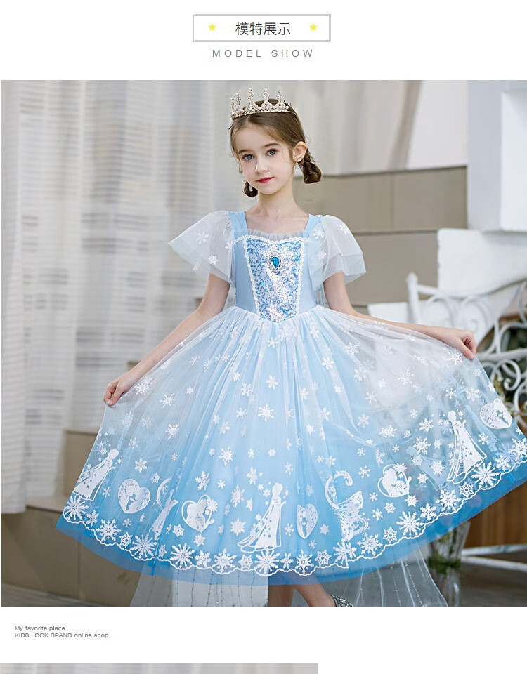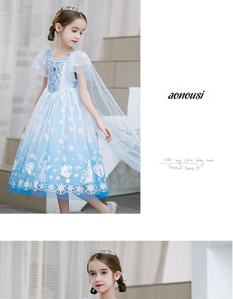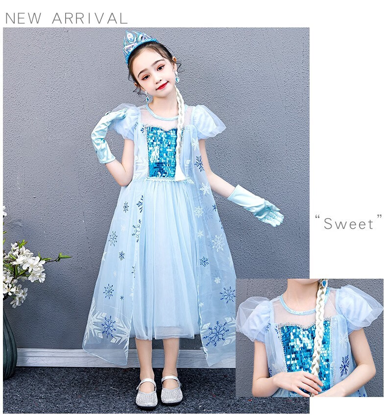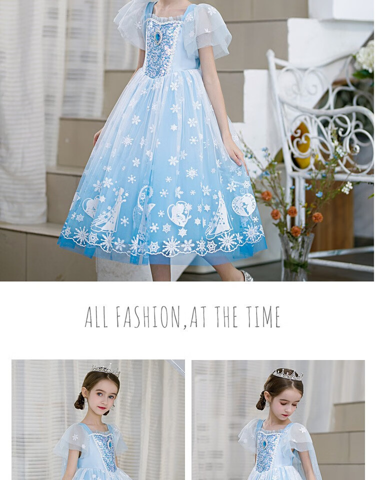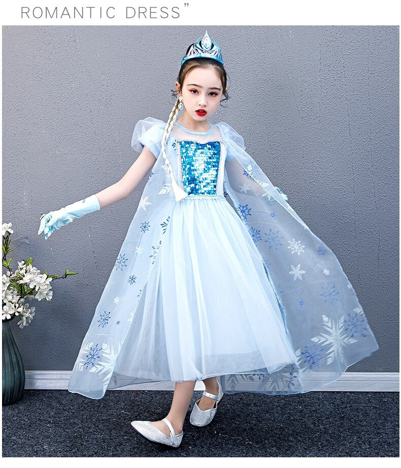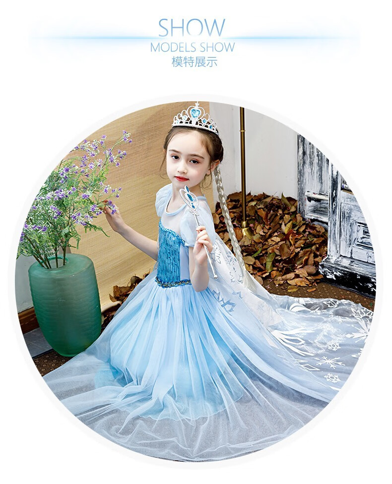 Remember Elsa Princess Dress Autumn and Winter New Frozen Elsa Girls Dress Children's Skirt New Year Dress Elsa Sweater Blue 120 (recommended height 110-120cm)