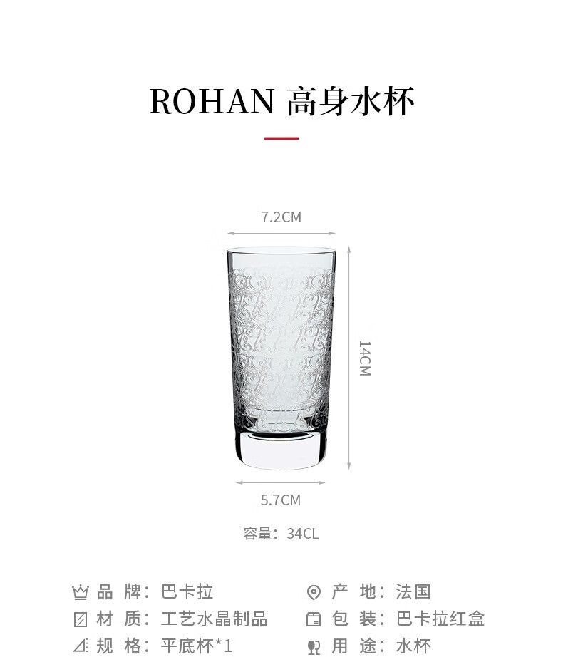 Baccarat ROHAN series tall water cup single cup gift transparent