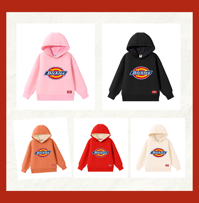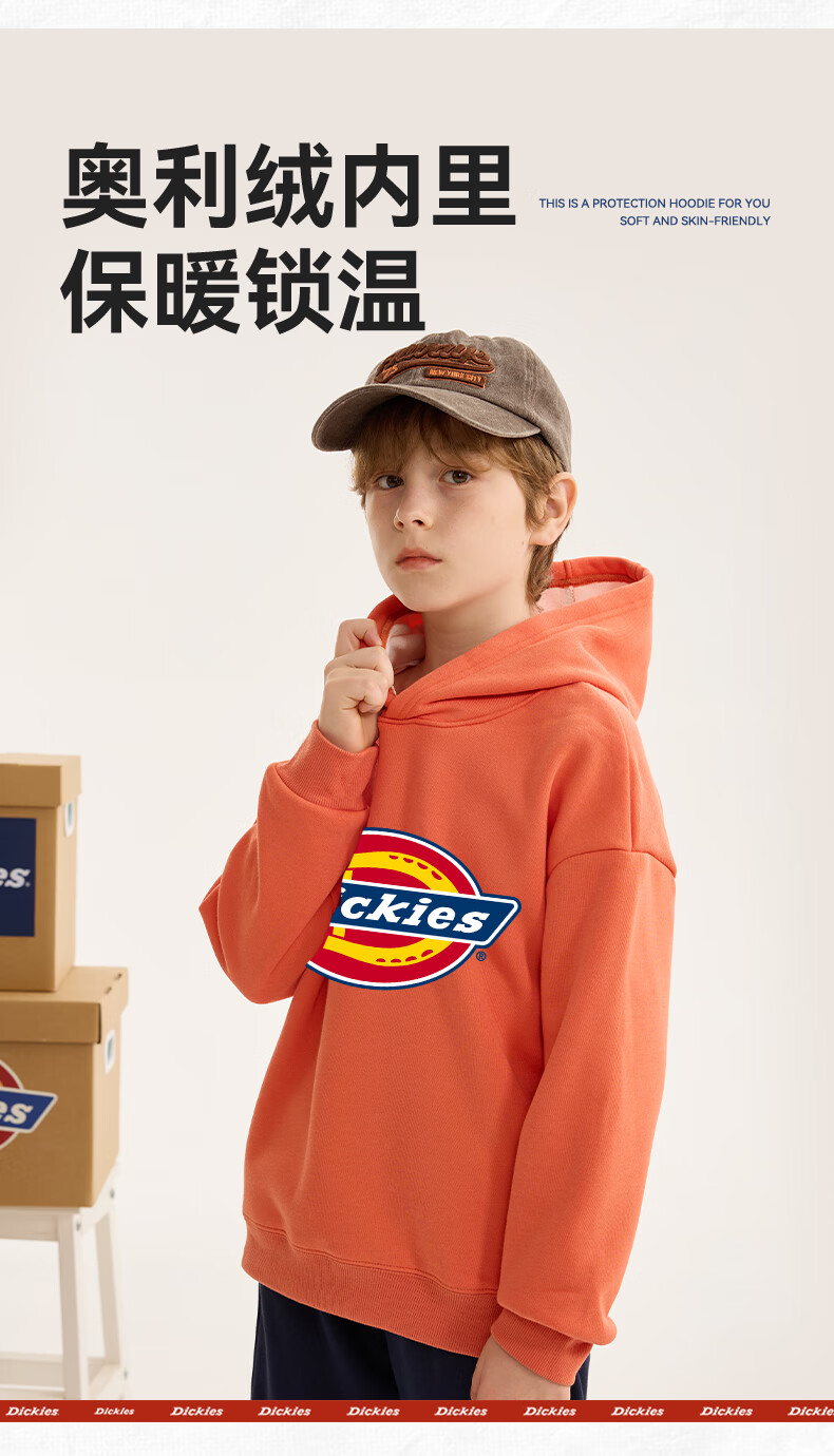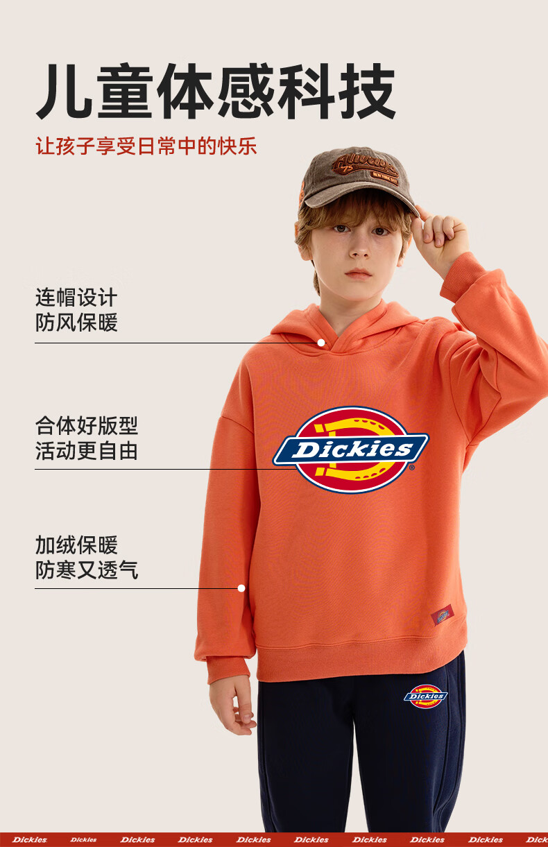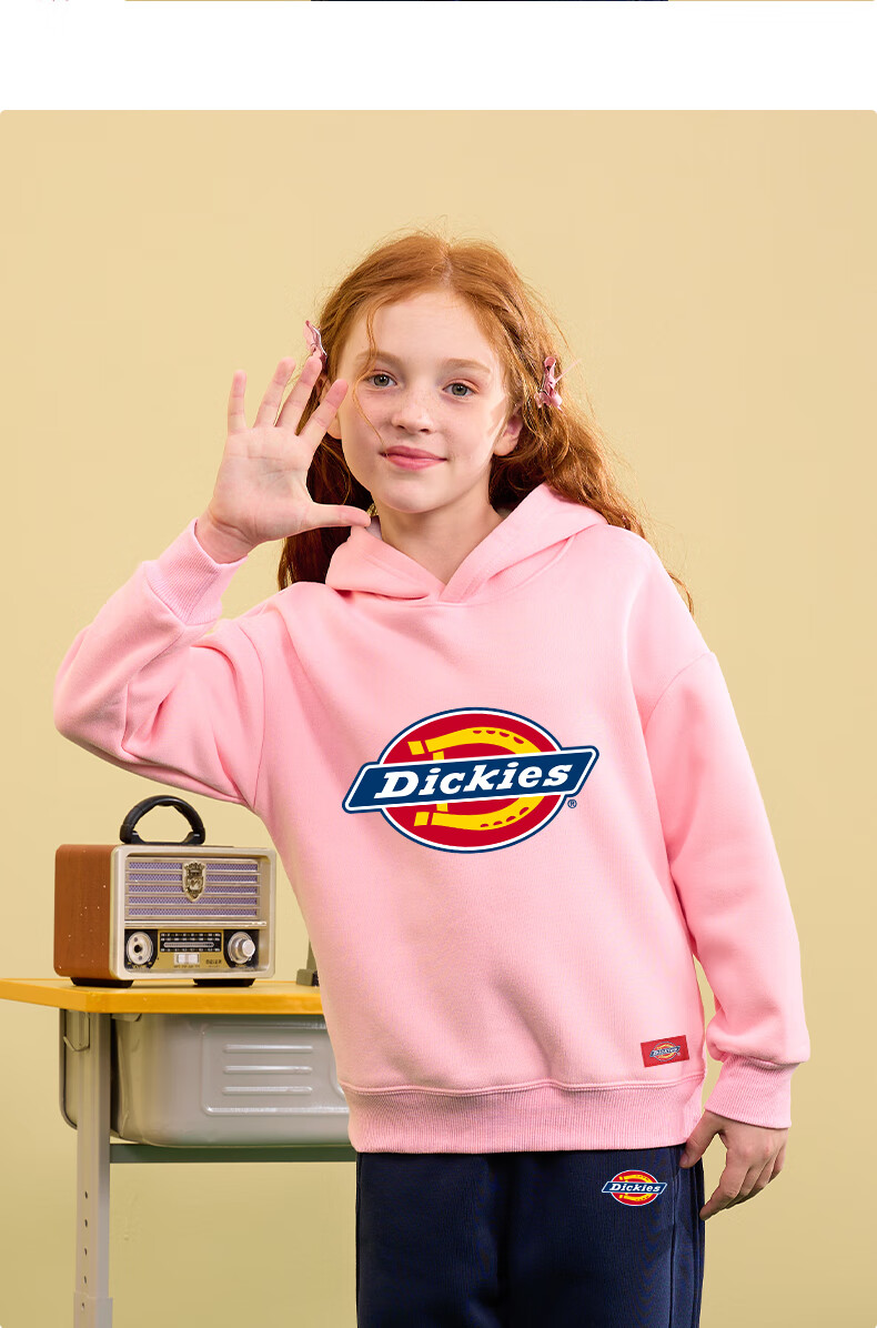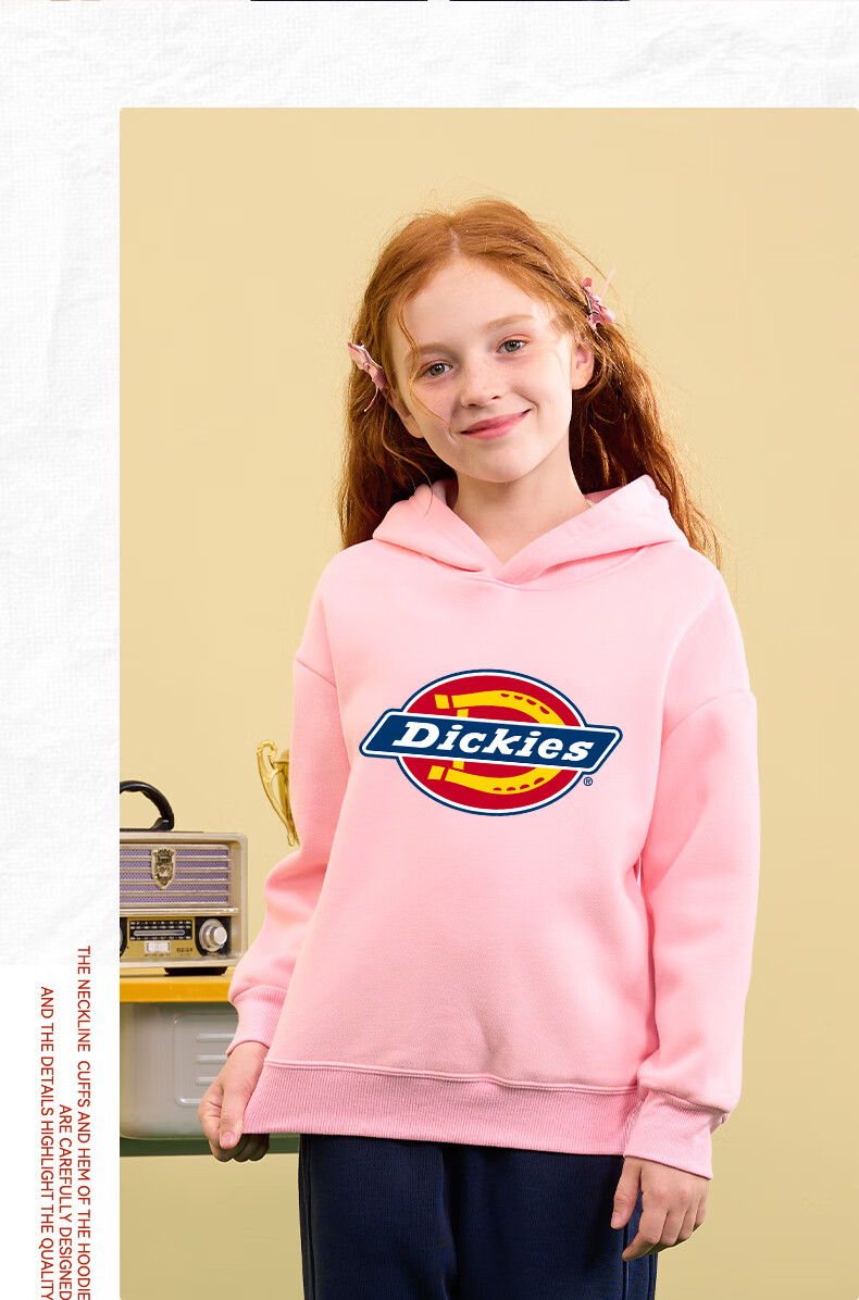 Dickies children's clothing children's velvet hooded sweatshirt 2025 new winter thickened thermal tops for small and medium-sized children, boys and girls winter clothing