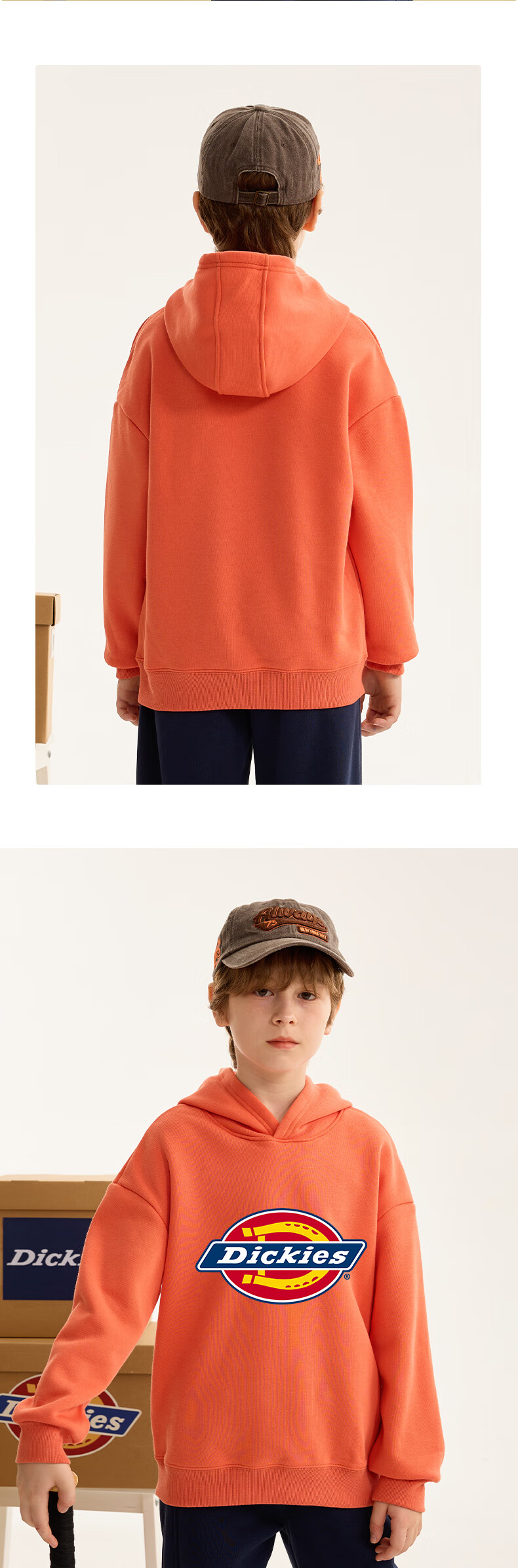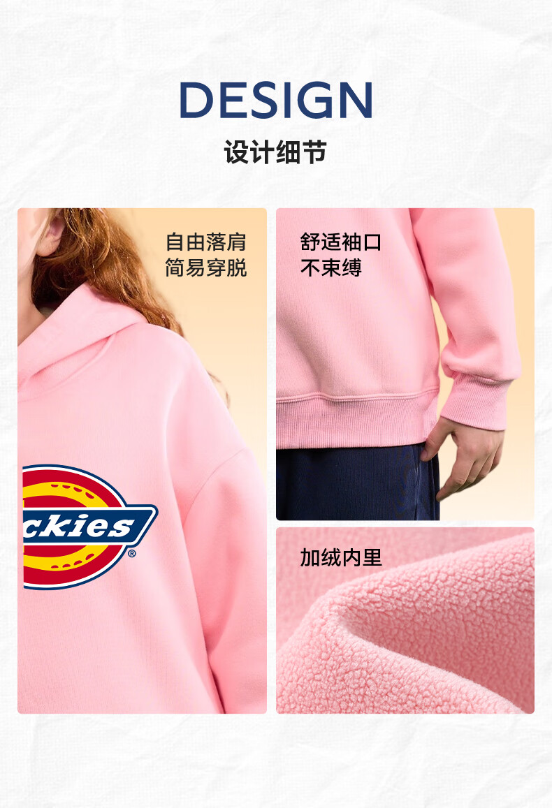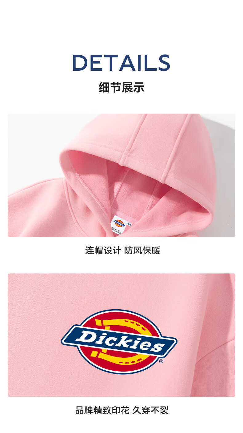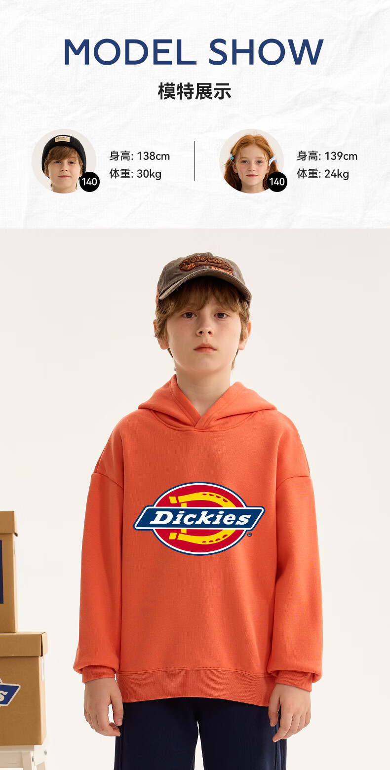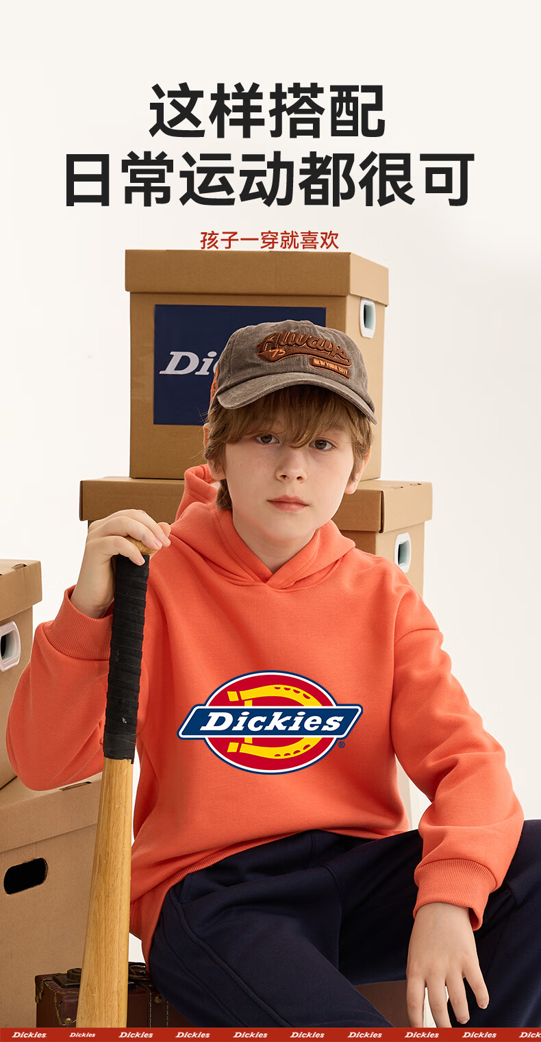 Dickies children's clothing children's velvet hooded sweatshirt 2025 new winter thickened thermal tops for small and medium-sized children, boys and girls winter clothing