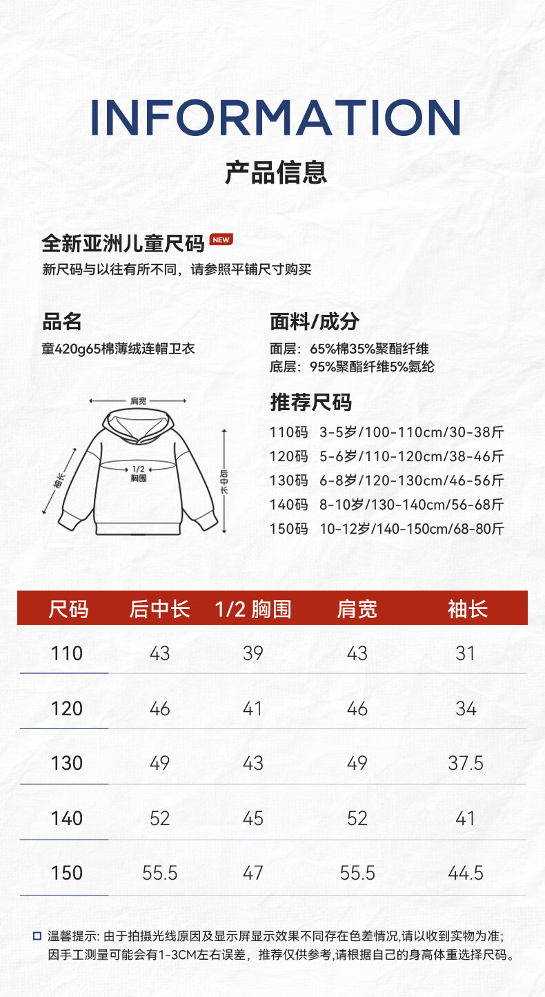 China (cm) 165 / 88-90 170 / 96-98 175 / 108-110 180 / 118-122 185 / 126-130