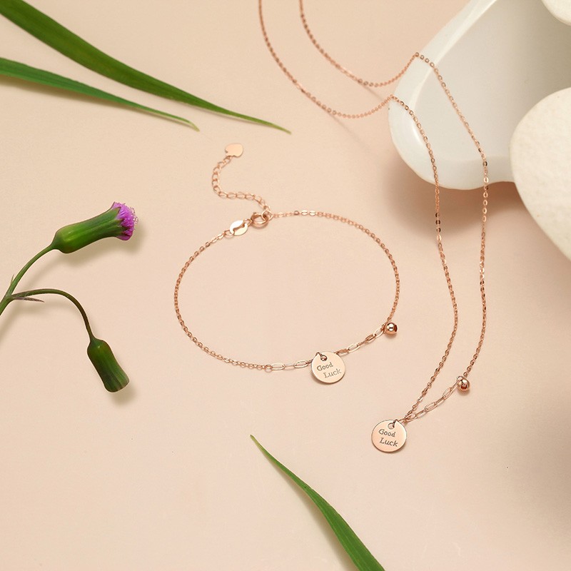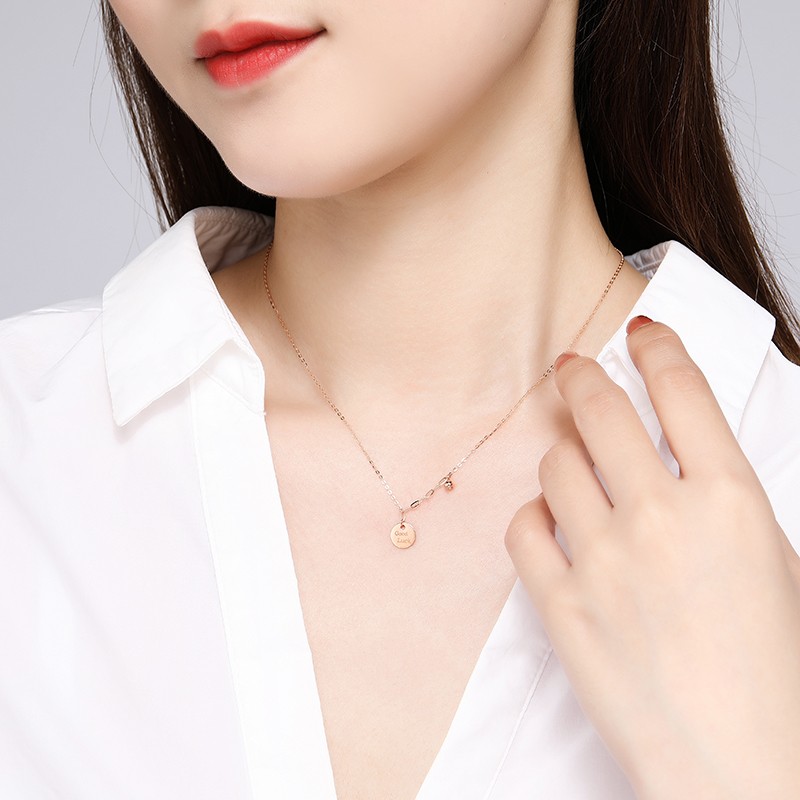 Chao Acer Lucky Coin Letter Circle 18K Gold Necklace Female Lottery Gold Clavicle Chain for Girlfriend Birthday Gift Red 18K Style - Chain Approximately 40cm + Tail Chain