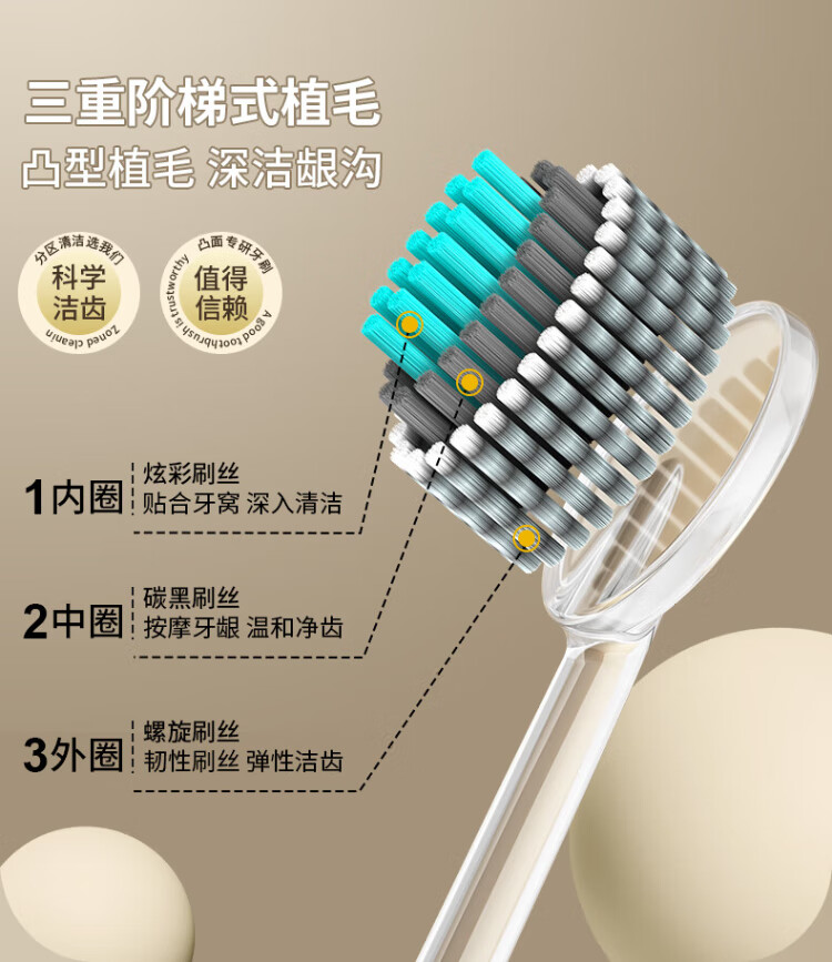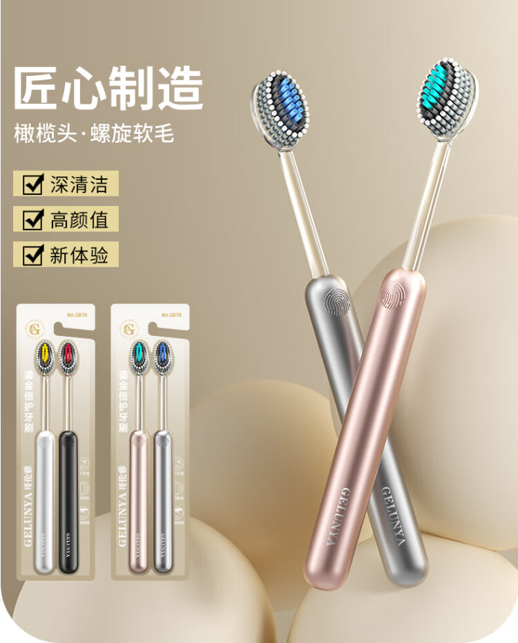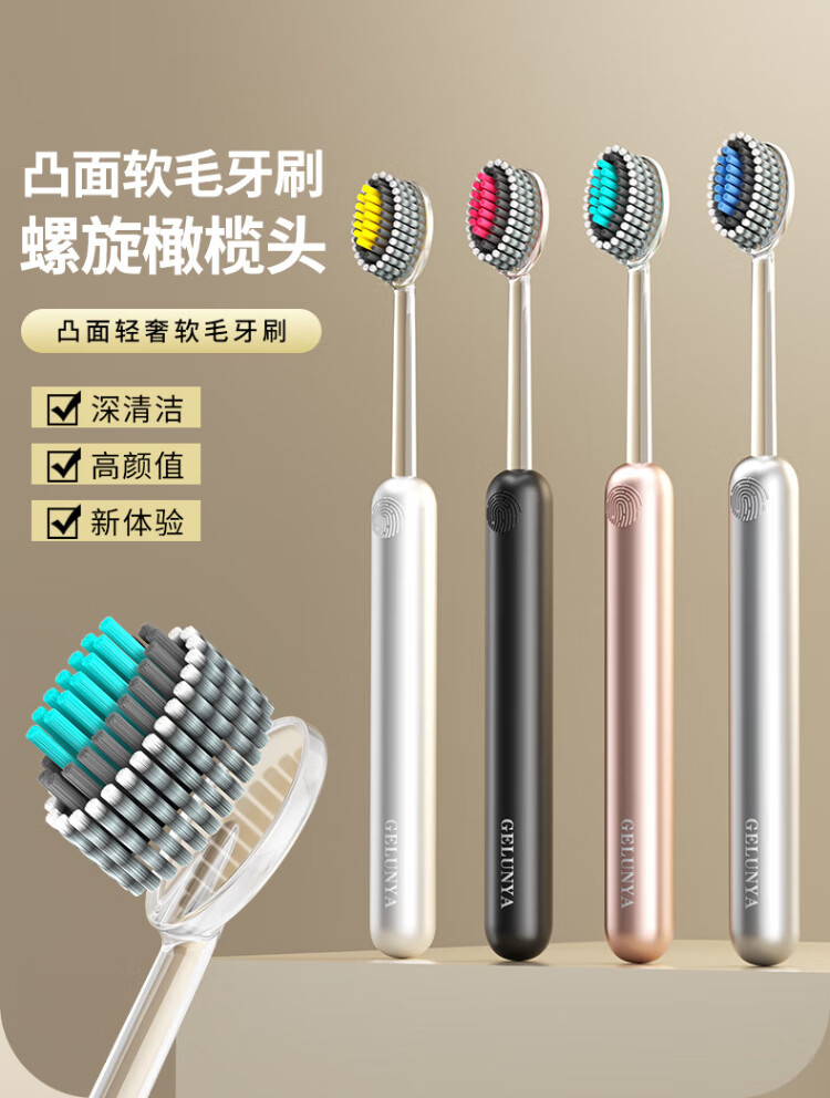 Colonia 4 light luxury mountain-shaped toothbrushes olive head spiral elastic soft bristles high-end gum protection adult household