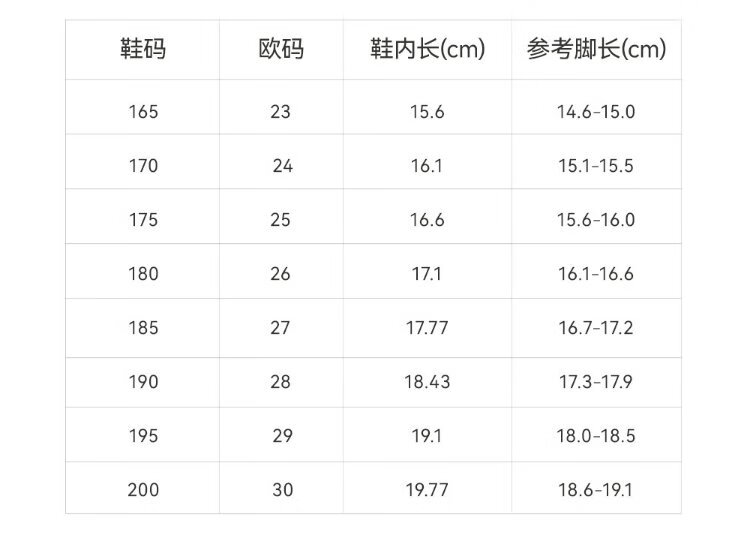 China (cm) 36 - 37 38 - 39 40 - 42 43 - 44 45 - 47
