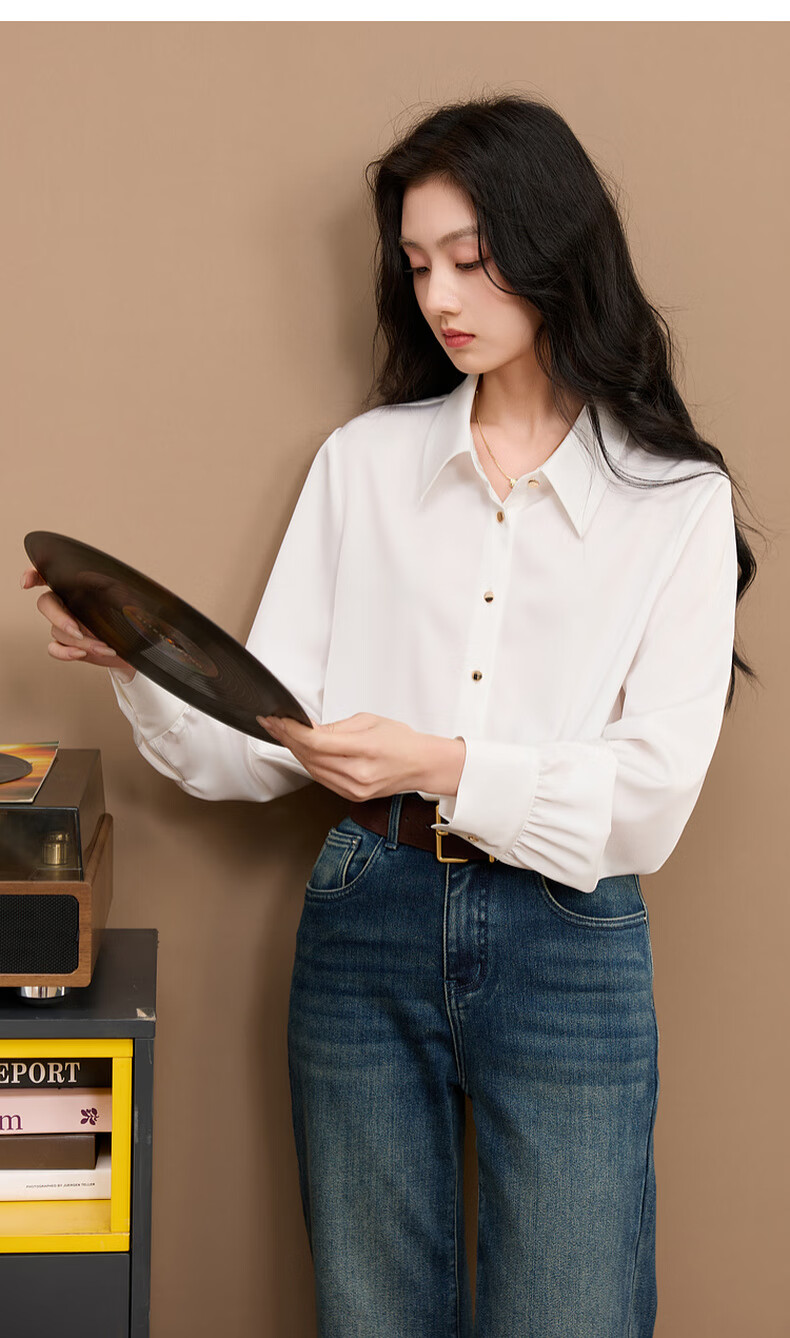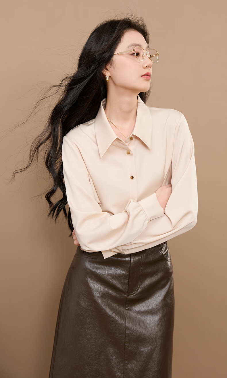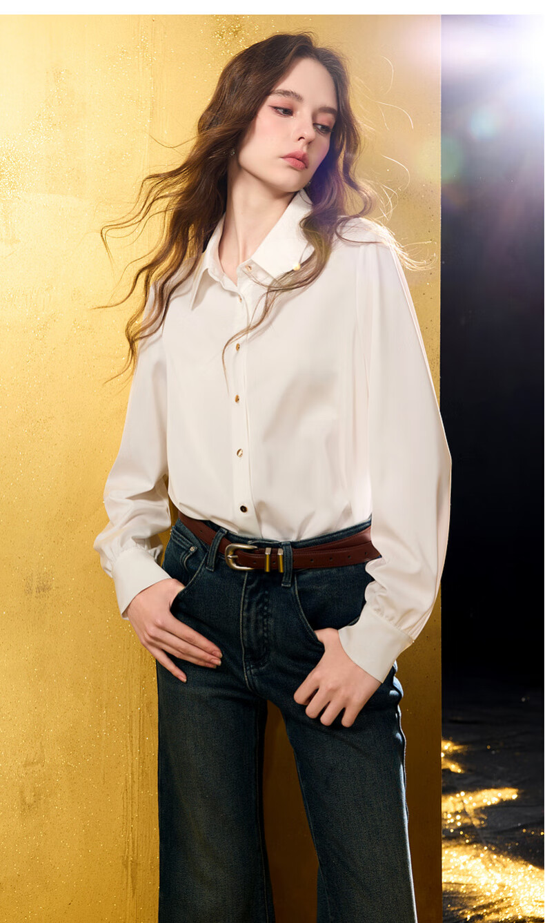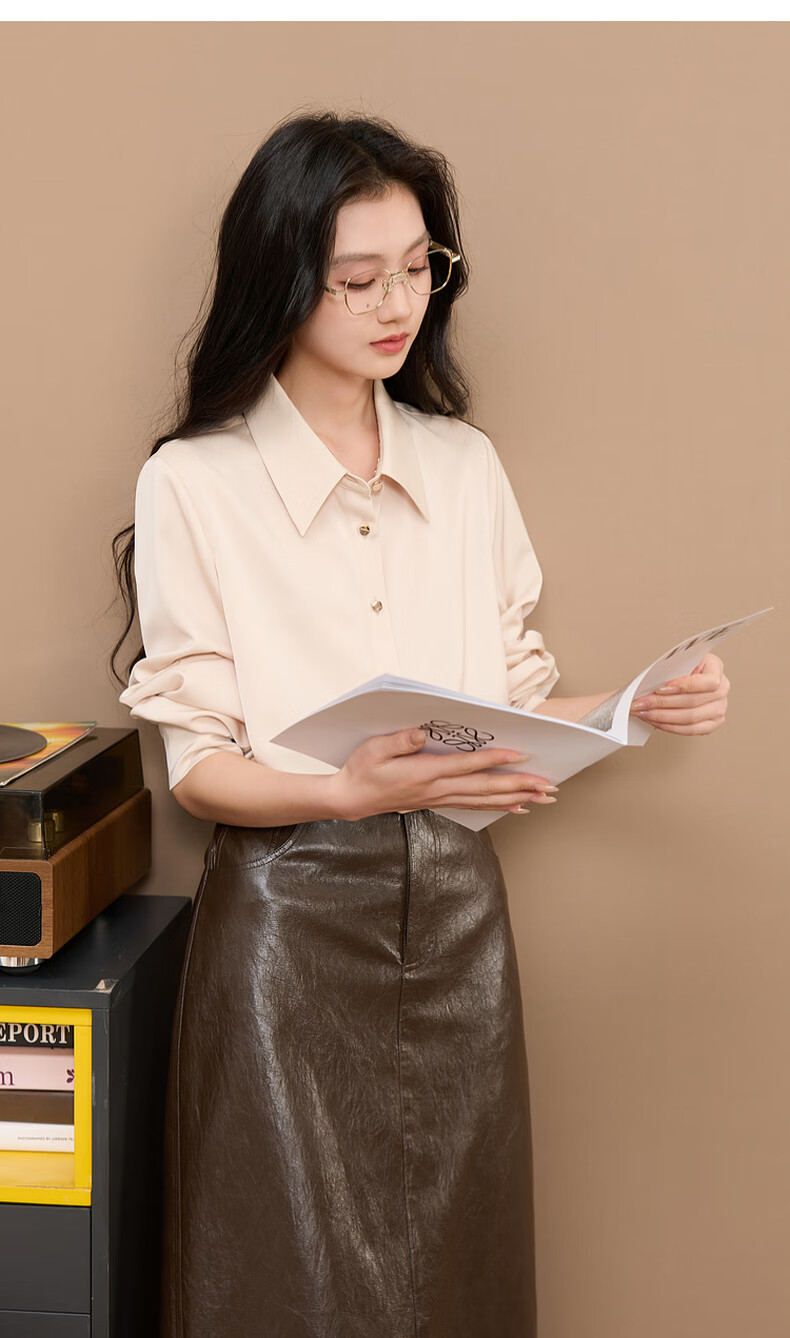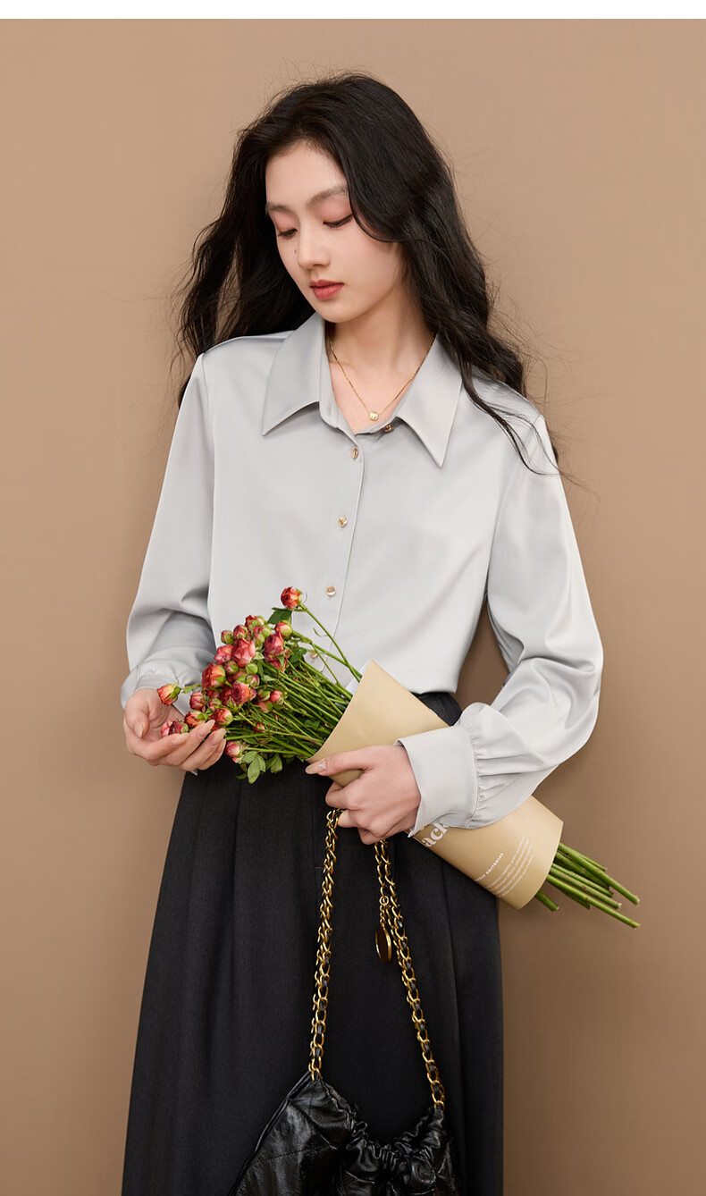 Sancai 2025 new winter shirt lapel loose shirt simple commuting layering Z