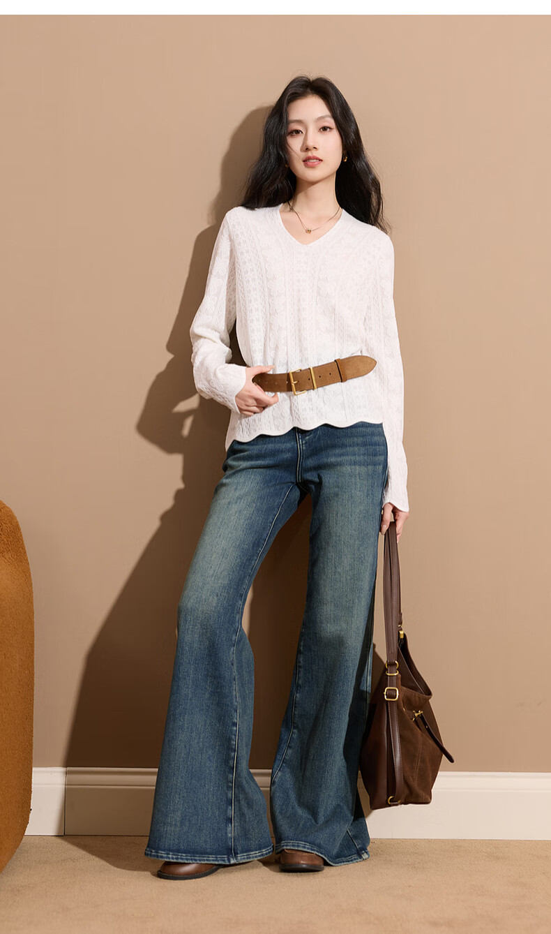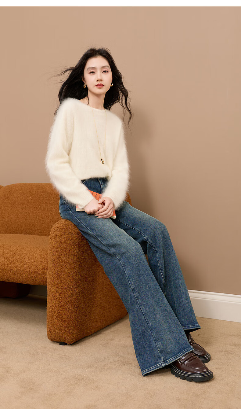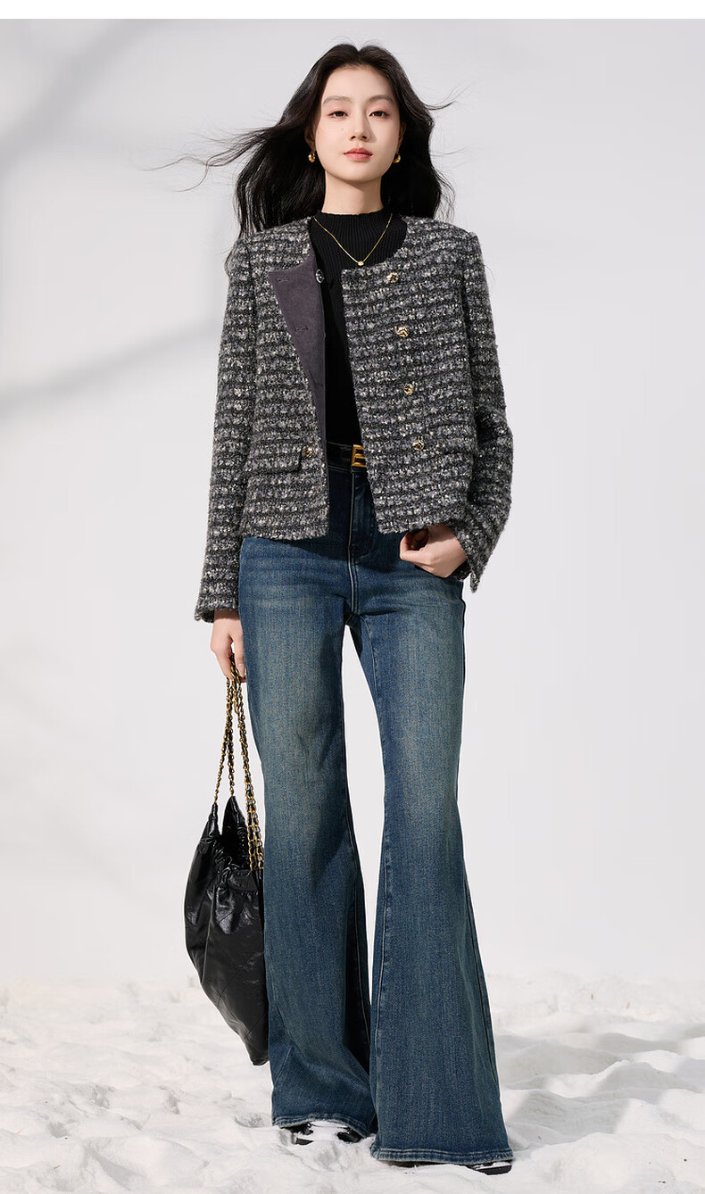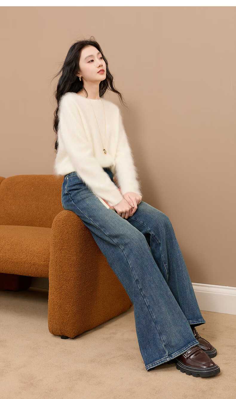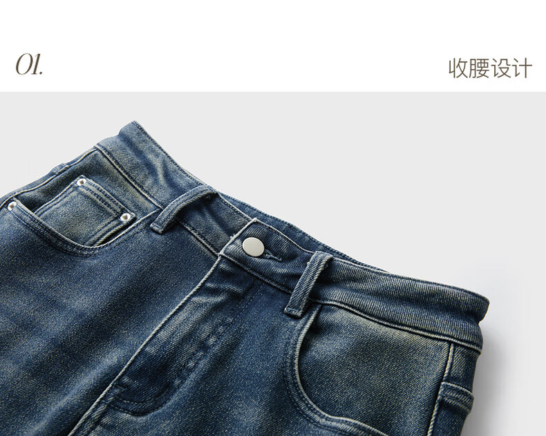 Sancai 2025 new winter style high-waisted brushed jeans casual pants slim-fit bell-bottom trousers micro-flared trousers S