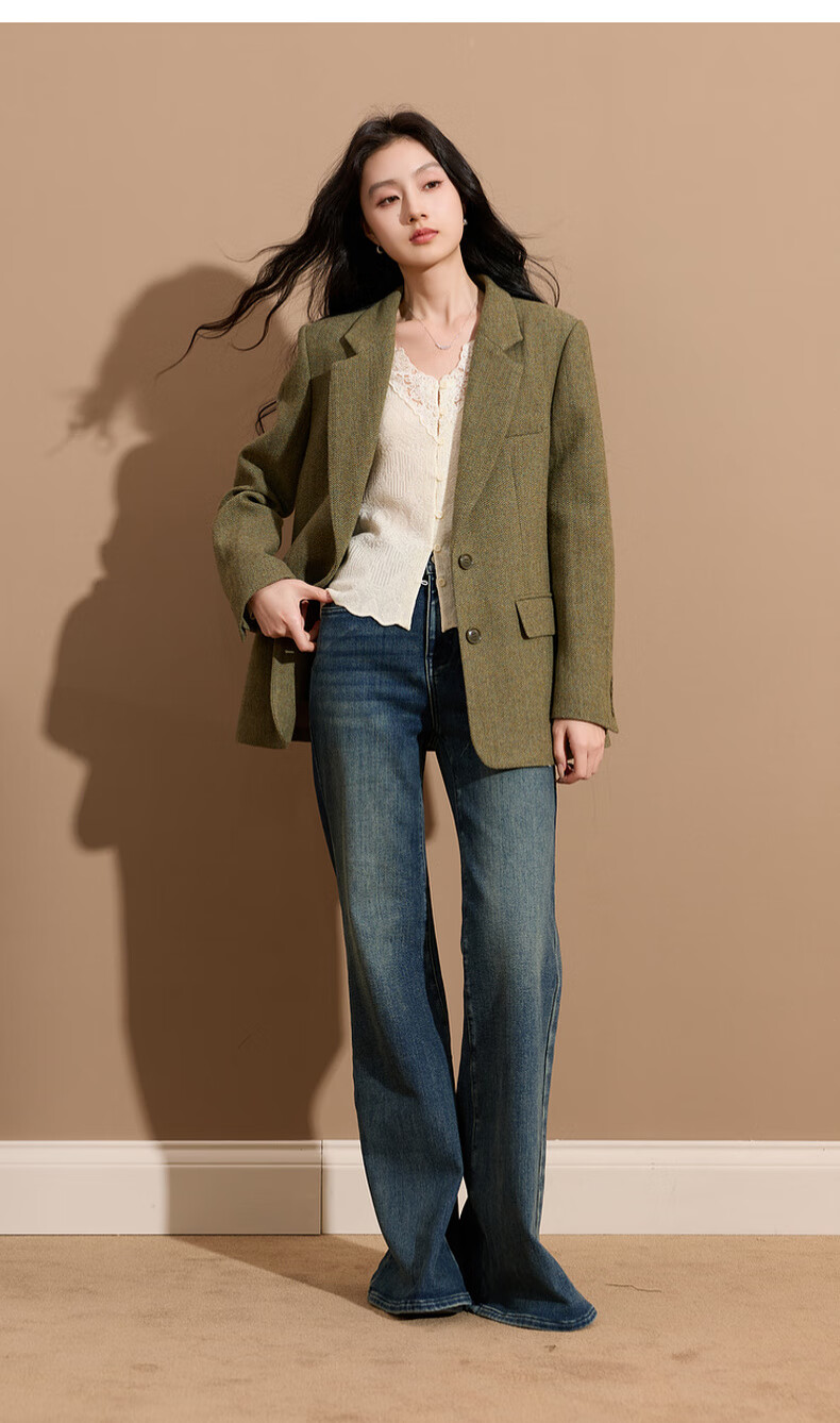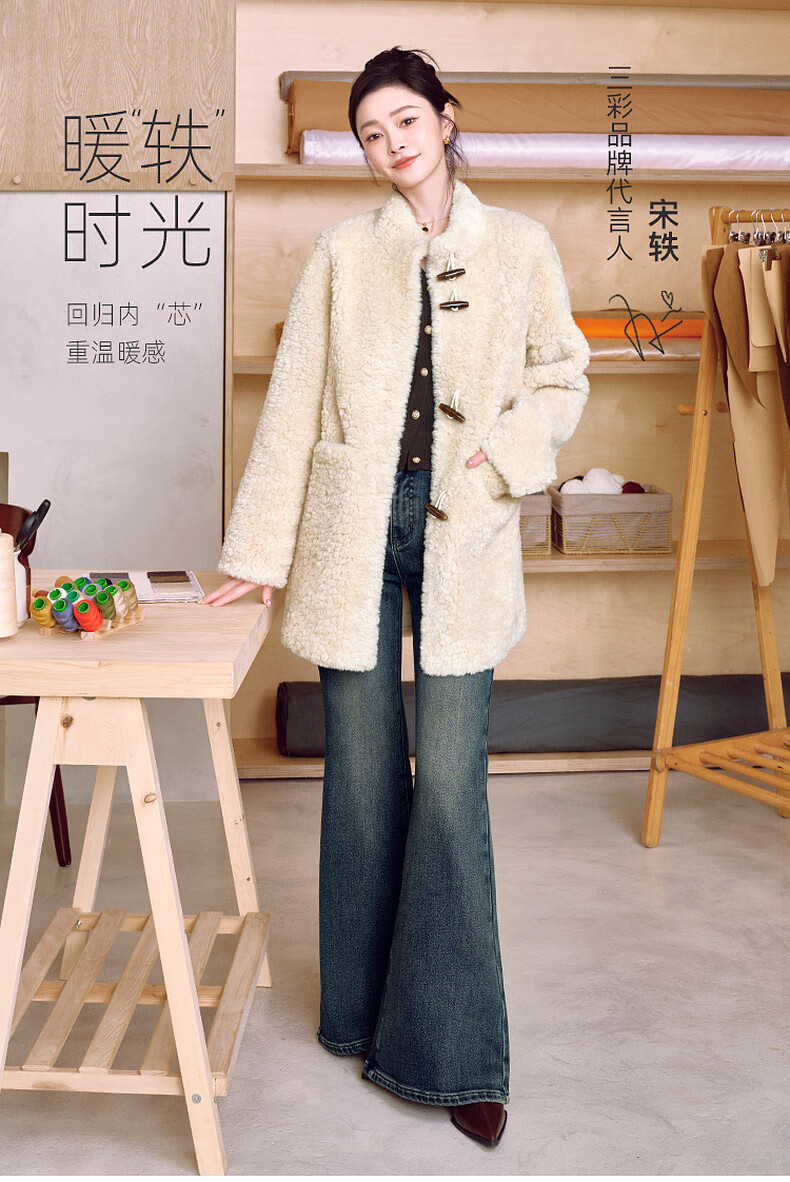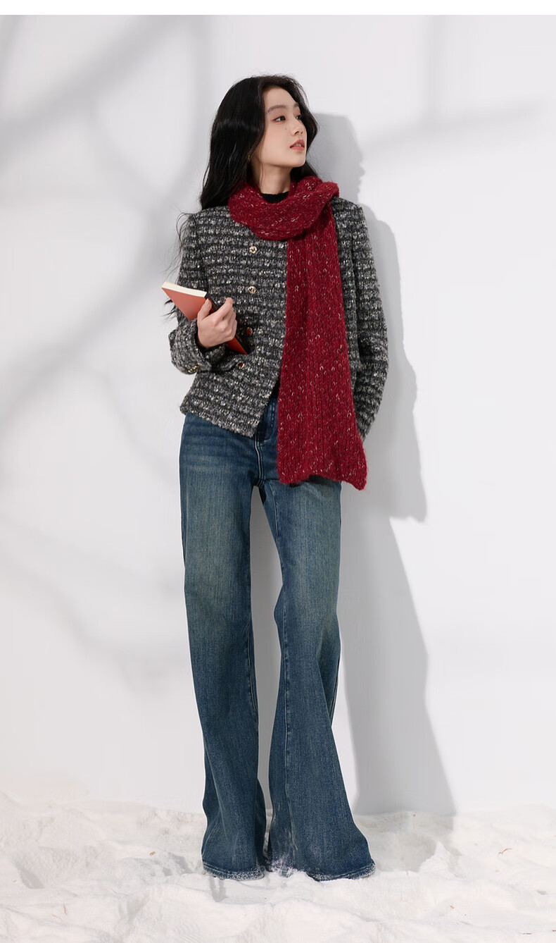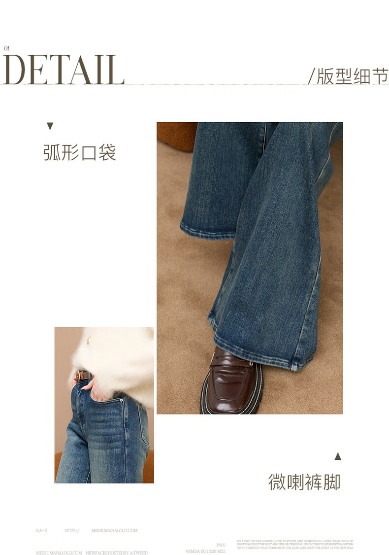 Sancai 2025 new winter style high-waisted brushed jeans casual pants slim-fit bell-bottom trousers micro-flared trousers S