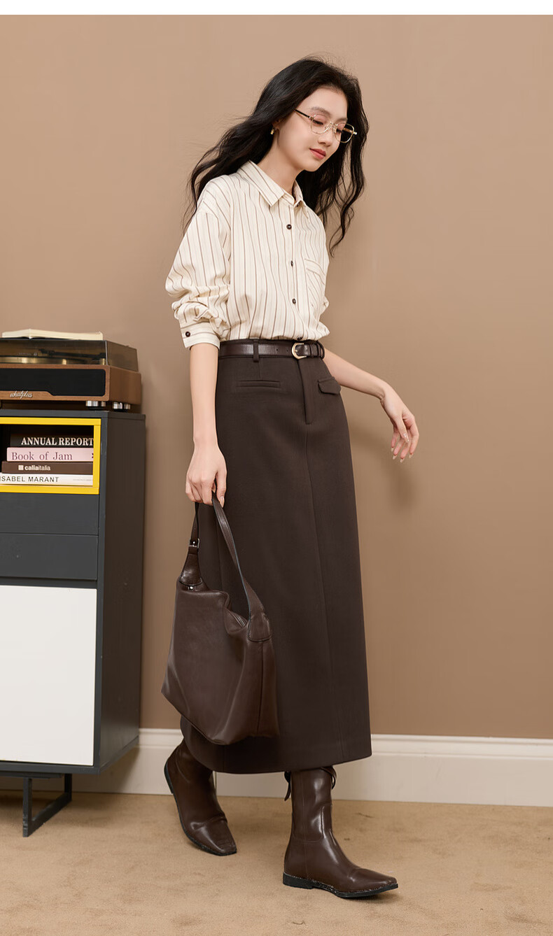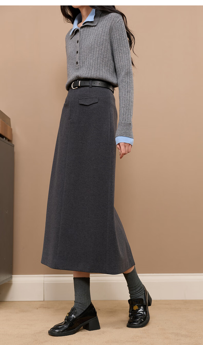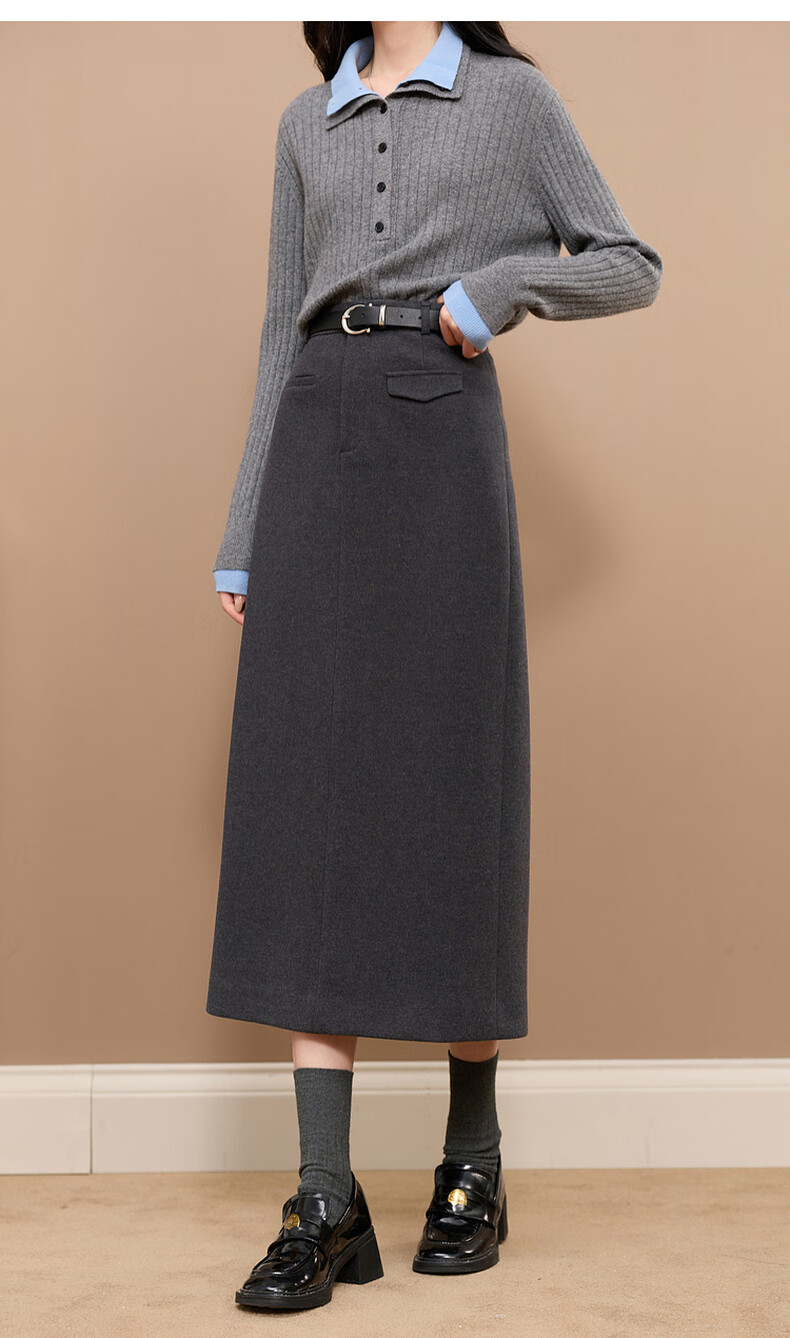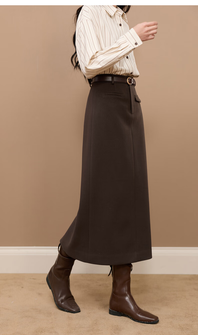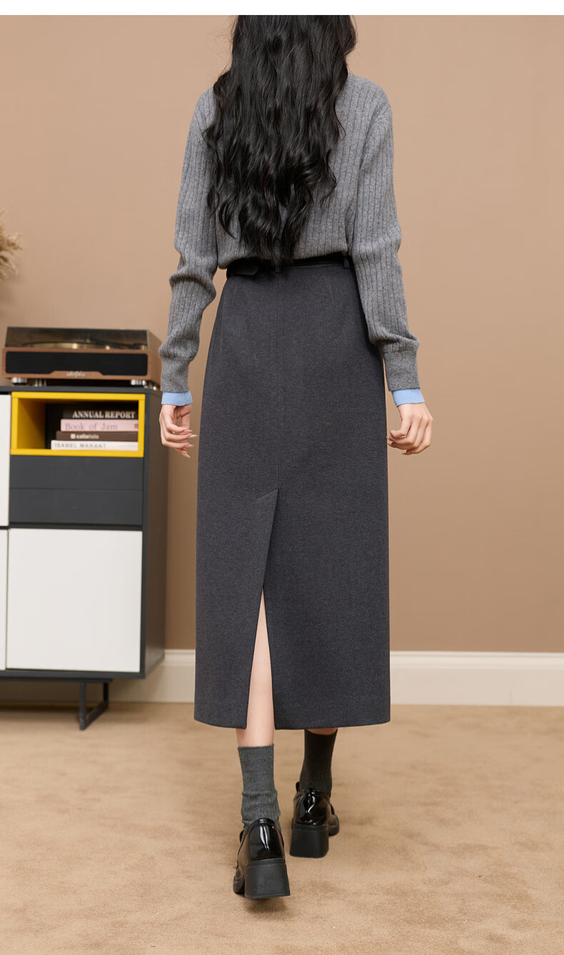 Sancai 2025 winter new commuter skirt straight skirt slit long skirt simple Z