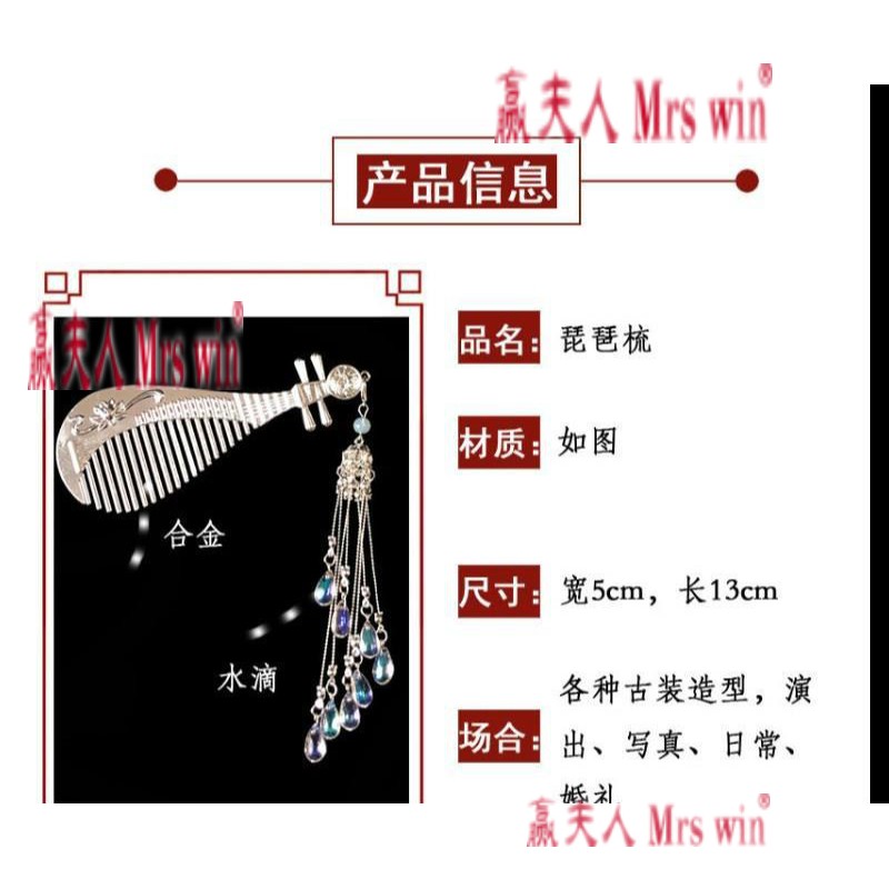Yanxiang Hanfu hair accessories Pipa hair comb tassel headdress Ming Dynasty hairpin ancient style jewelry Tang style ancient costume hairpin hairpin comb Pipa comb silver drop style