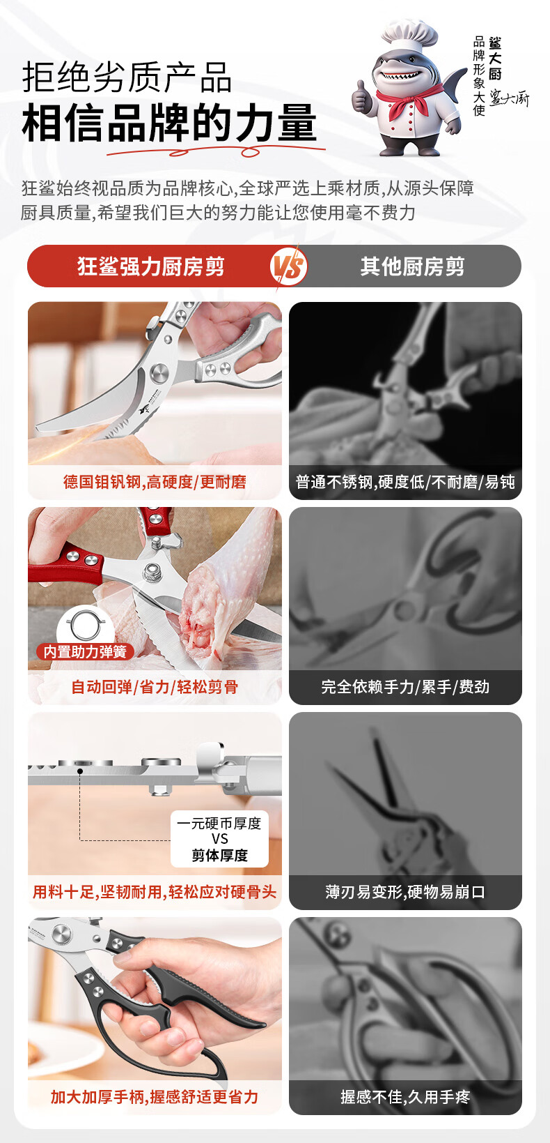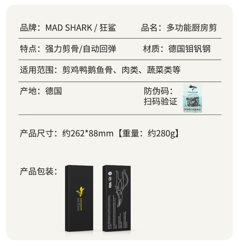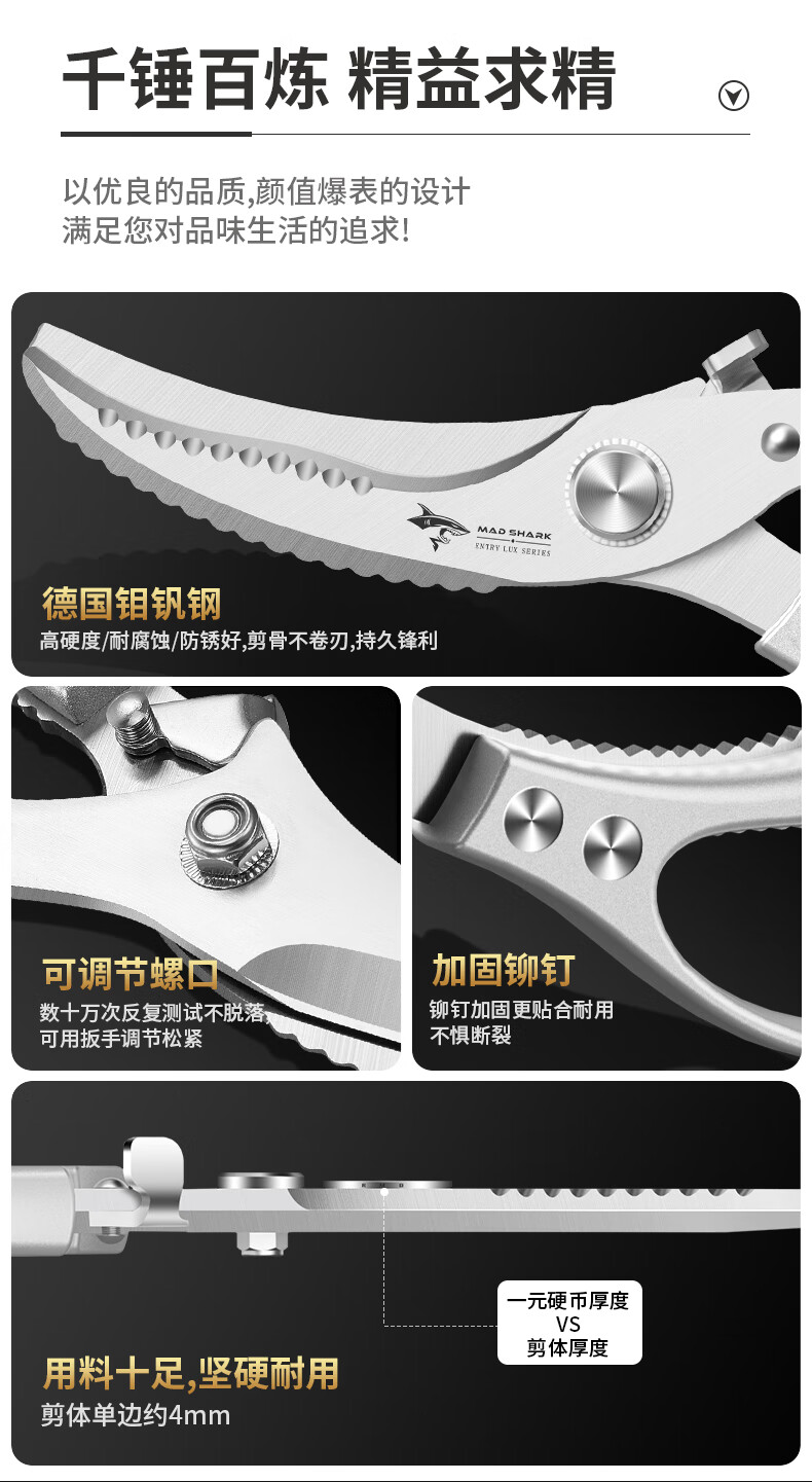MAD SHARK Germany imported strong chicken bone scissors sharp food scissors multi-functional kitchen household scissors food scissors