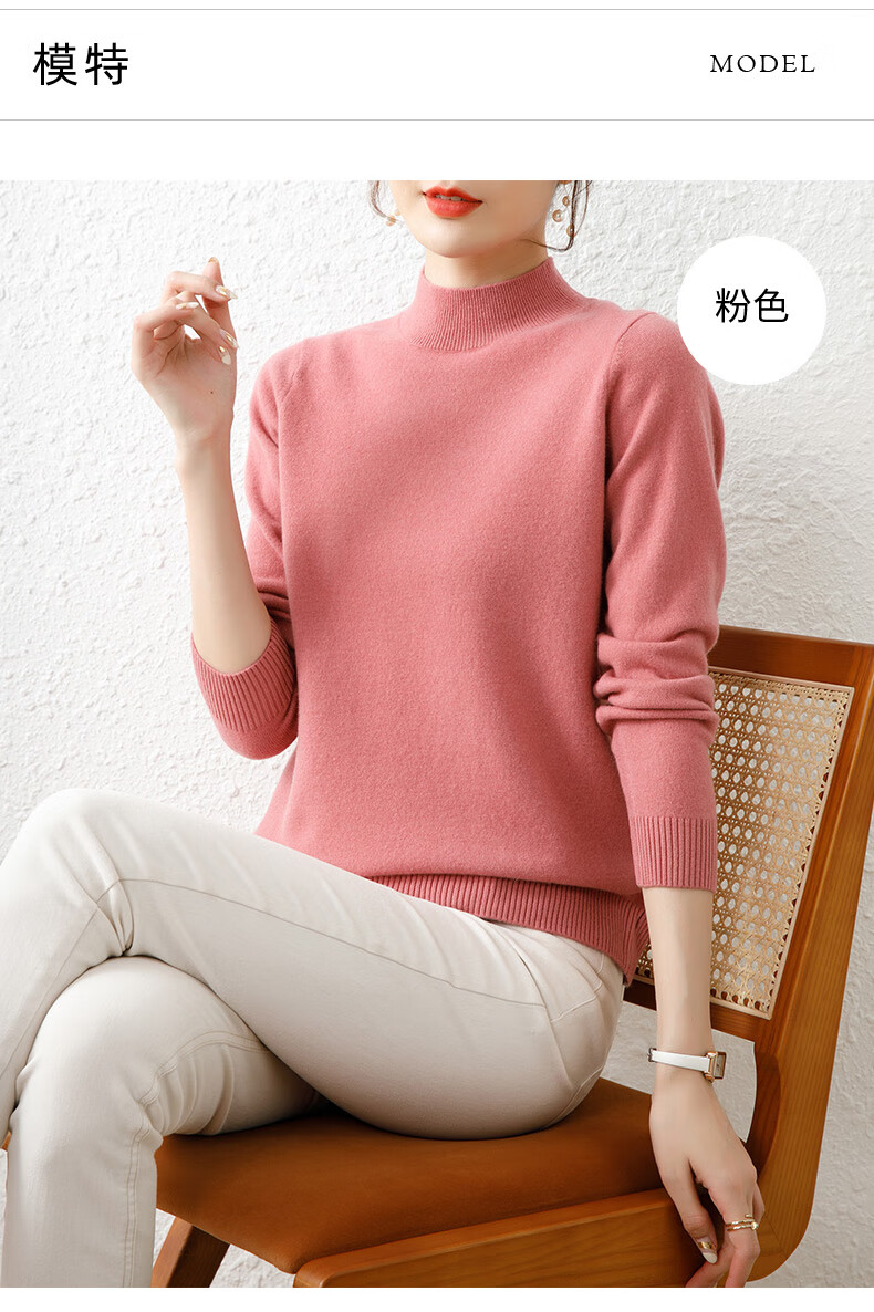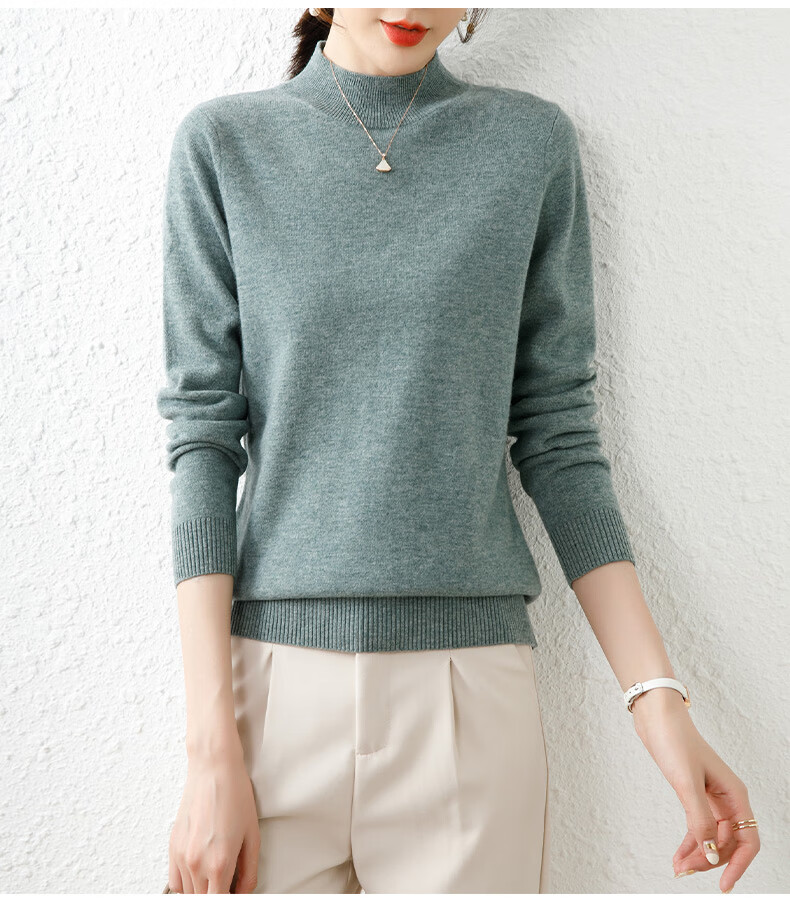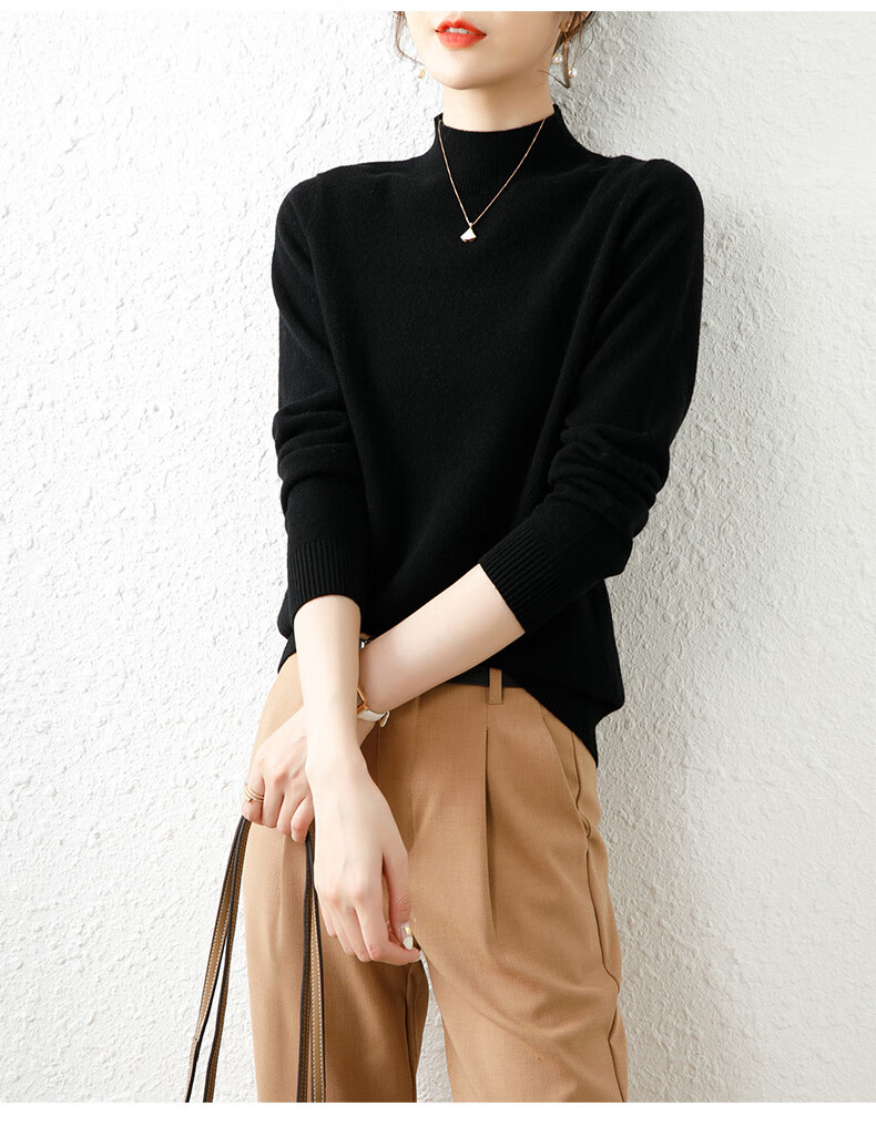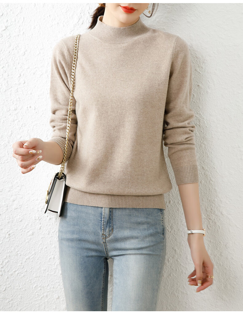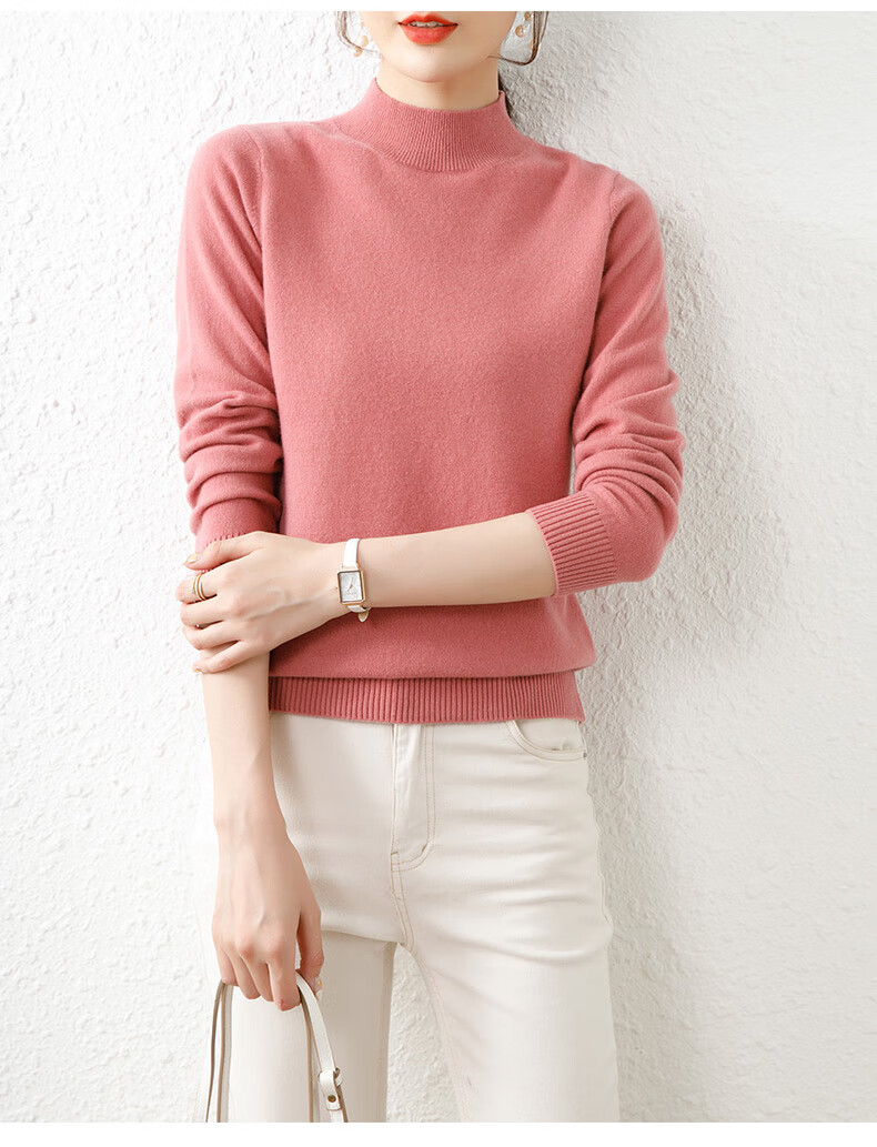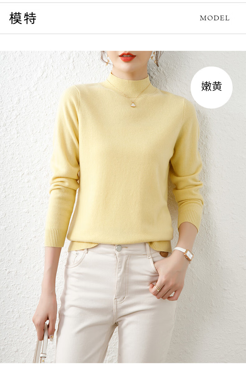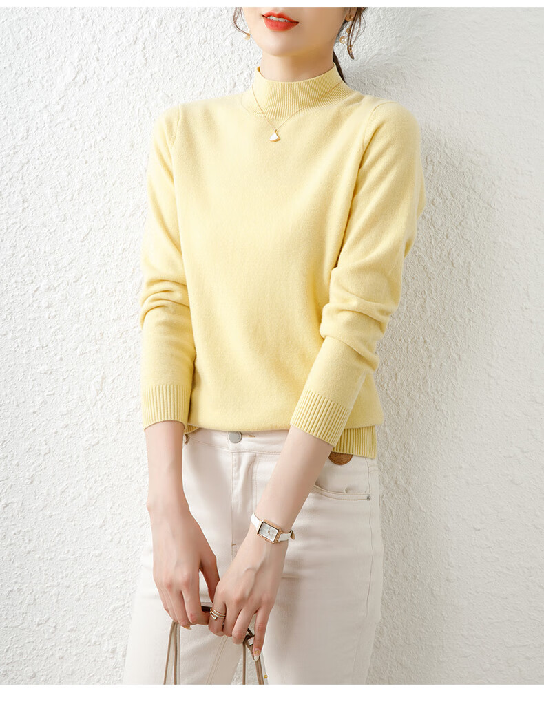 Hengyuanxiang solid color sweater women's autumn and winter wool sweater pullover half turtleneck sweater