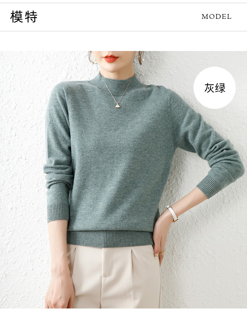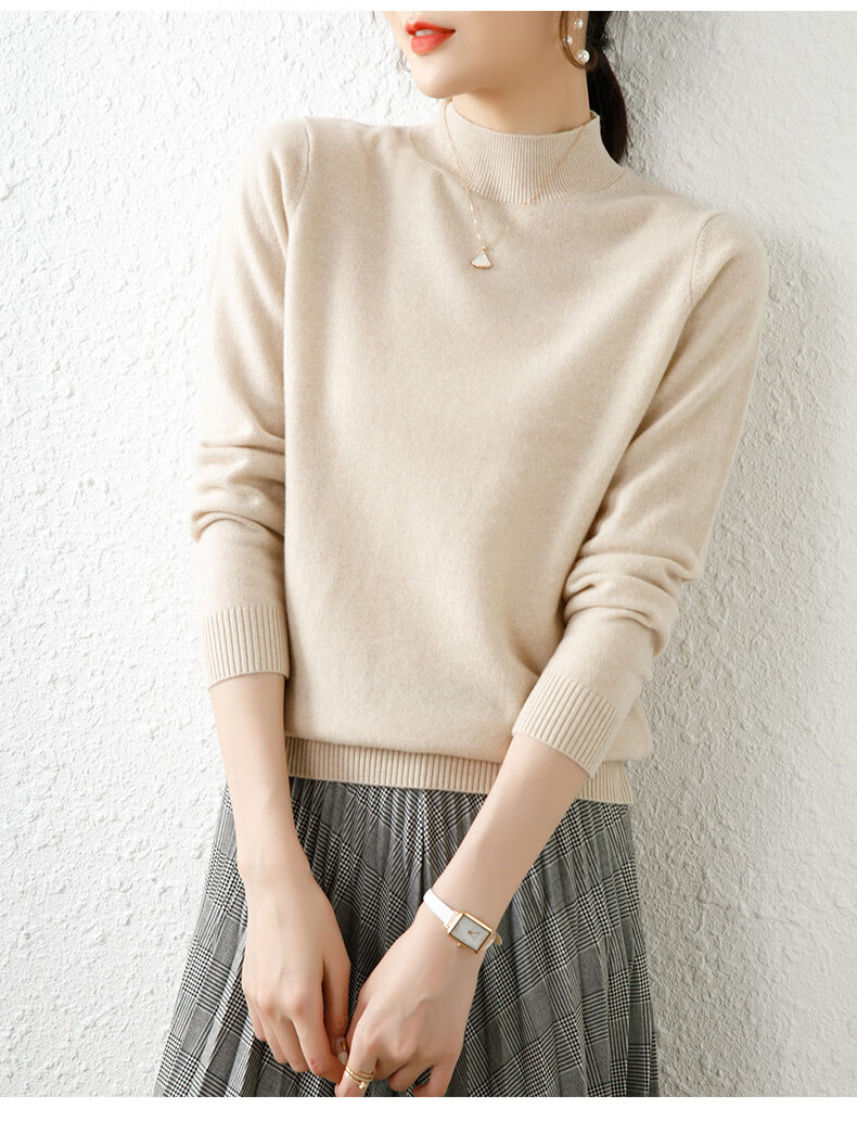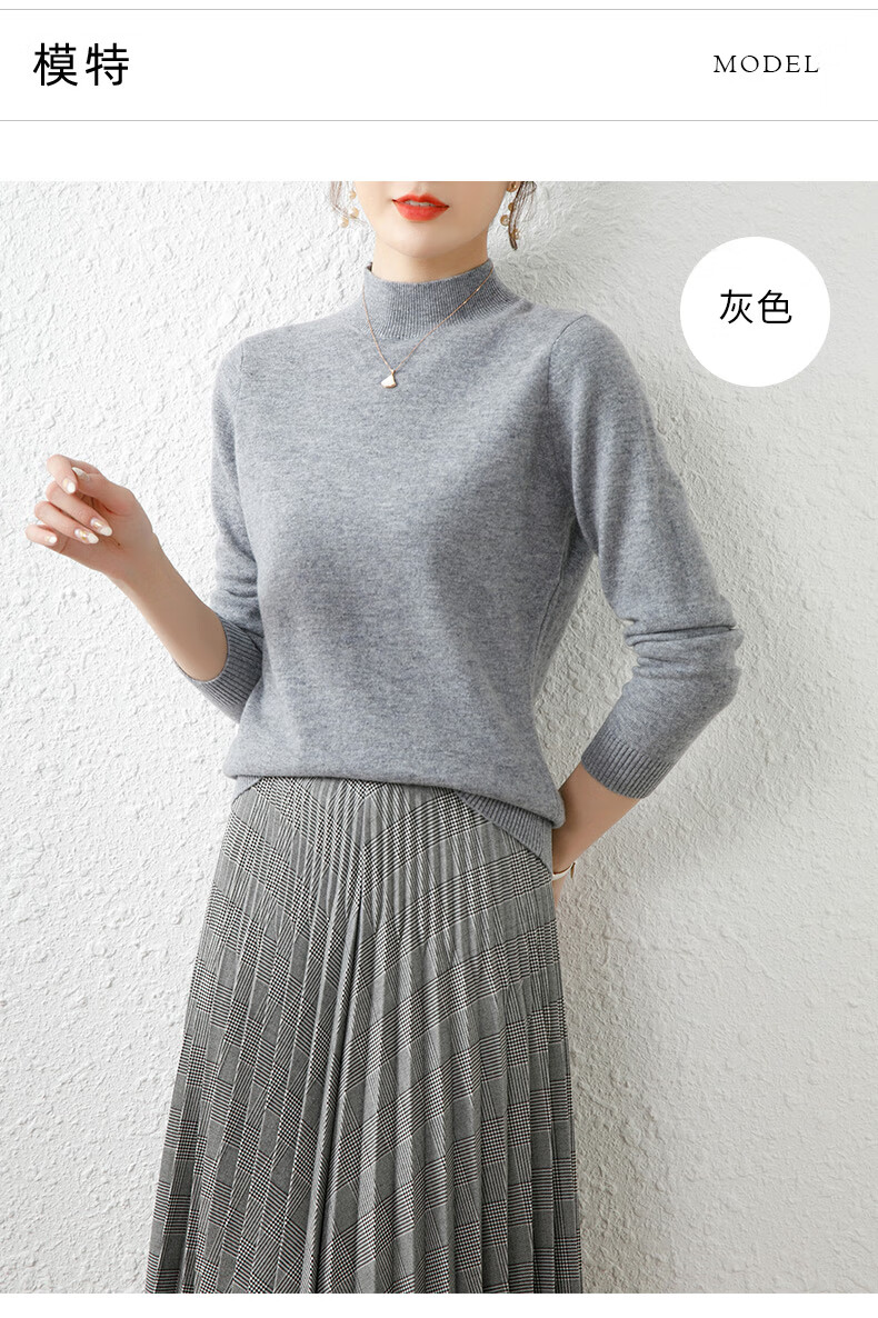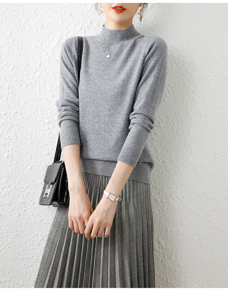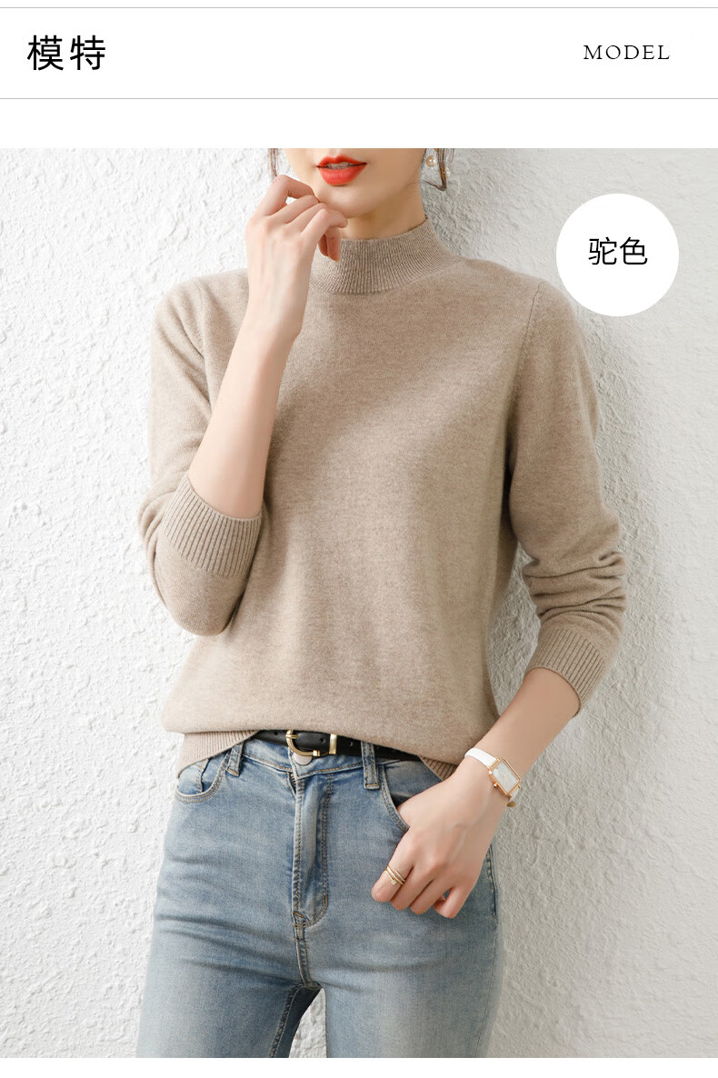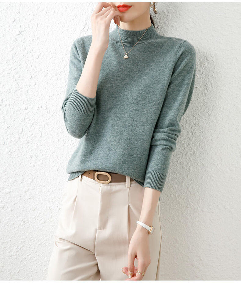 Hengyuanxiang solid color sweater women's autumn and winter wool sweater pullover half turtleneck sweater