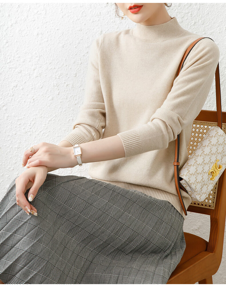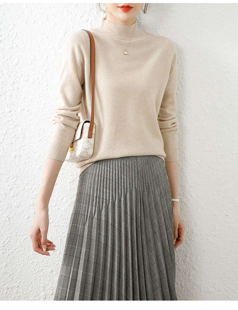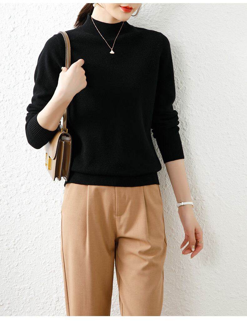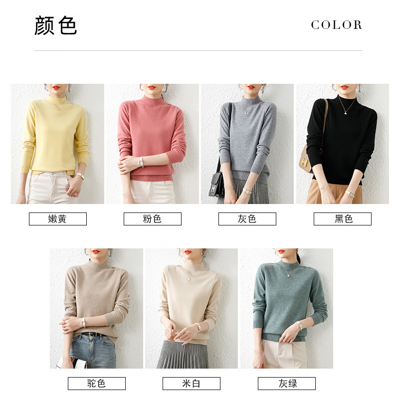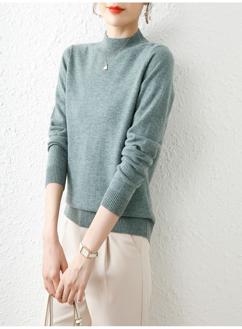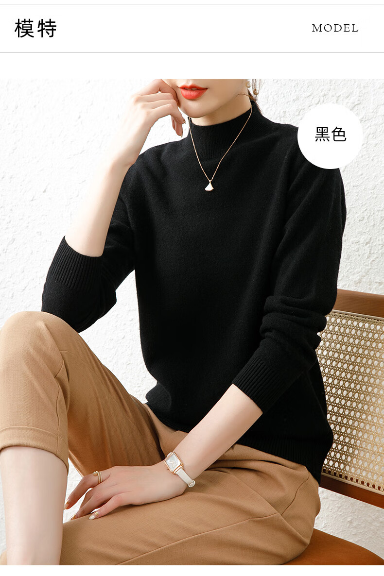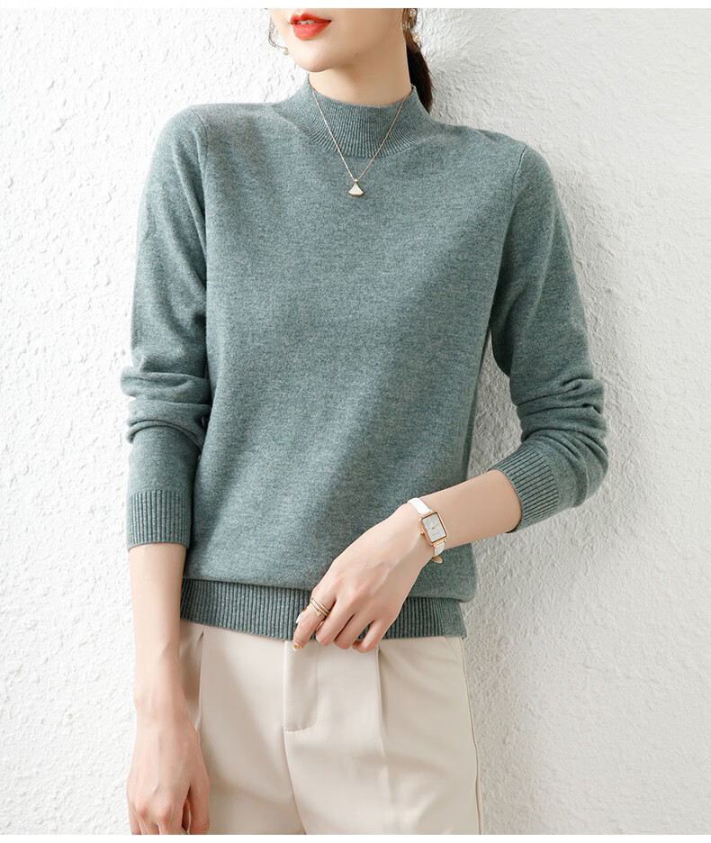 Hengyuanxiang solid color sweater women's autumn and winter wool sweater pullover half turtleneck sweater