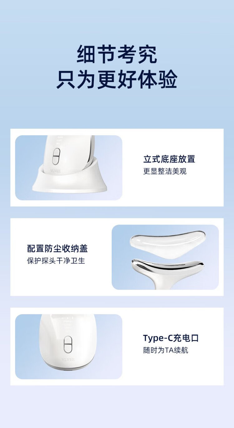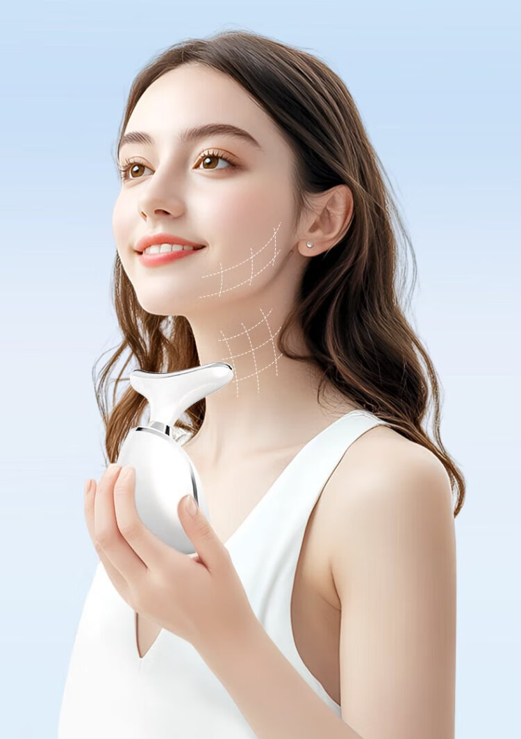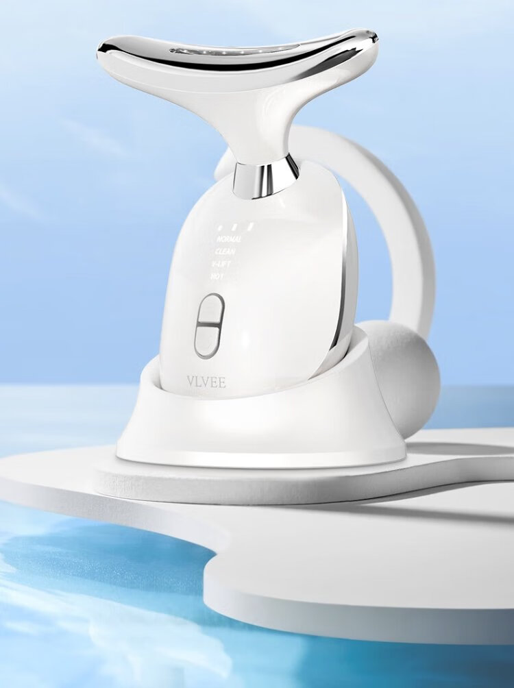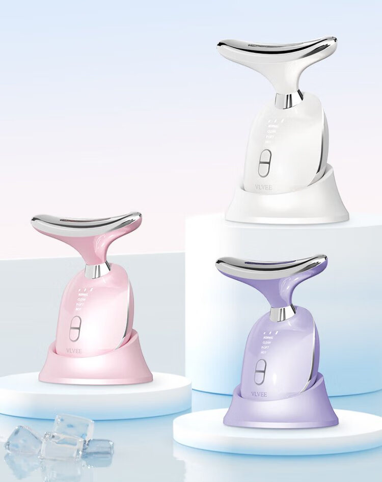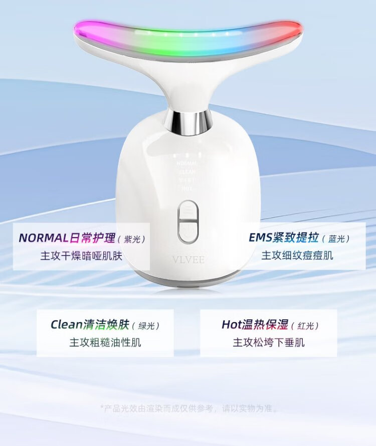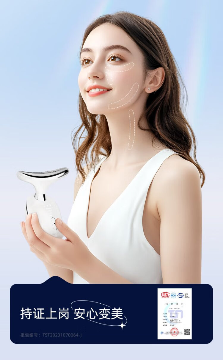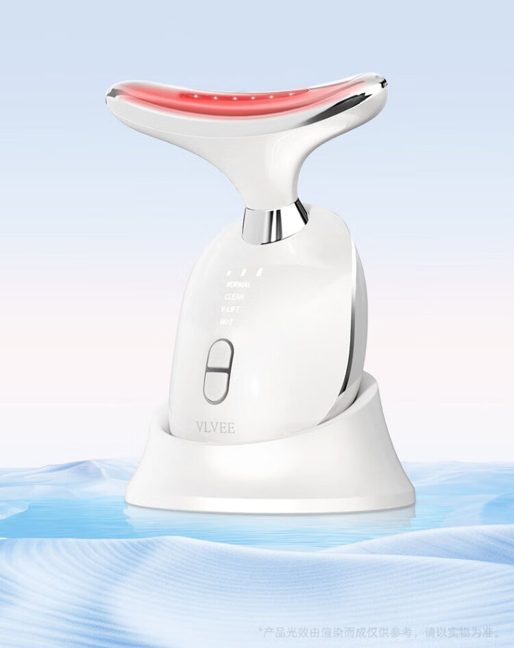 VLVEE neck beauty instrument, neck and face massager, neck lines and nasolabial folds lifting, red and blue light facial massage, introduction of facial lifting beauty instrument, New Year gift for girlfriend, temperament white + neck cream, high frequency vibration/temperature lifting/color light skin care