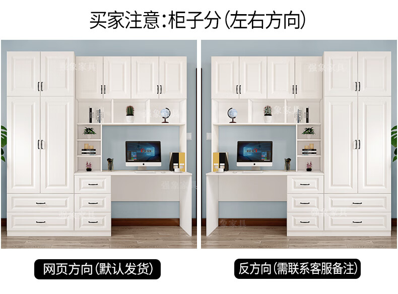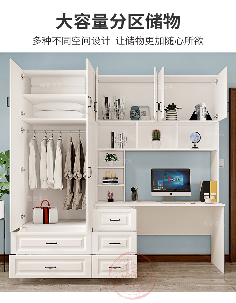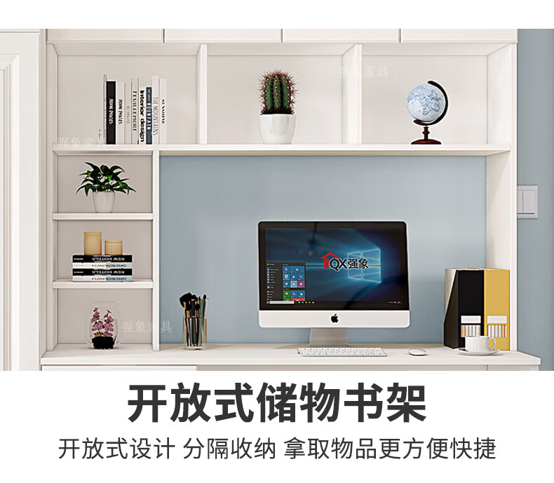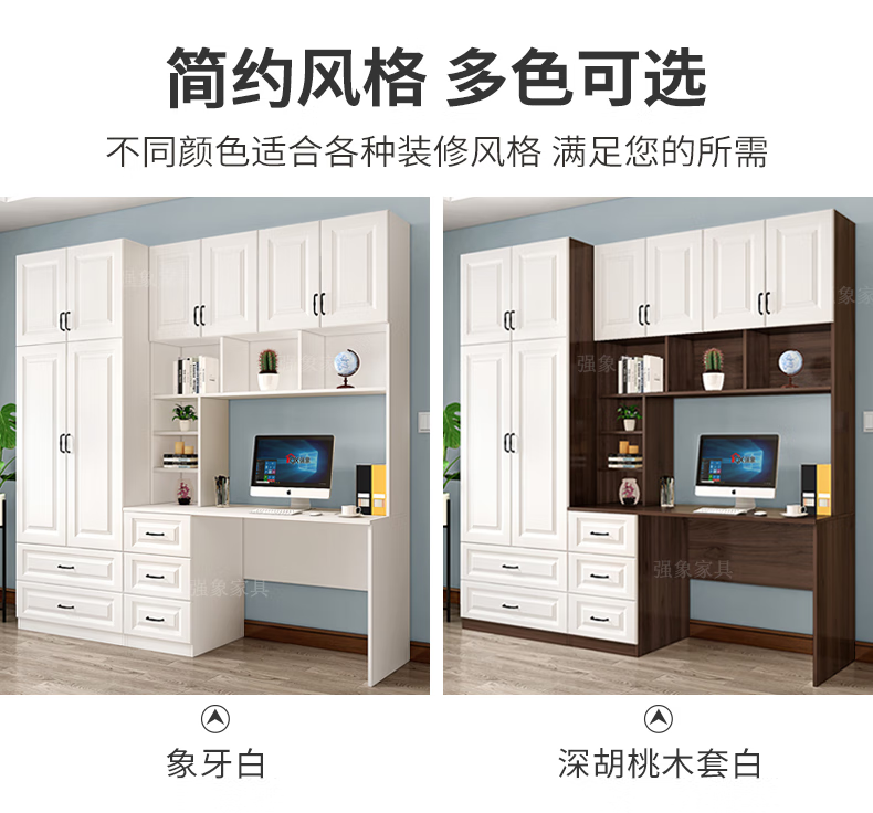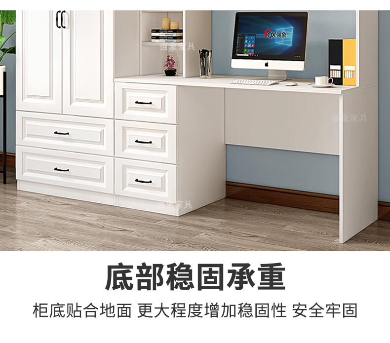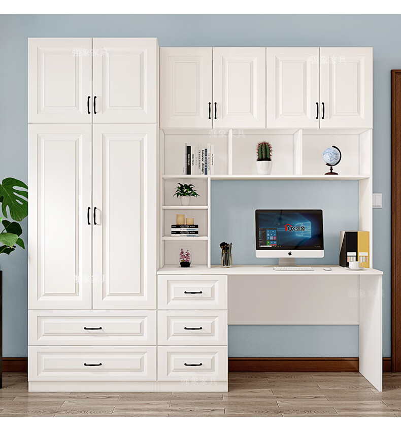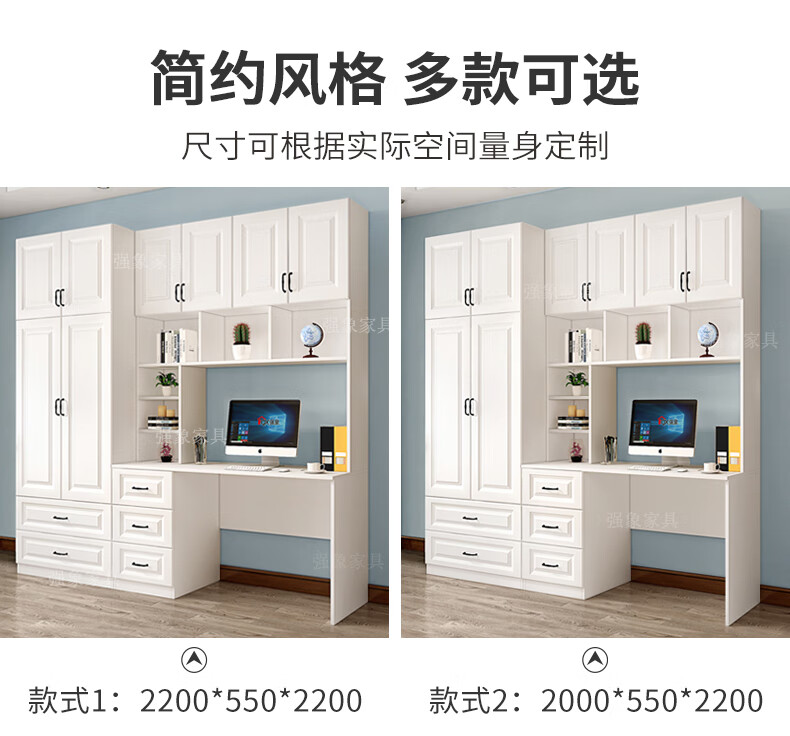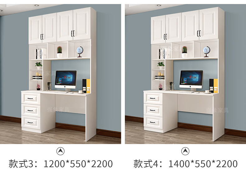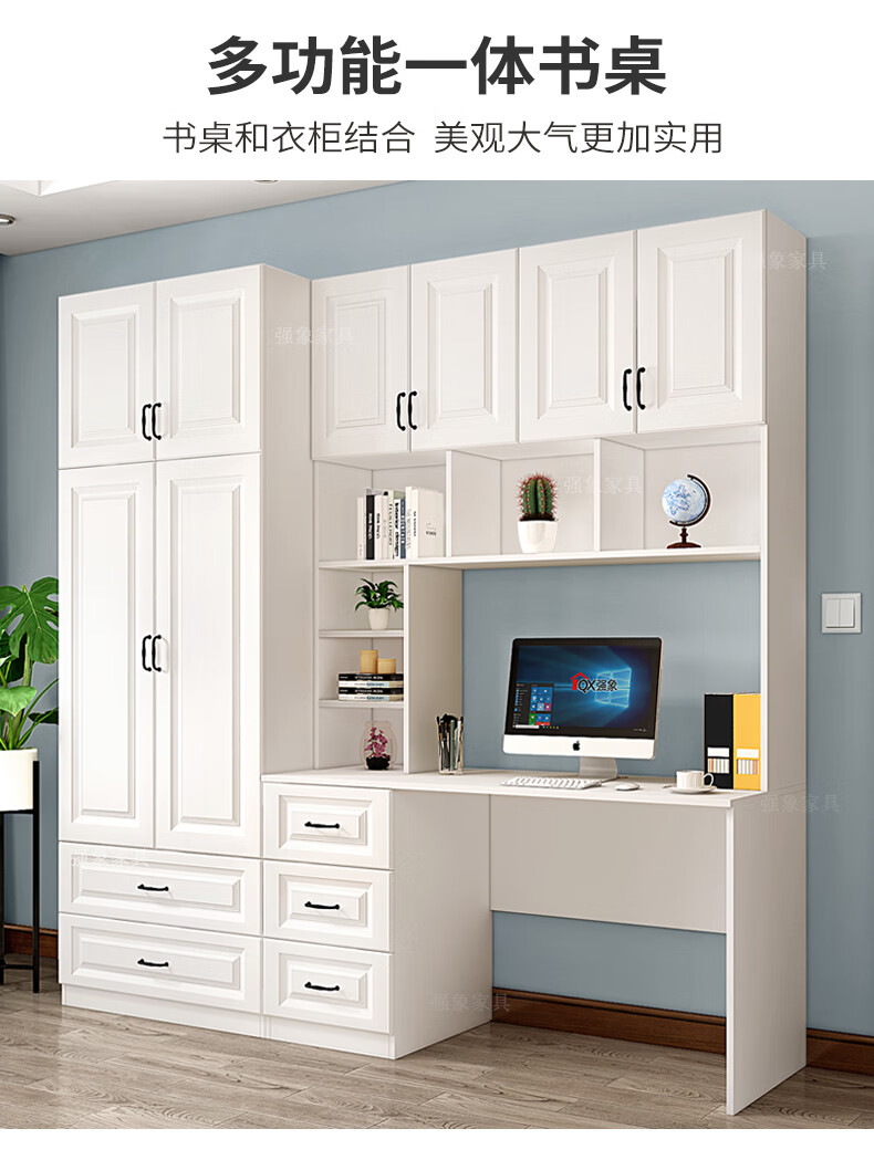 Qiangxiang Desk Bookshelf Integrated Desk Children's Computer Desk Desk Simple Home Student Writing Desk Wardrobe Combination FL3 Style 1 W2200*D550*H2200