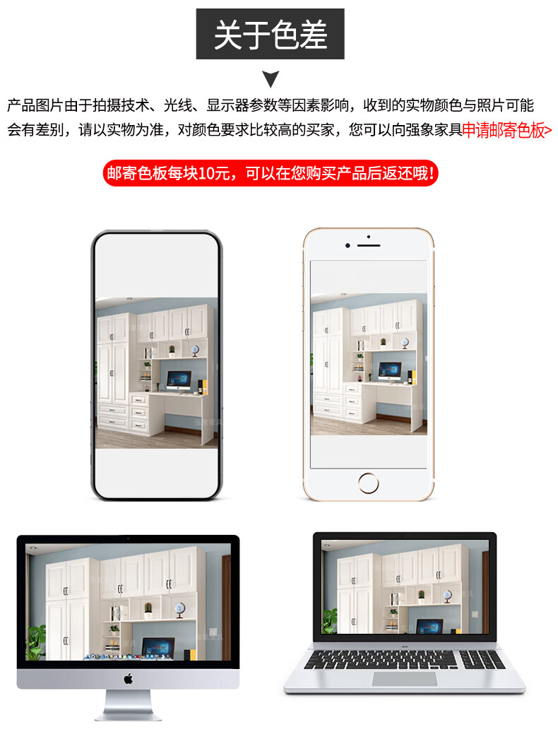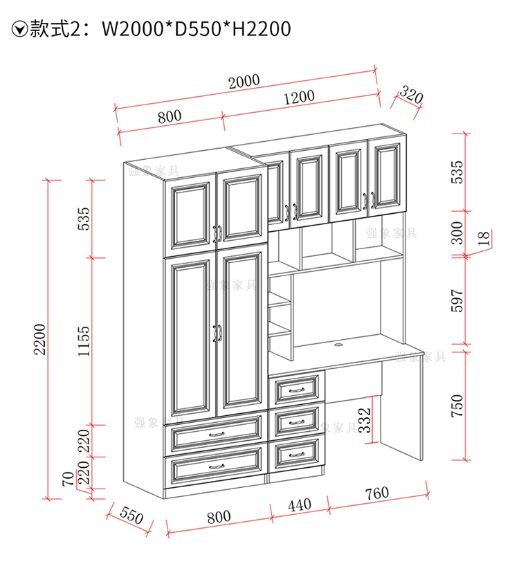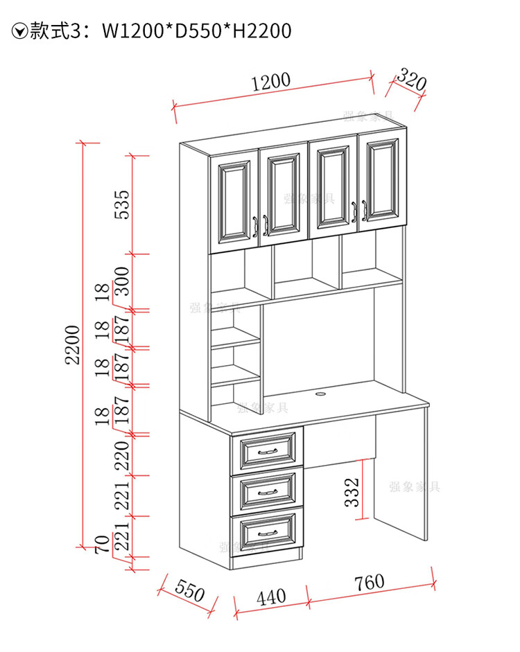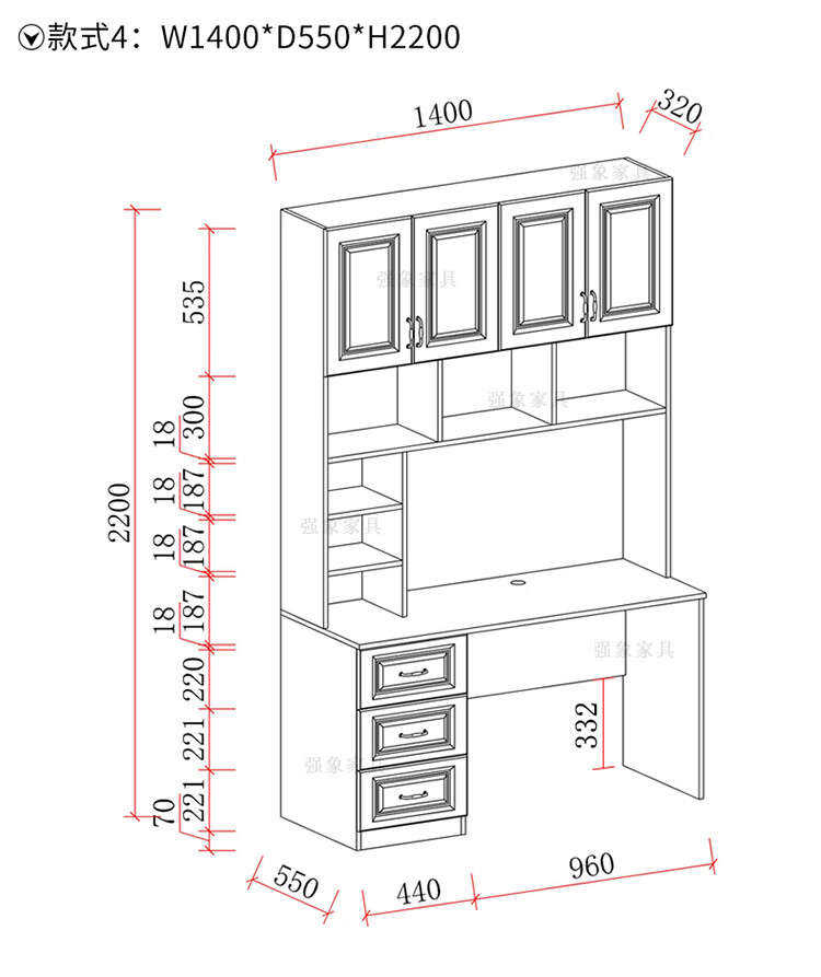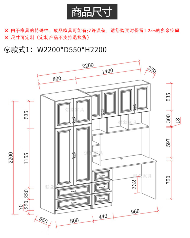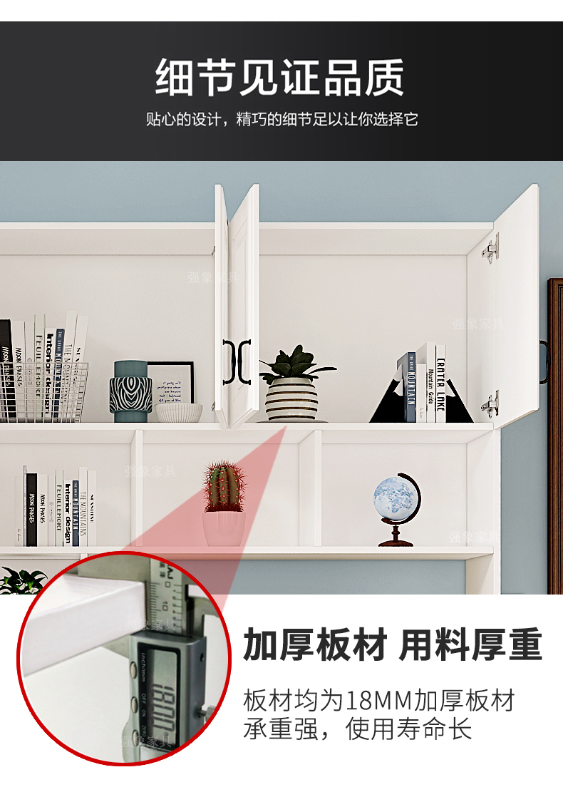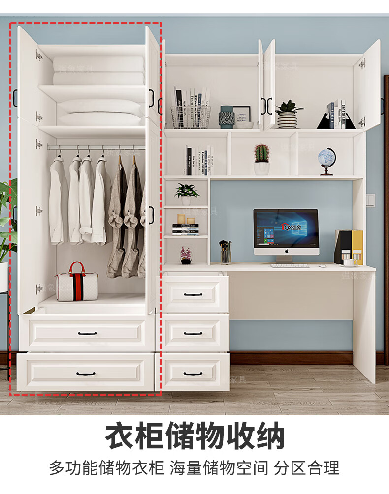 Qiangxiang Desk Bookshelf Integrated Desk Children's Computer Desk Desk Simple Home Student Writing Desk Wardrobe Combination FL3 Style 1 W2200*D550*H2200