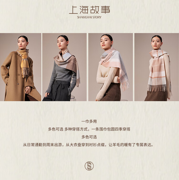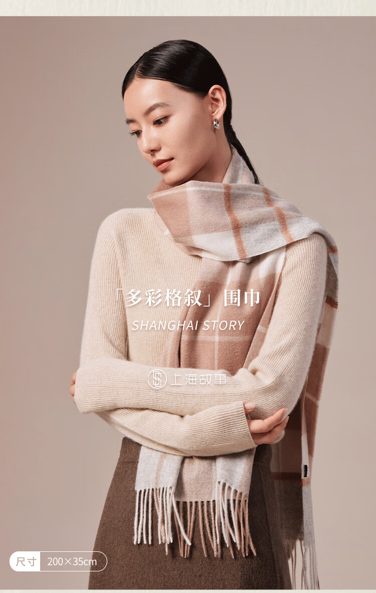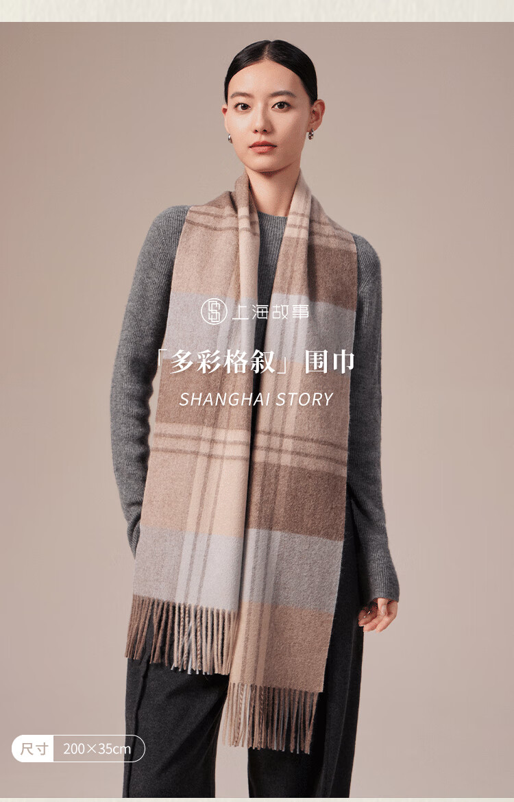 Shanghai Story Wool Scarf Women's Mid-Autumn Festival Gift for Elder Mothers Birthday Gift Women's Autumn and Winter New Warm Scarf Shawl