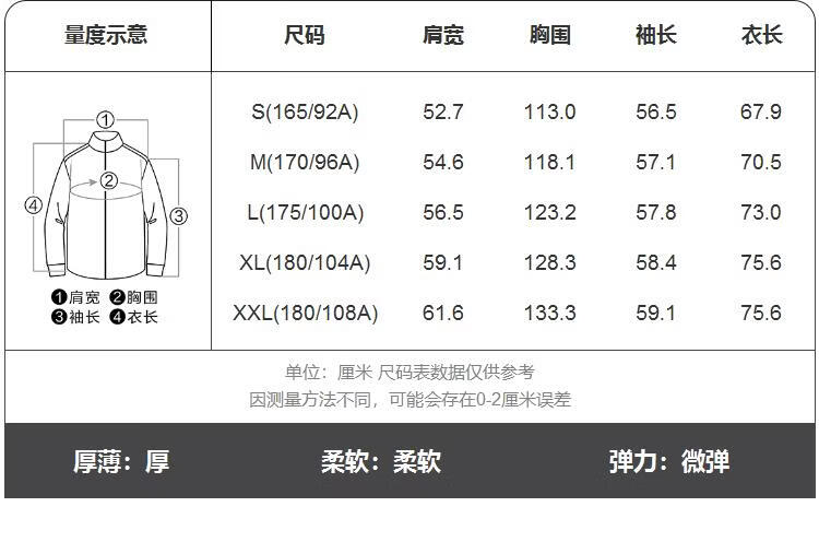 China (cm) 165 / 88-90 170 / 96-98 175 / 108-110 180 / 118-122 185 / 126-130