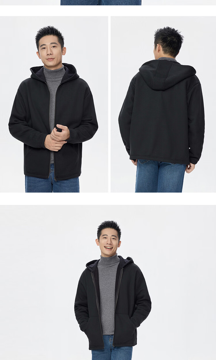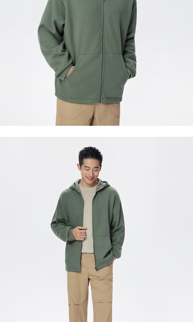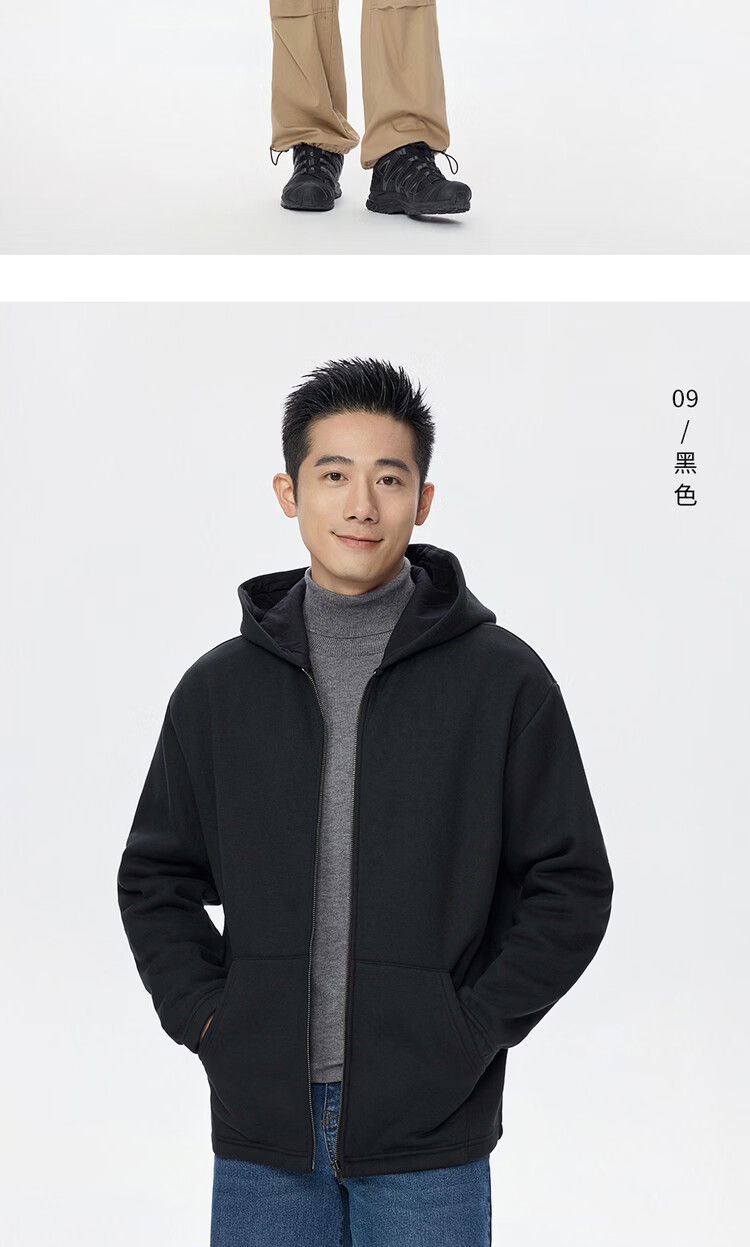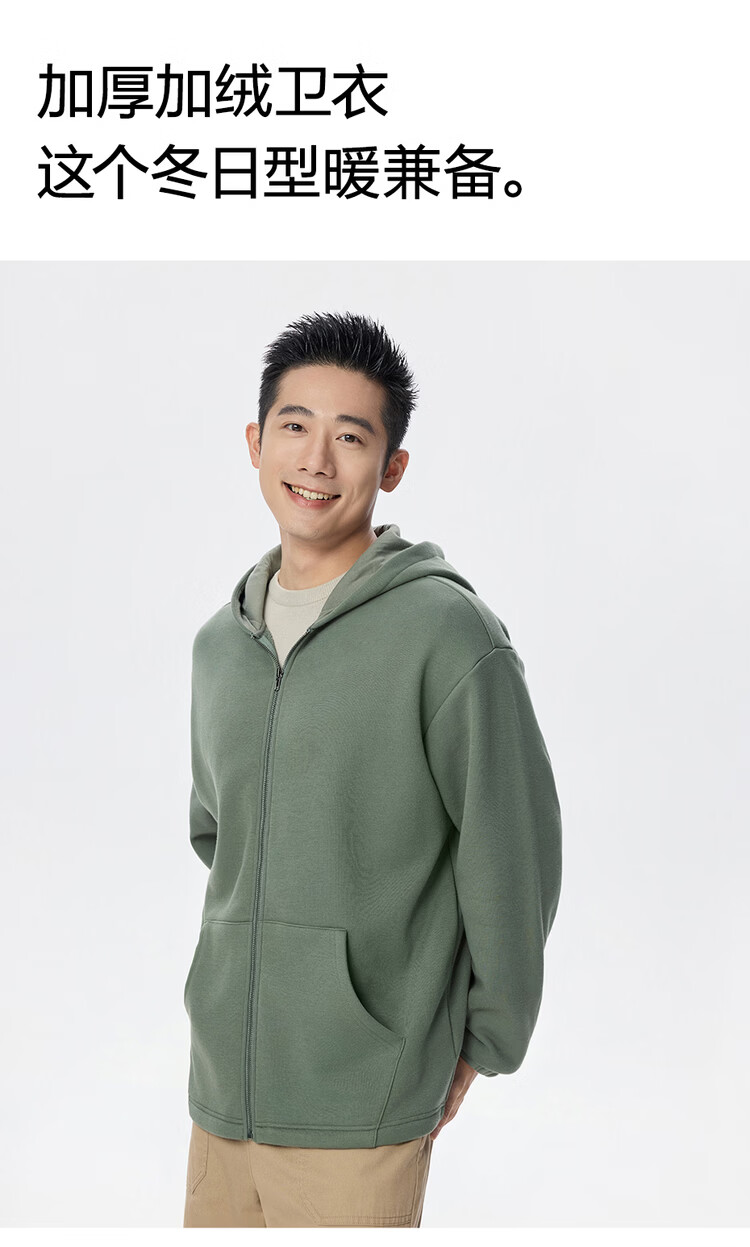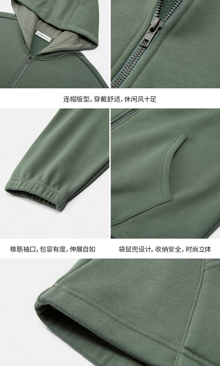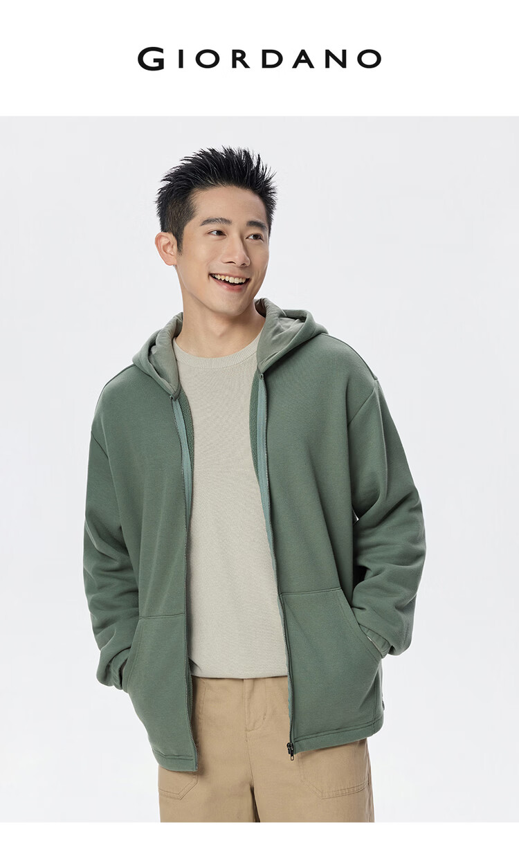 Giordano hooded sweatshirt men's new velvet thickened kangaroo pocket loose casual jacket cardigan 18075812