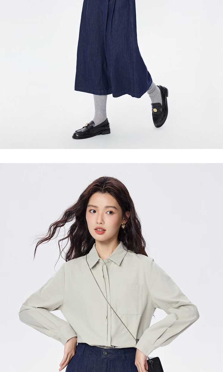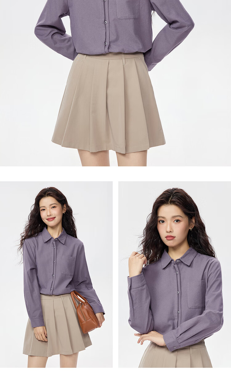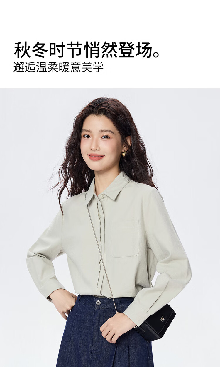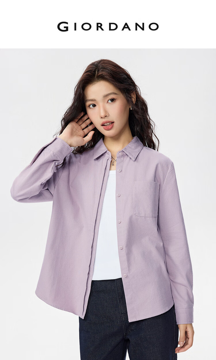 Giordano long-sleeved shirt for women pure cotton flannel double door pocket casual commuting shirt for women 05345881