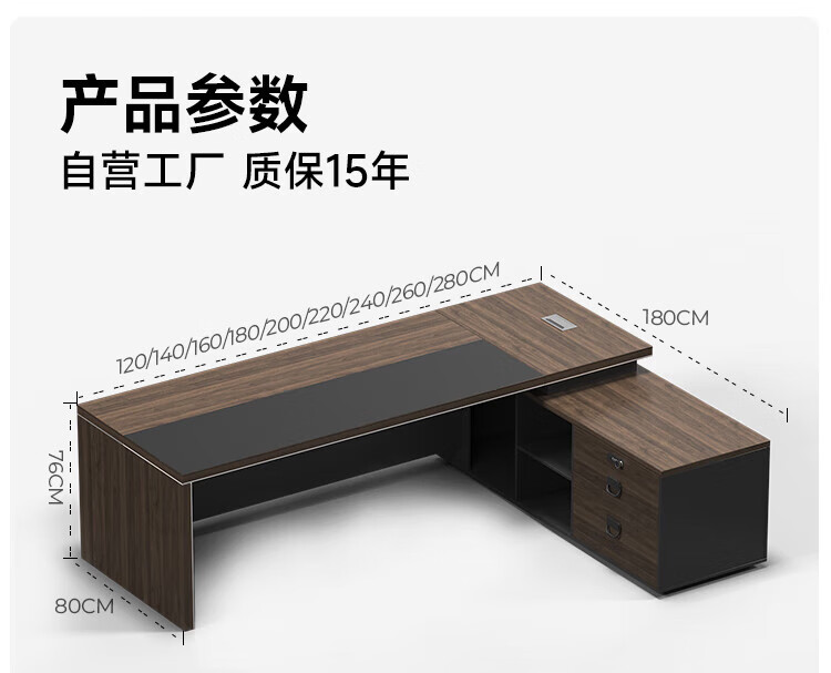 ZHONGWEI boss desk simple modern president desk office executive desk manager desk 1.8 meters including side cabinets