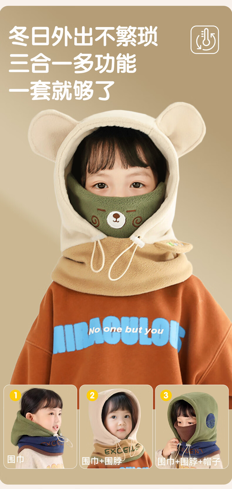 Ousen children's hat winter warm neck scarf windproof mask one-piece hat boys and girls masks ear protection balaclava