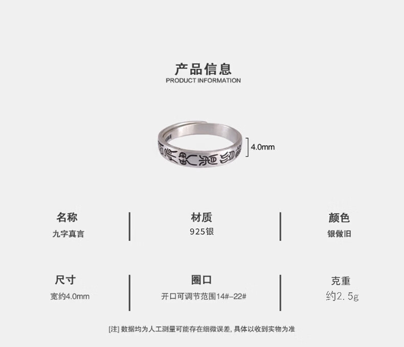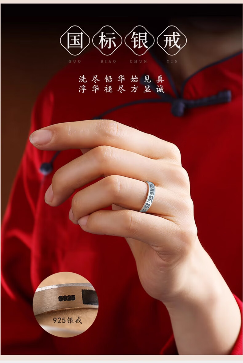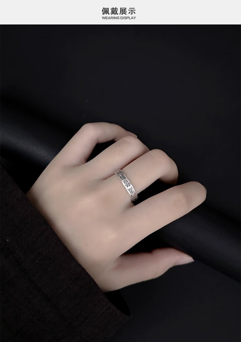 Longhushan 925 silver nine-character mantra ring for men and women, opening adjustment ring, men's Taoist fortune-traveling amulet jewelry