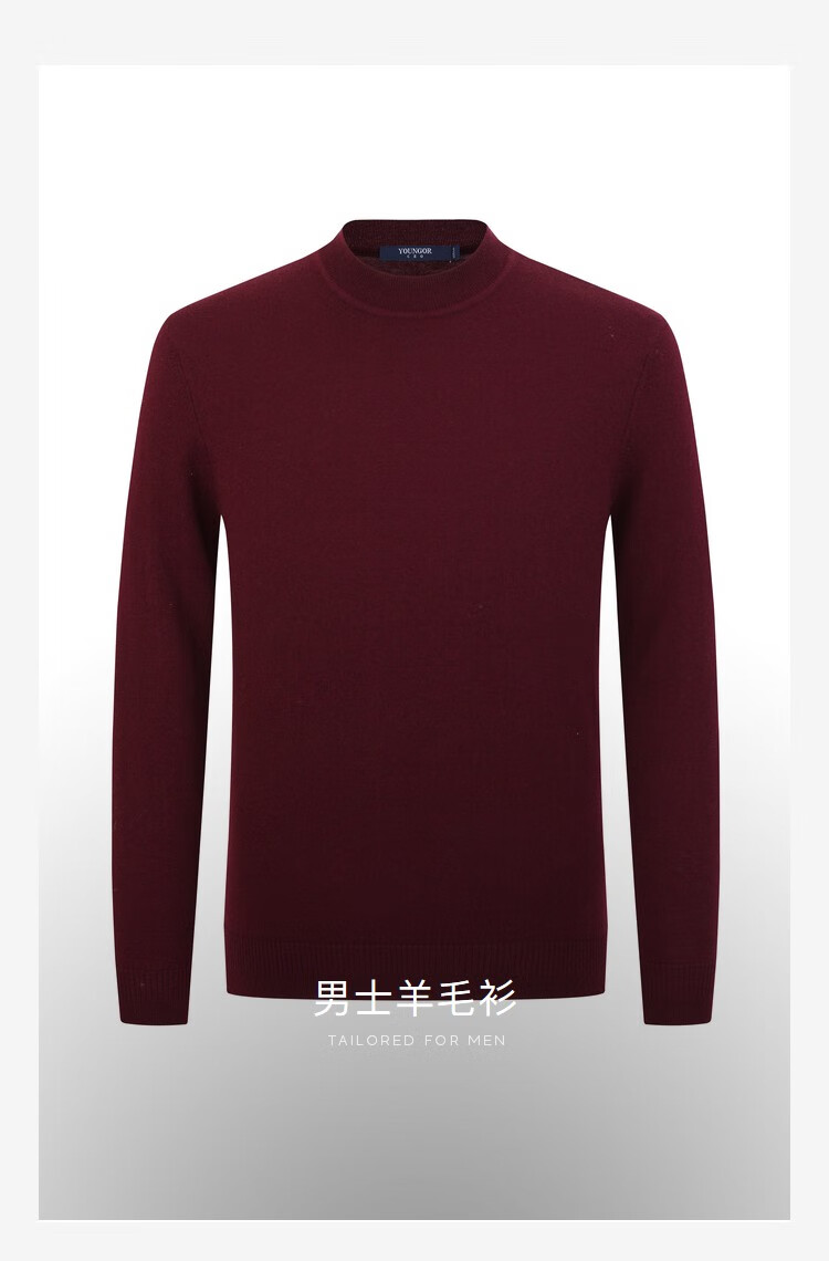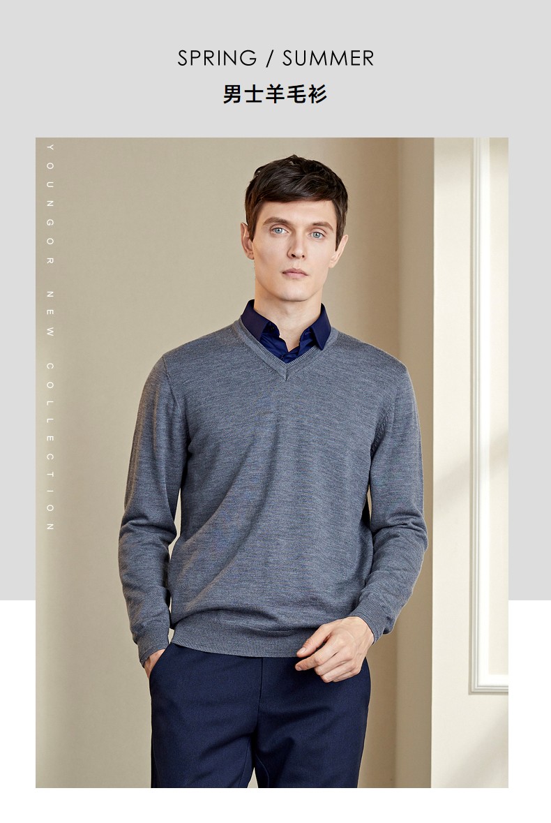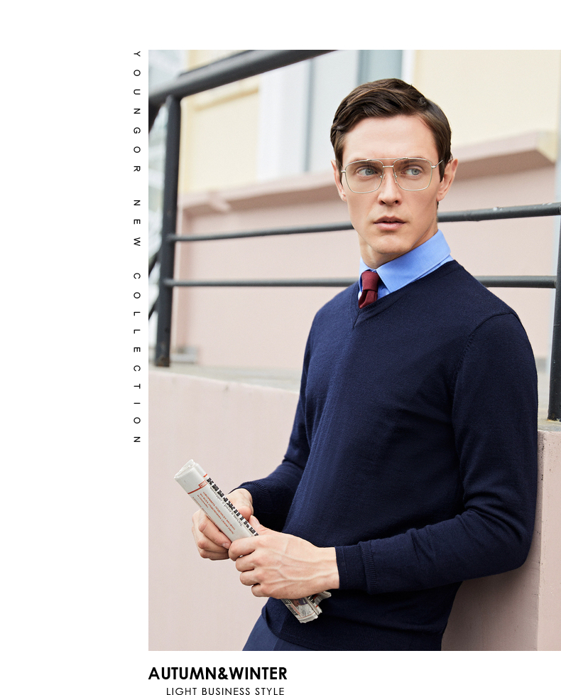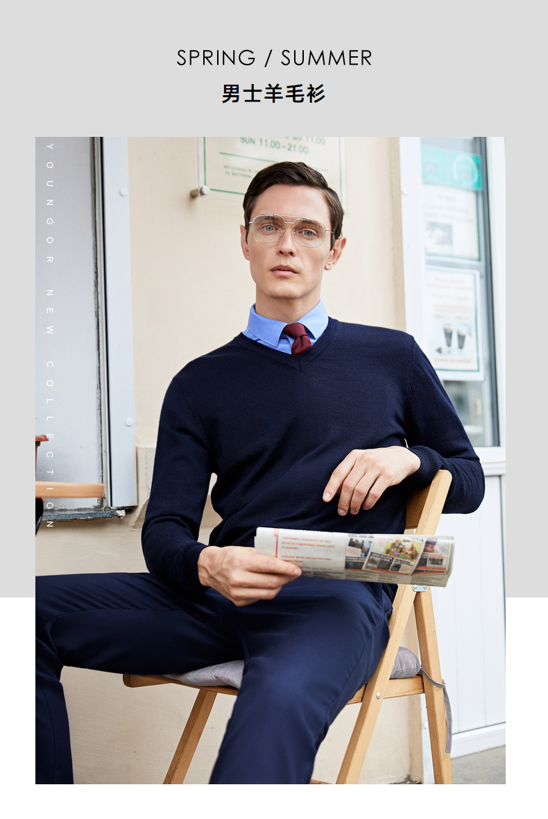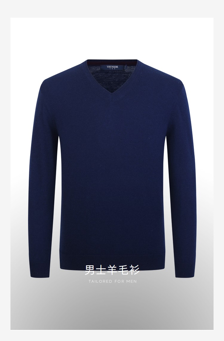 YOUNGOR wool sweater for men, all-sheep wool sweater, comfortable, warm and moderately thick VYQW639998FVA Navy Blue L 105c