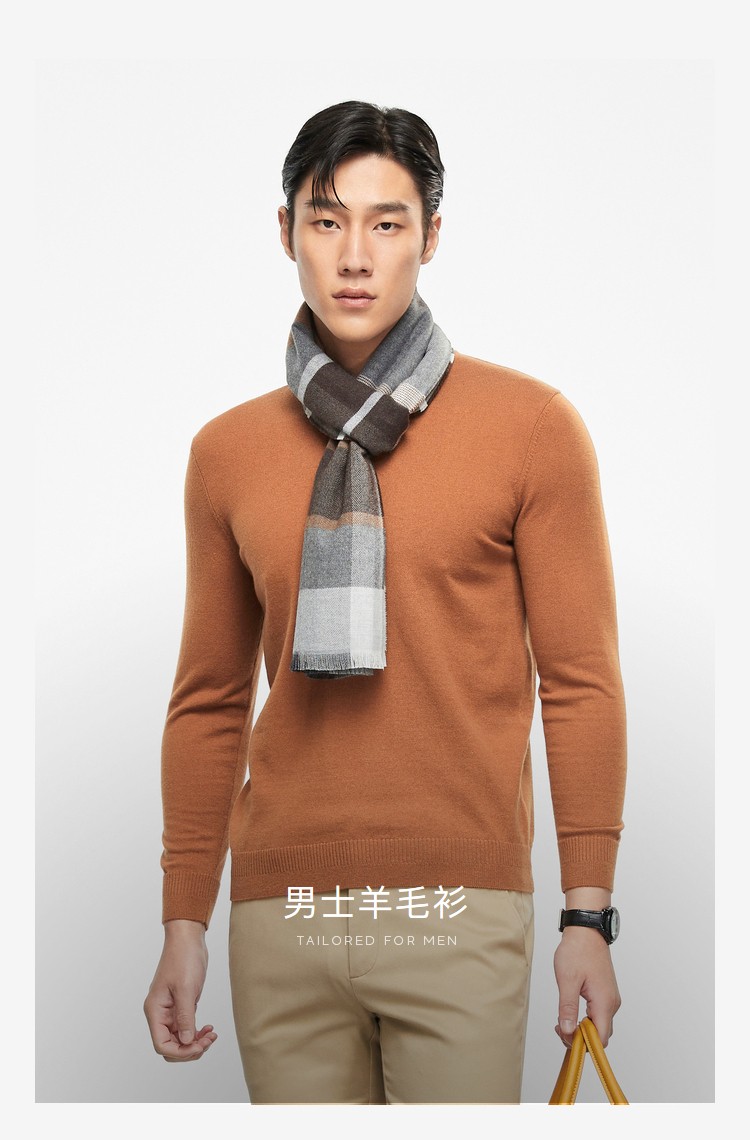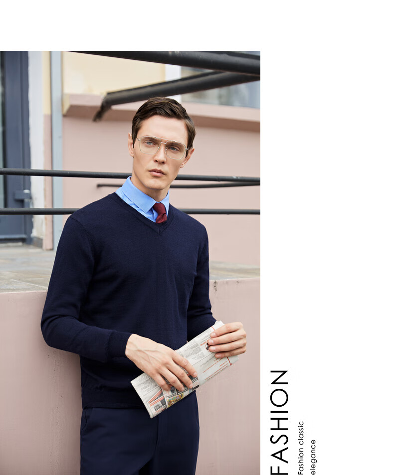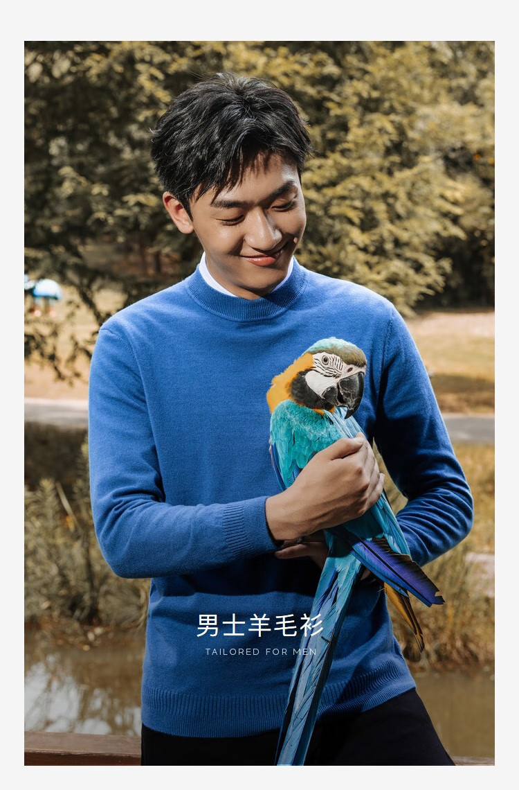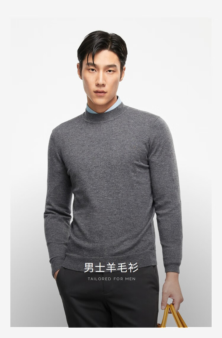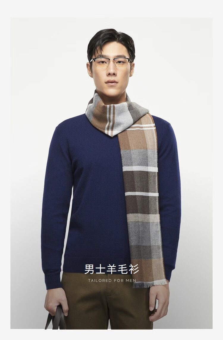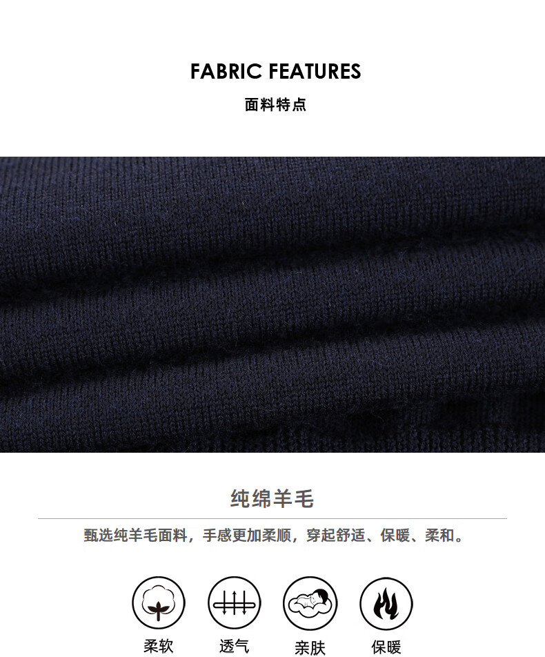 YOUNGOR wool sweater for men, all-sheep wool sweater, comfortable, warm and moderately thick VYQW639998FVA Navy Blue L 105c