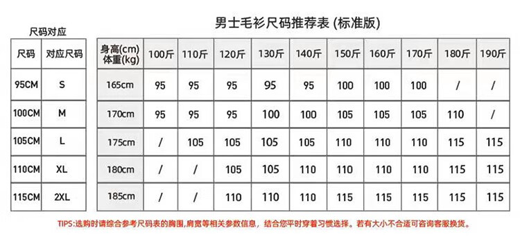 China (cm) 165 / 88-90 170 / 96-98 175 / 108-110 180 / 118-122 185 / 126-130