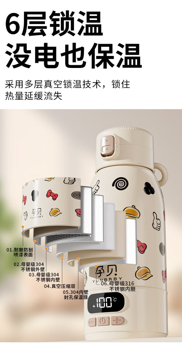 Pregnant baby portable constant temperature cup F18Y constant temperature kettle boiling cup baby going out to prepare milk constant temperature water cup 500ml