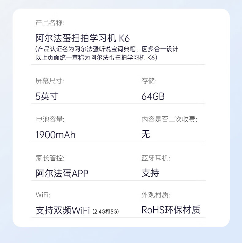 Alpha Egg Scanning Learning Machine K6 Student Tablet Primary School High School Synchronous All-Science Training Machine Full-screen Dictionary Pen Point Reading Pen Translator Scanning Machine