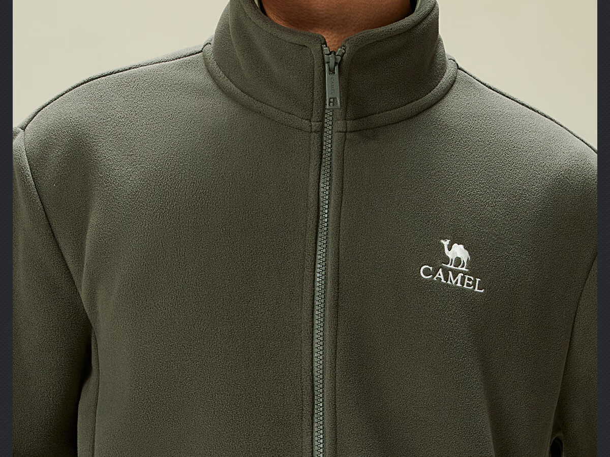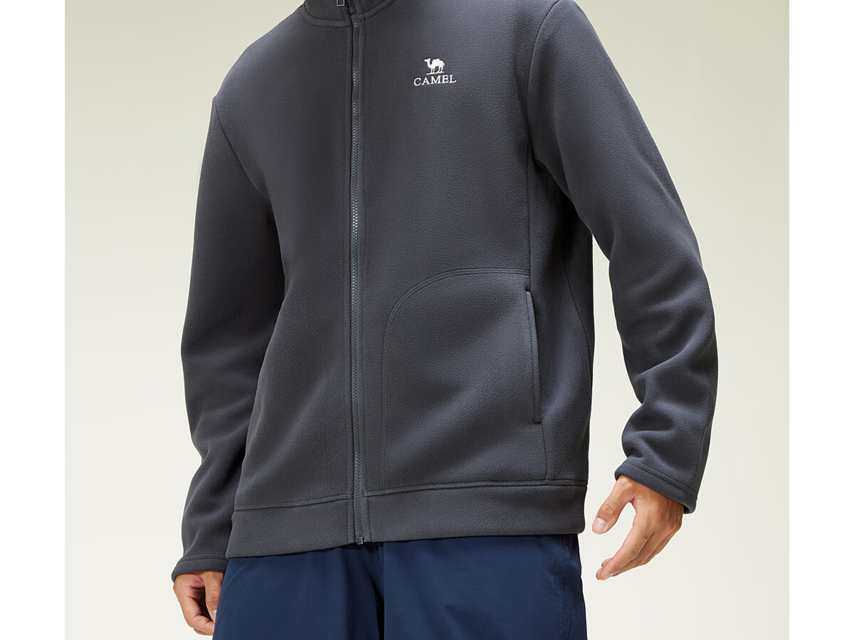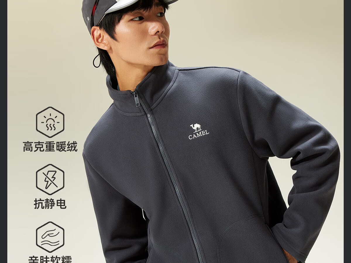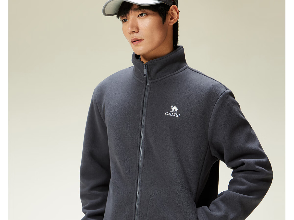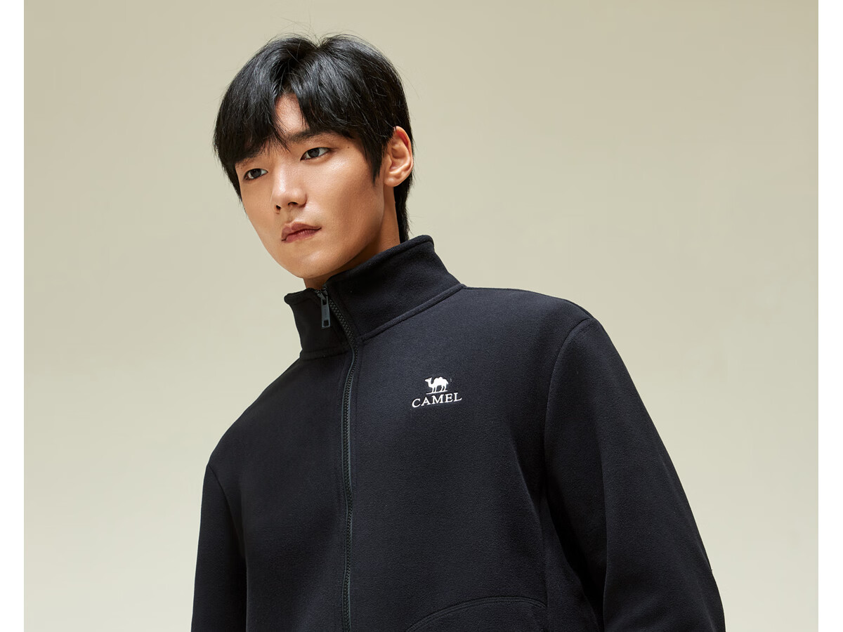 Camel Men's Anti-static Polar Fleece Jacket Men's Autumn and Winter High Weight Stand-up Collar Warm Fleece Jacket M15CA88078