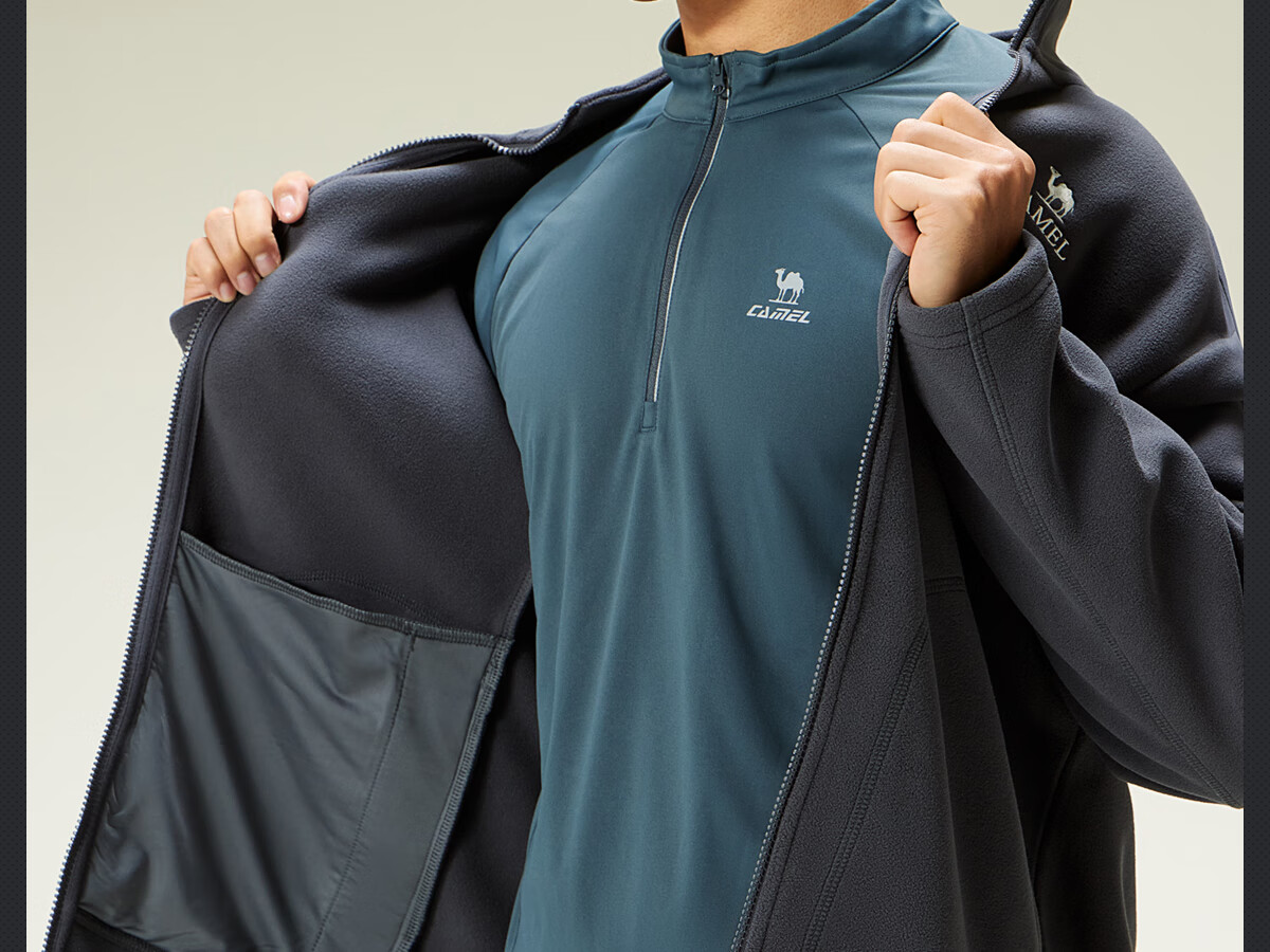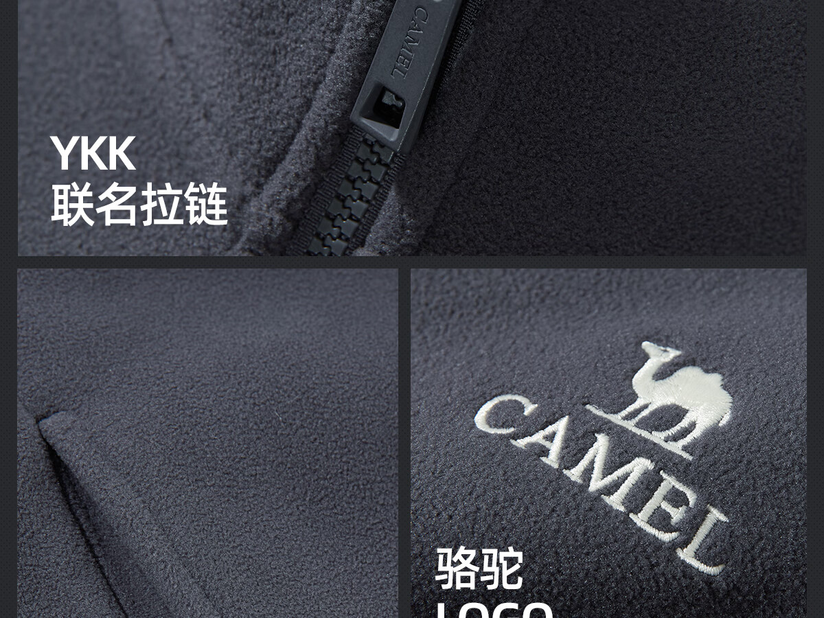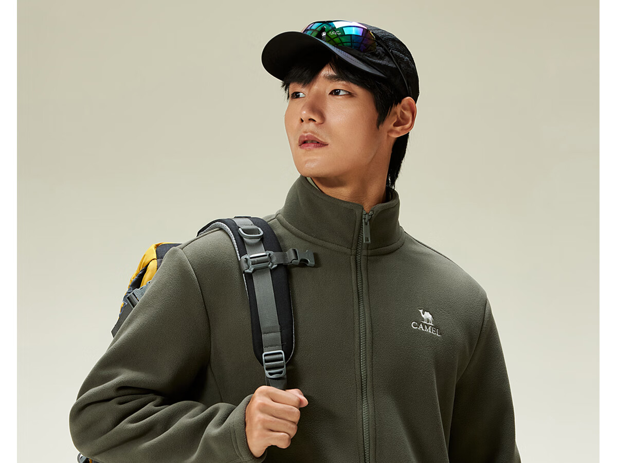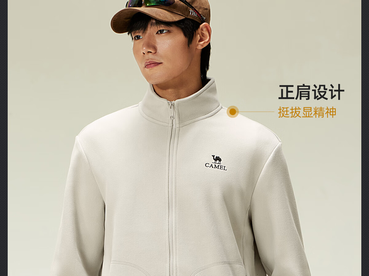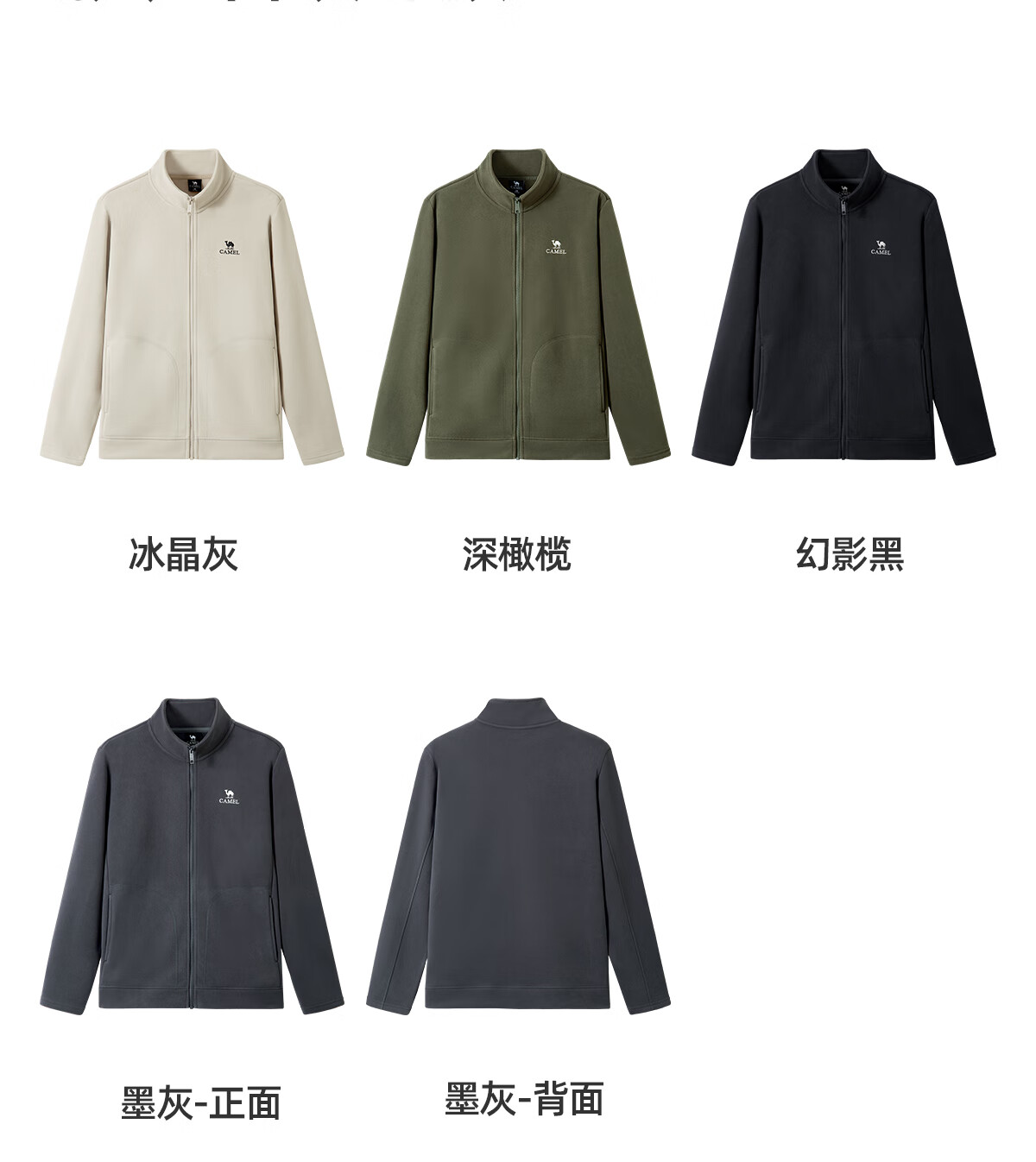 Camel Men's Anti-static Polar Fleece Jacket Men's Autumn and Winter High Weight Stand-up Collar Warm Fleece Jacket M15CA88078
