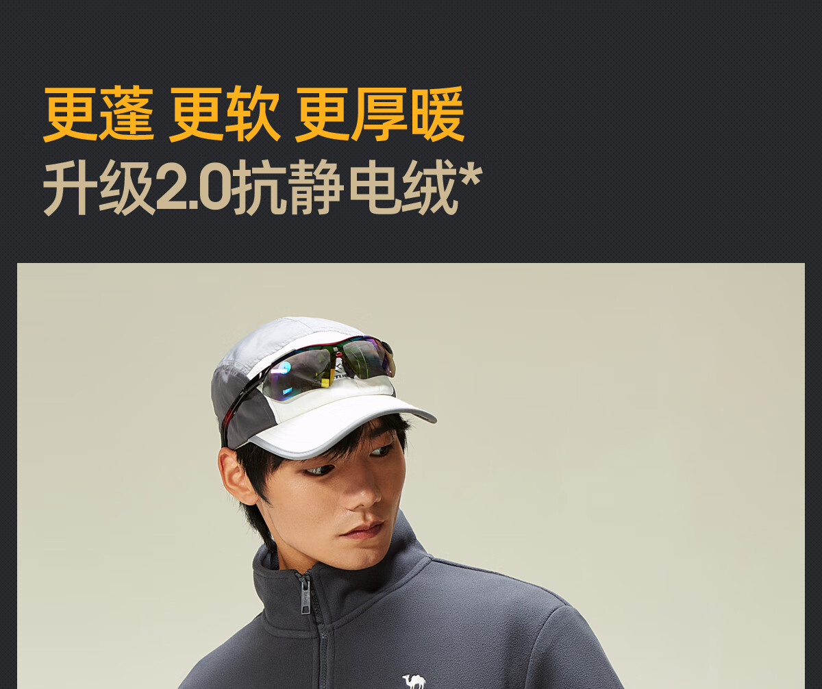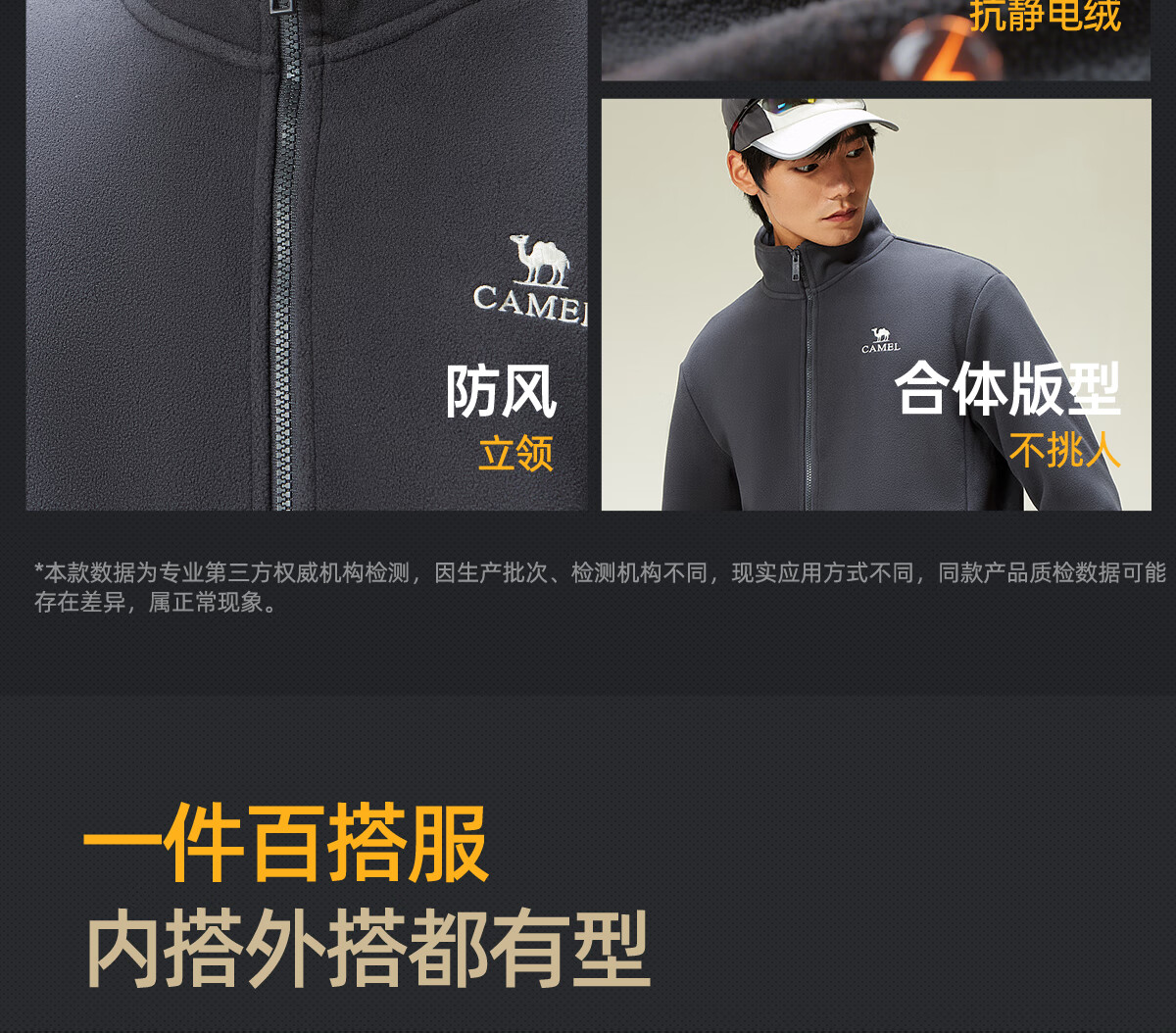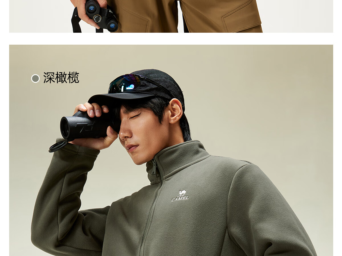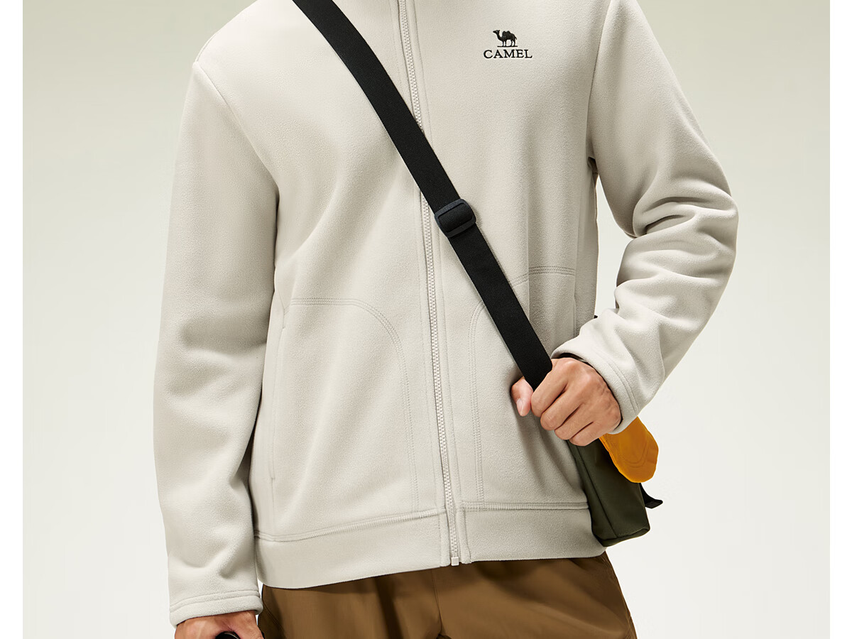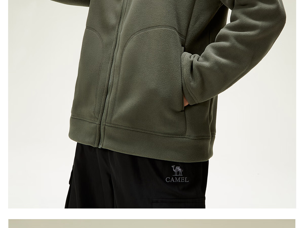 Camel Men's Anti-static Polar Fleece Jacket Men's Autumn and Winter High Weight Stand-up Collar Warm Fleece Jacket M15CA88078