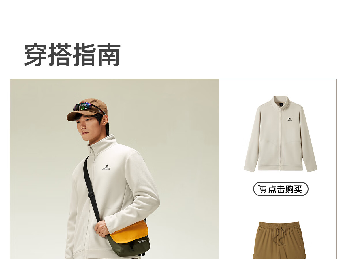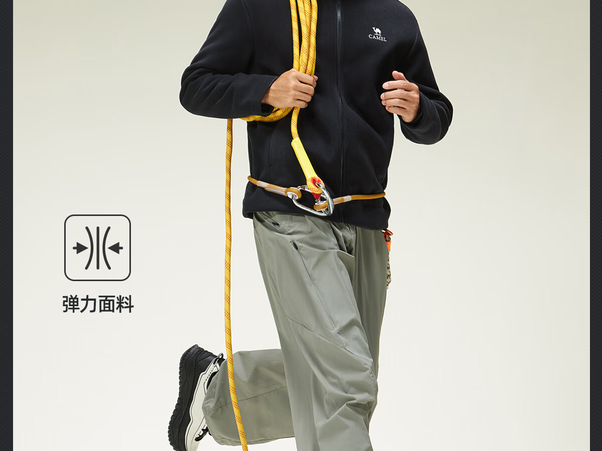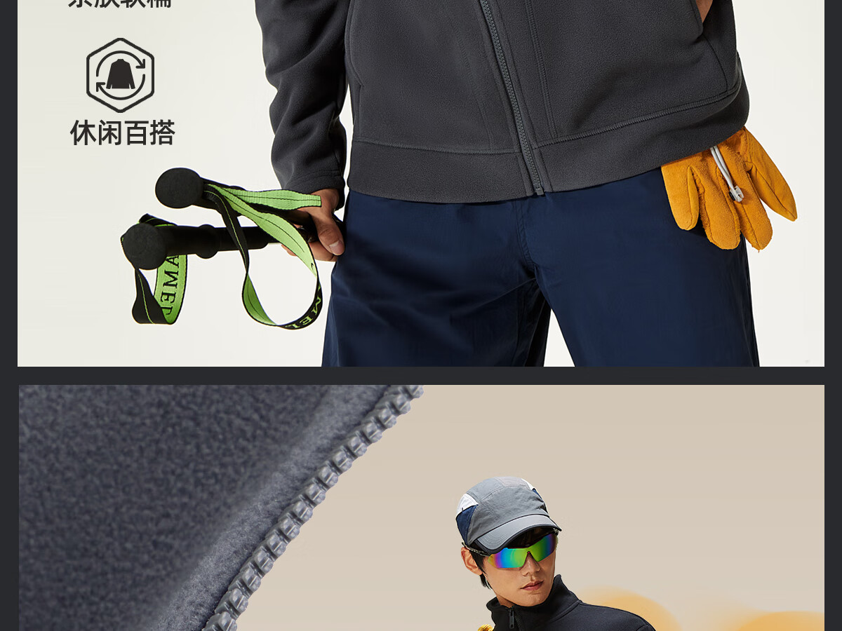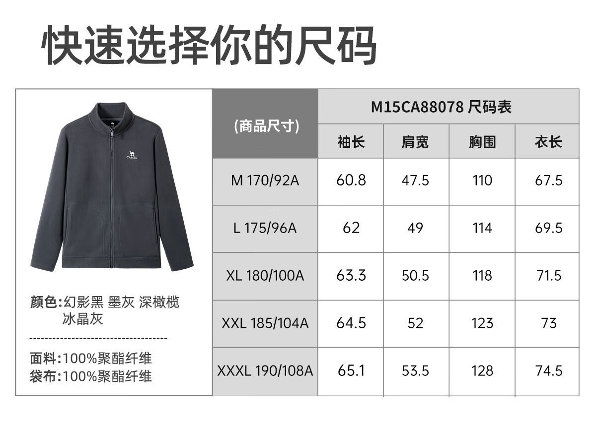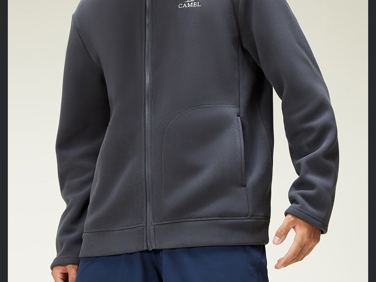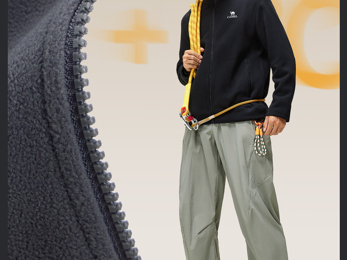 Camel Men's Anti-static Polar Fleece Jacket Men's Autumn and Winter High Weight Stand-up Collar Warm Fleece Jacket M15CA88078