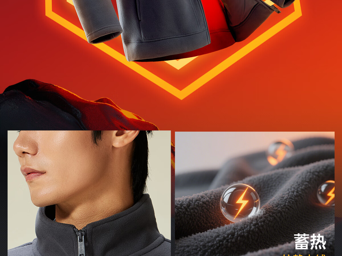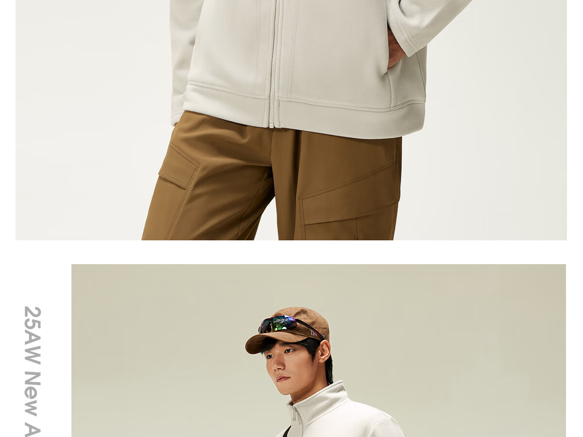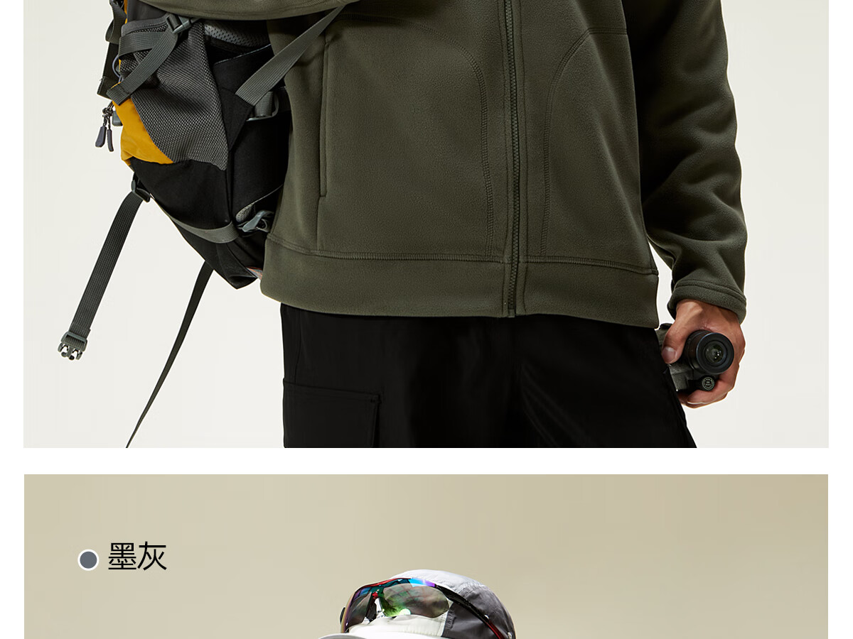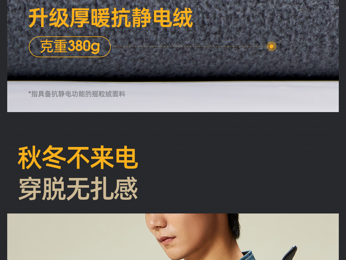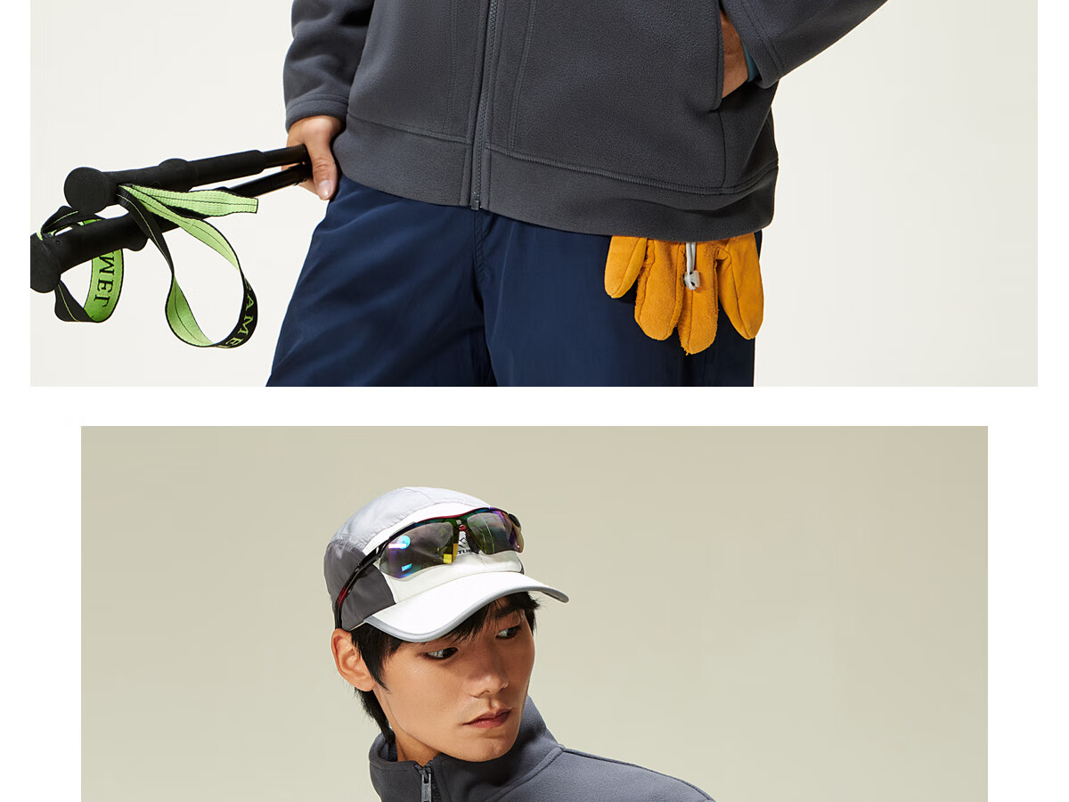 Camel Men's Anti-static Polar Fleece Jacket Men's Autumn and Winter High Weight Stand-up Collar Warm Fleece Jacket M15CA88078