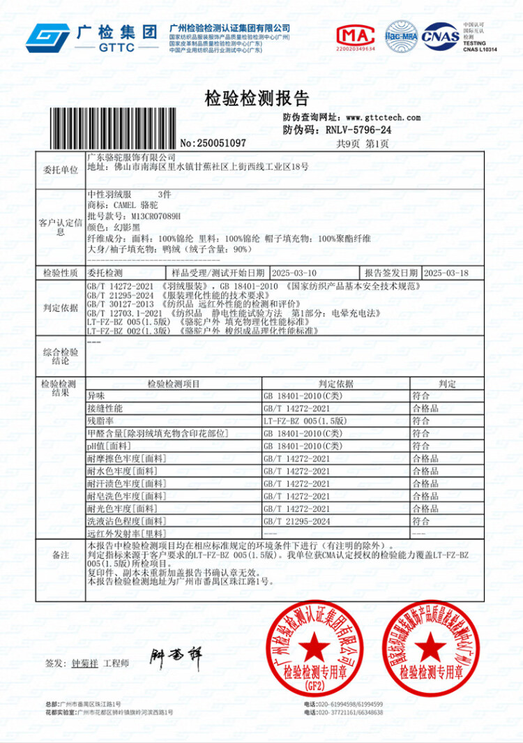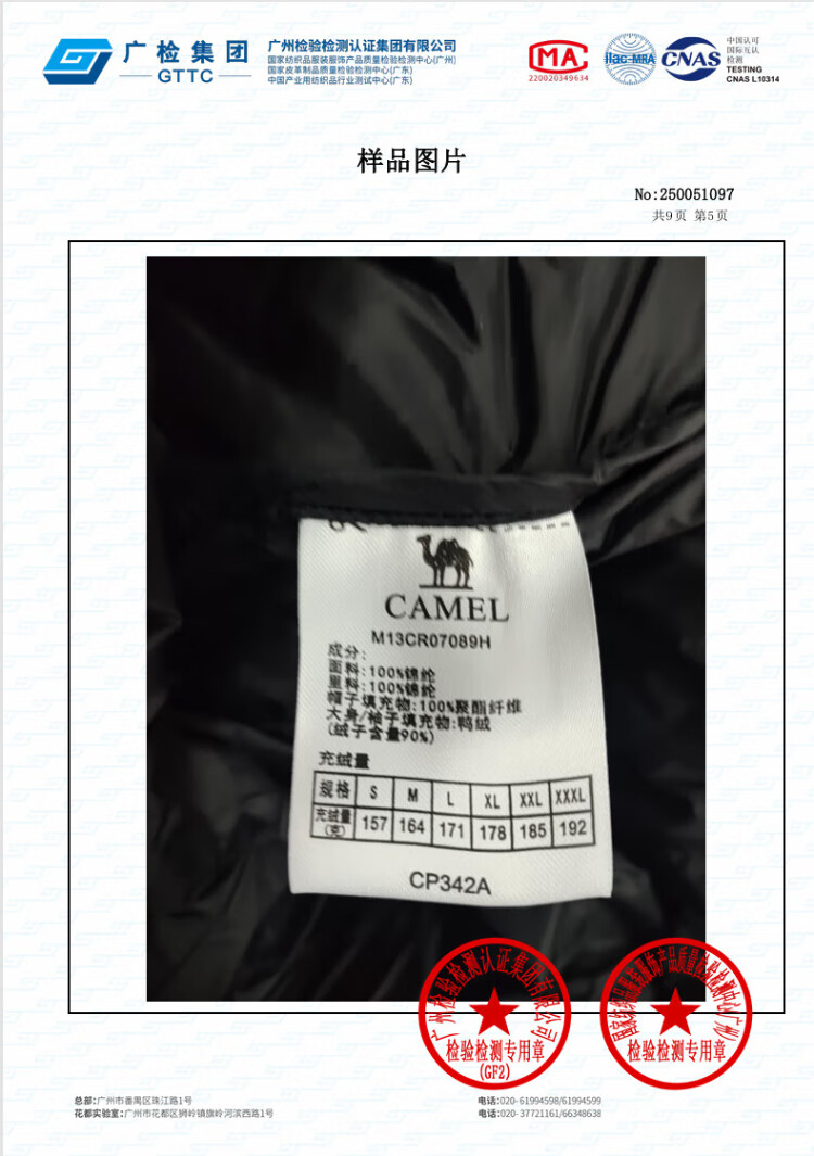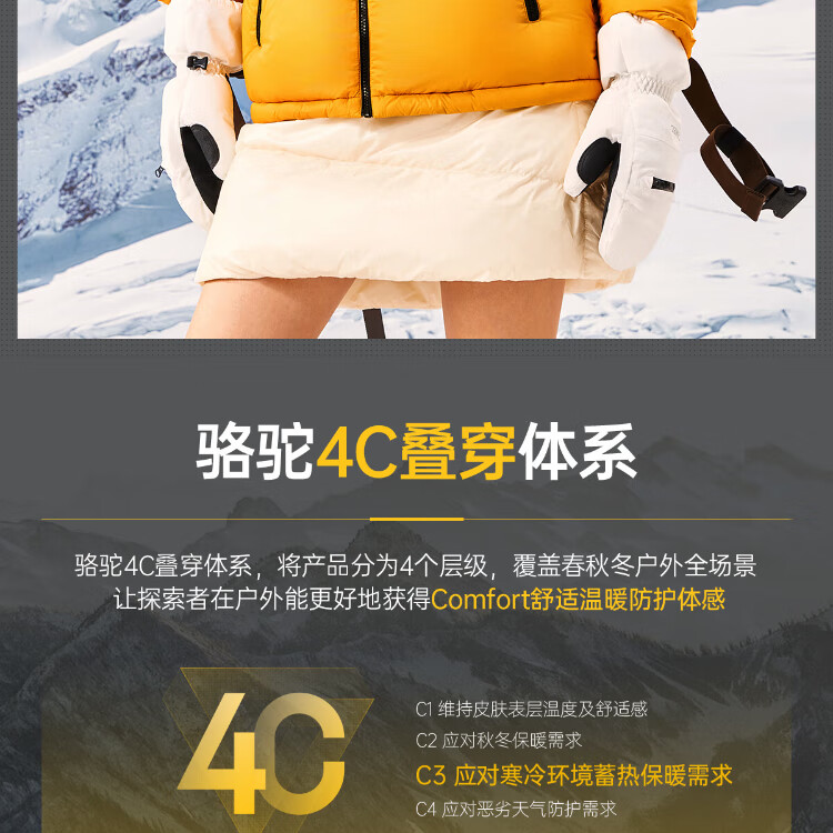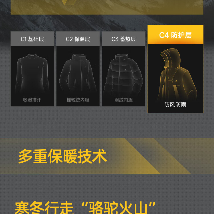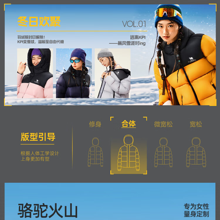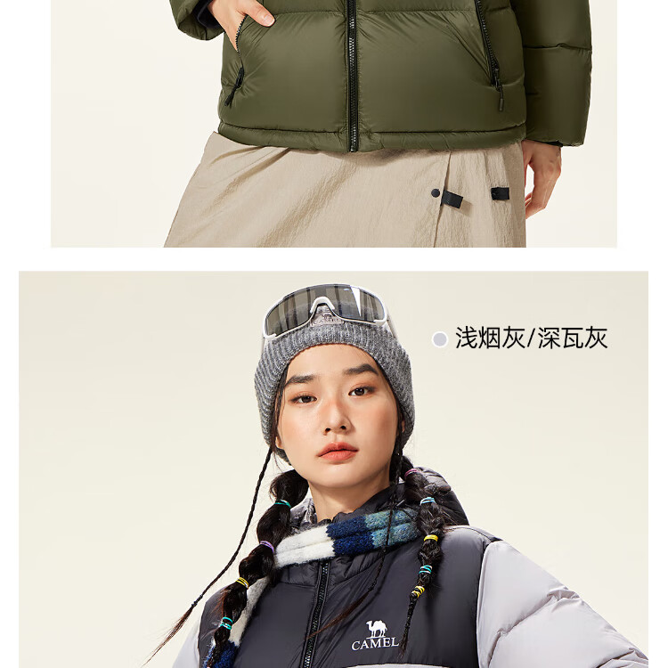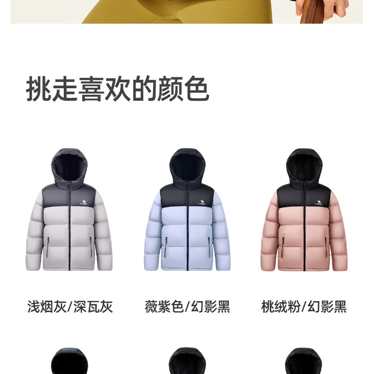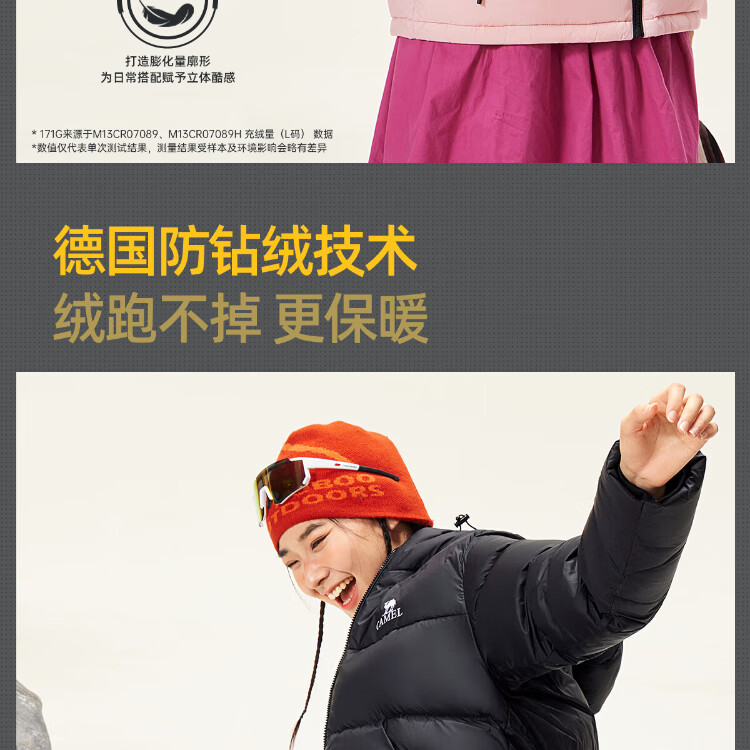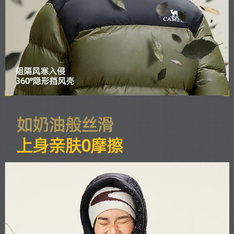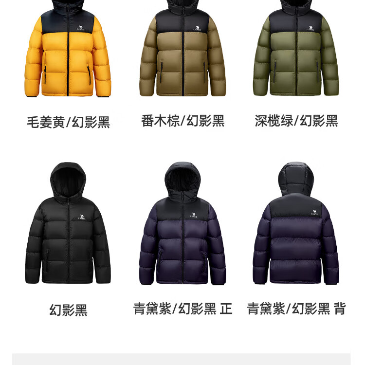 Camel Volcano Down Jacket Water-Repellent White Duck Down Winter Men's and Women's Thickened Outdoor Winter Protection M13CR07089H