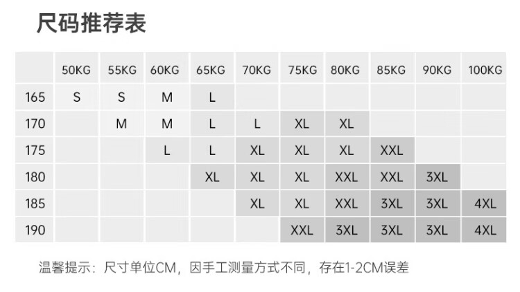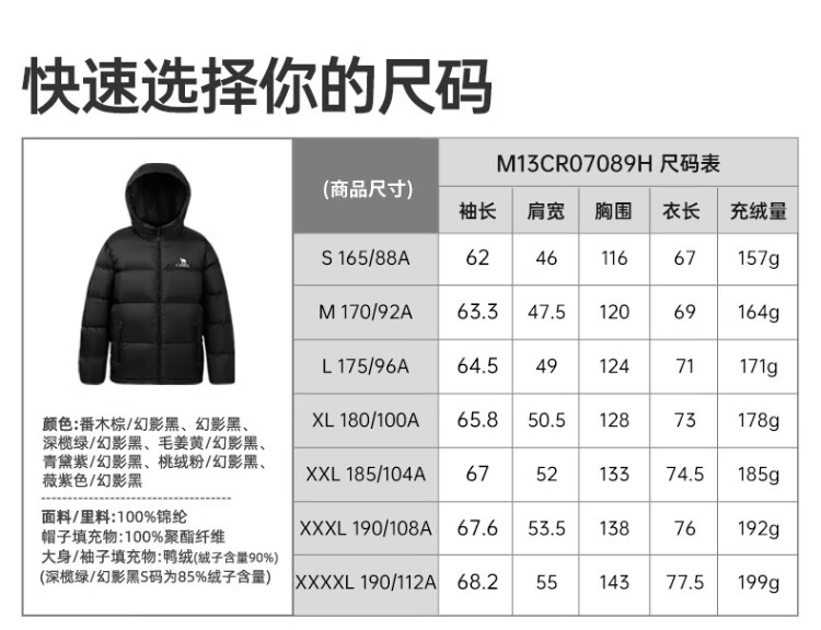 China (cm) 165 / 88-90 170 / 96-98 175 / 108-110 180 / 118-122 185 / 126-130