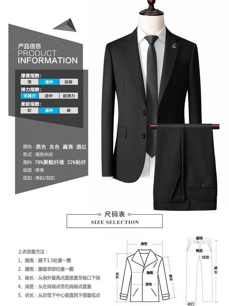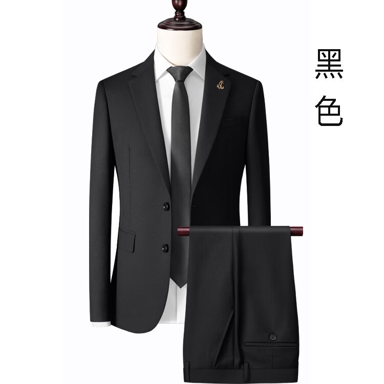 Vocacool Men's Suit Suit Business Formal Wear Professional Wear Interview Slim Suit Wedding Groomsmen's Dress Groom's Suit Large Size Black (Suit + Pants + Tie) 3XL/155-165Jin Jin is equal to 0.5 kg