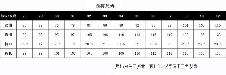 USA(inch) 28-30 30-32 32-34 34-38 38-42