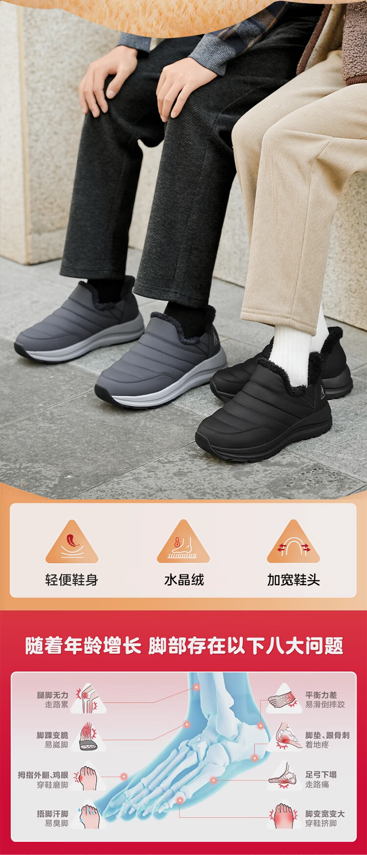 Foot Lijian elderly shoes winter cotton shoes plus velvet casual shoes warm men's shoes soft sole lightweight dad shoes 6245K black 42