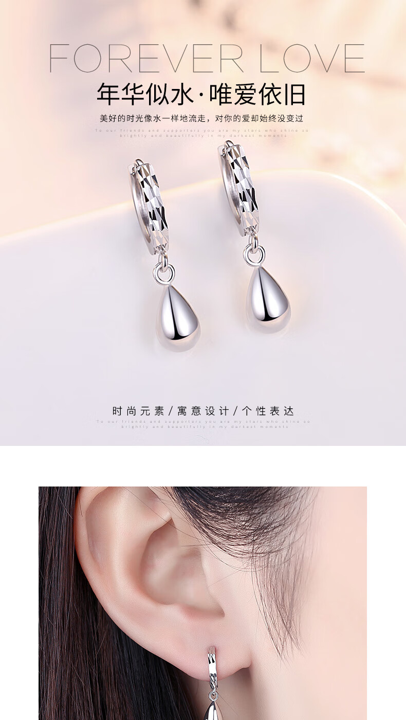 Luohe pt950 platinum earrings, fashionable and popular ear buckle elements, round earrings, platinum earrings, women's earrings, Chinese Valentine's Day PT950 3.4-3.6g + blue ribbon gift box